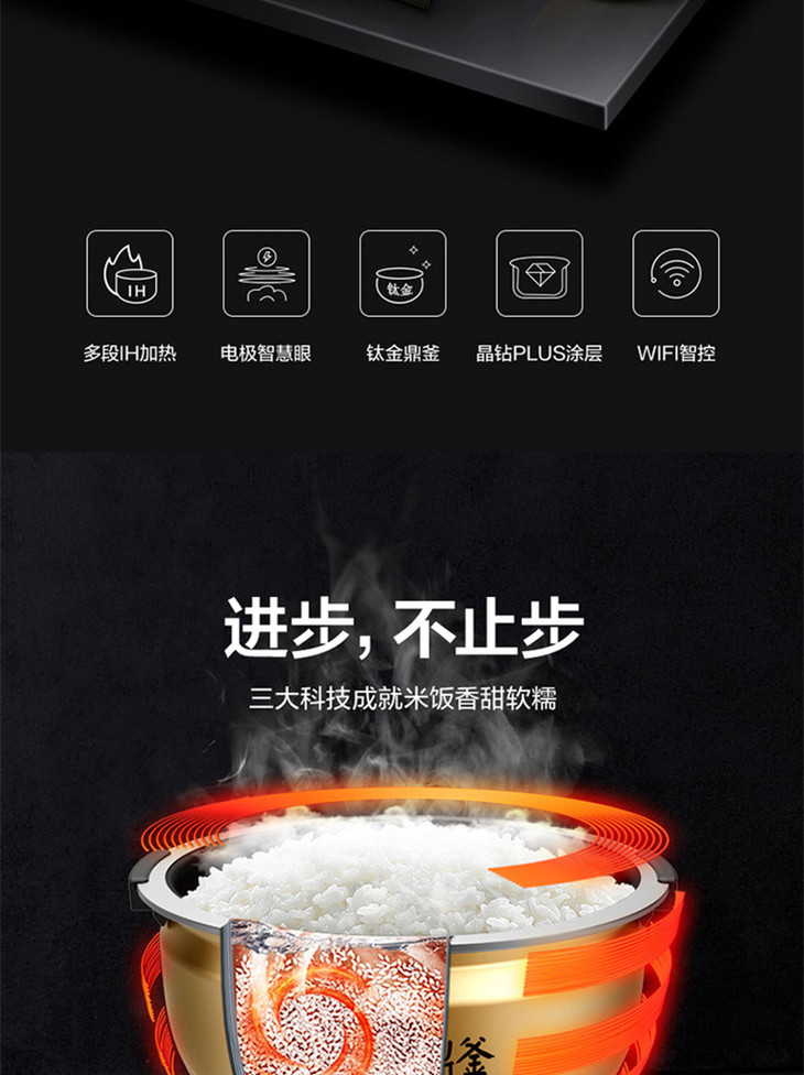 美的(508158)电饭煲 DHZ4002XM 特色功能预约功能WIFI控制 加热方式IH电磁加热 内胆材质不粘涂层内胆 4L
