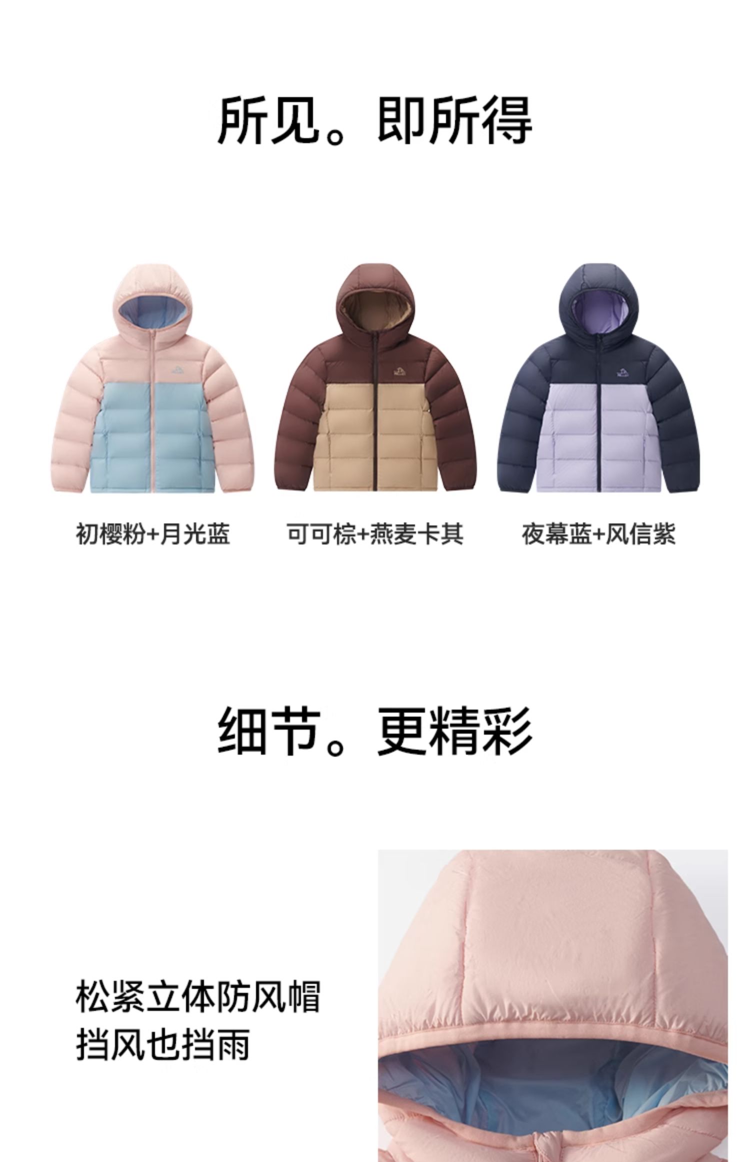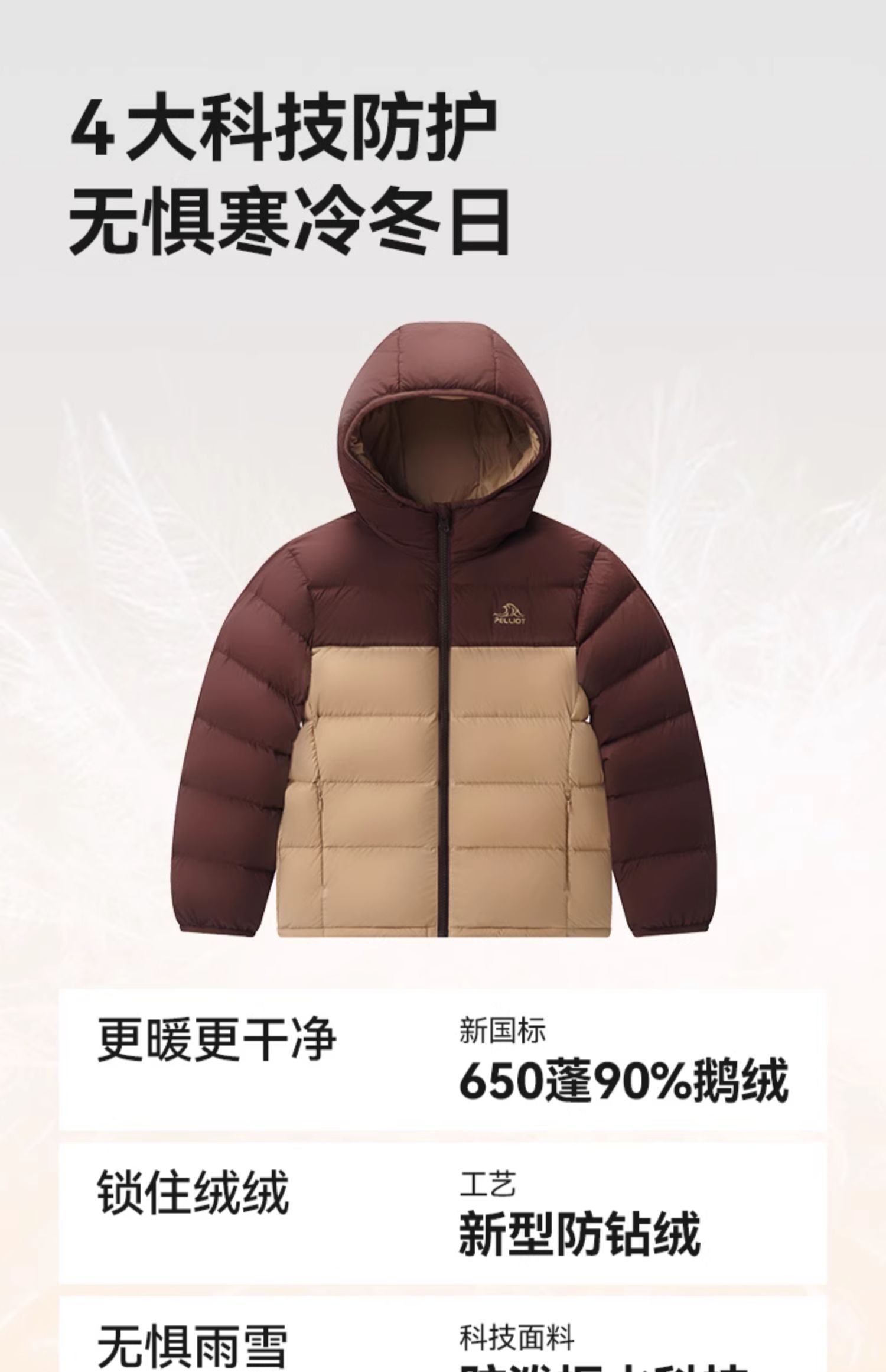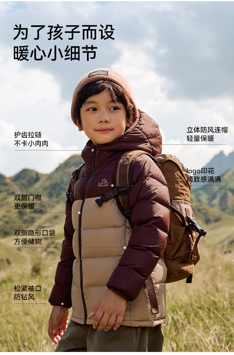 伯希和户外儿童羽绒服新款650蓬鹅绒服男童女童轻薄保暖防风外套
