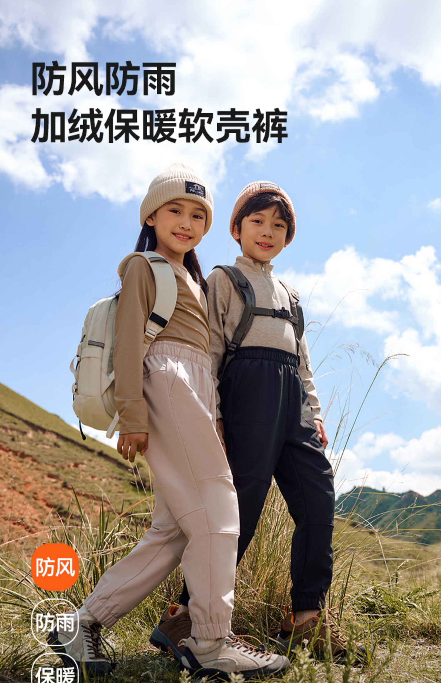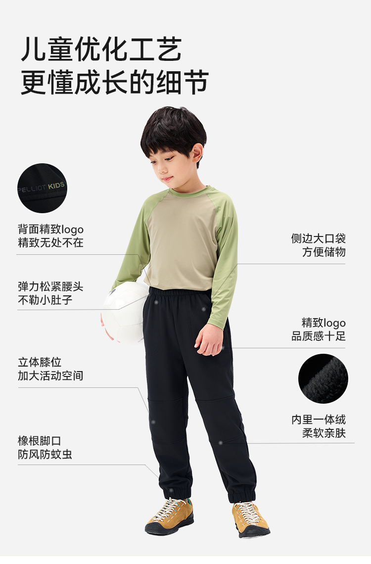 伯希和户外儿童软壳裤防风科技加绒保暖亲肤耐磨透气休闲裤