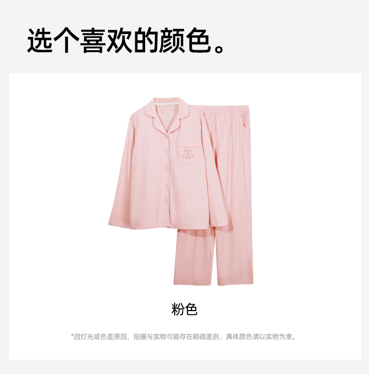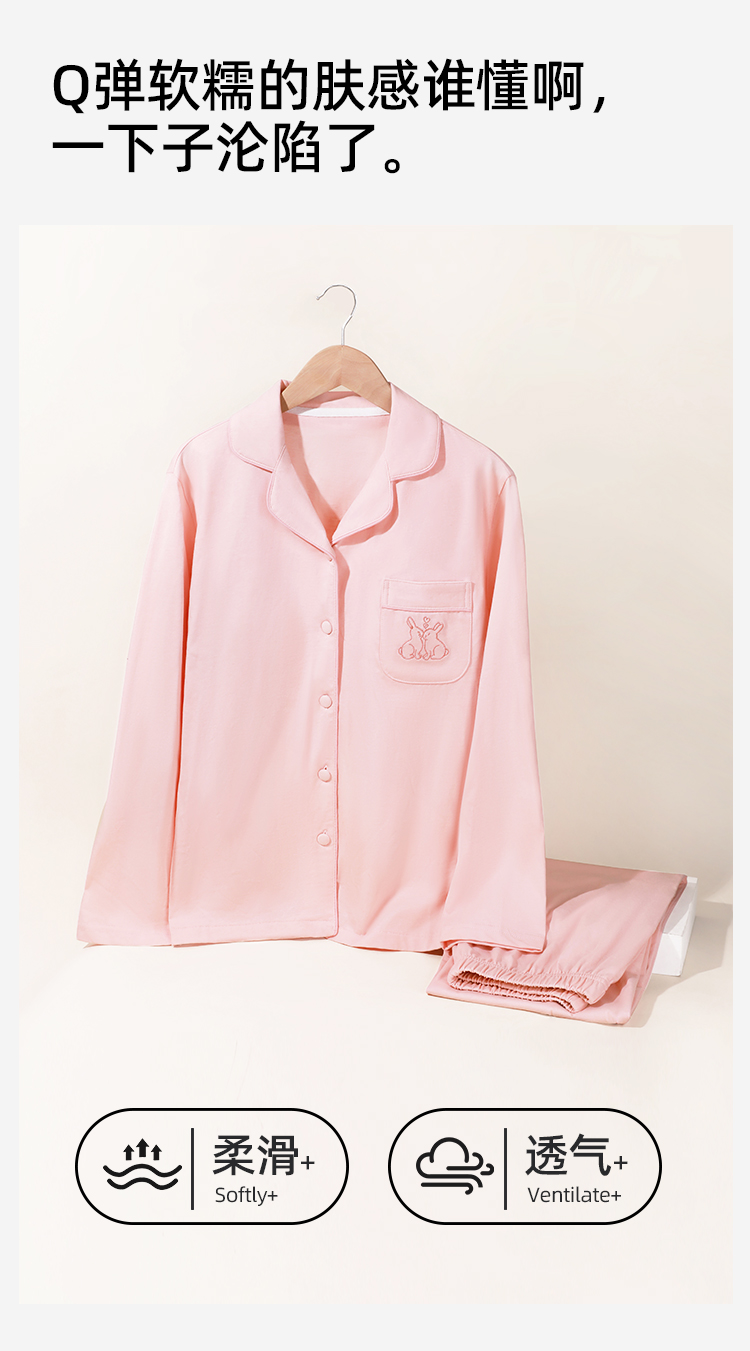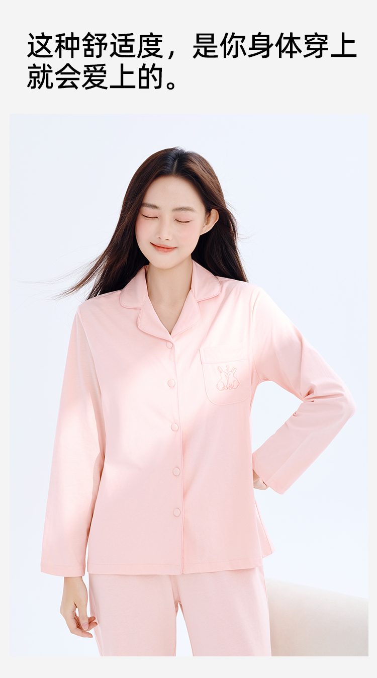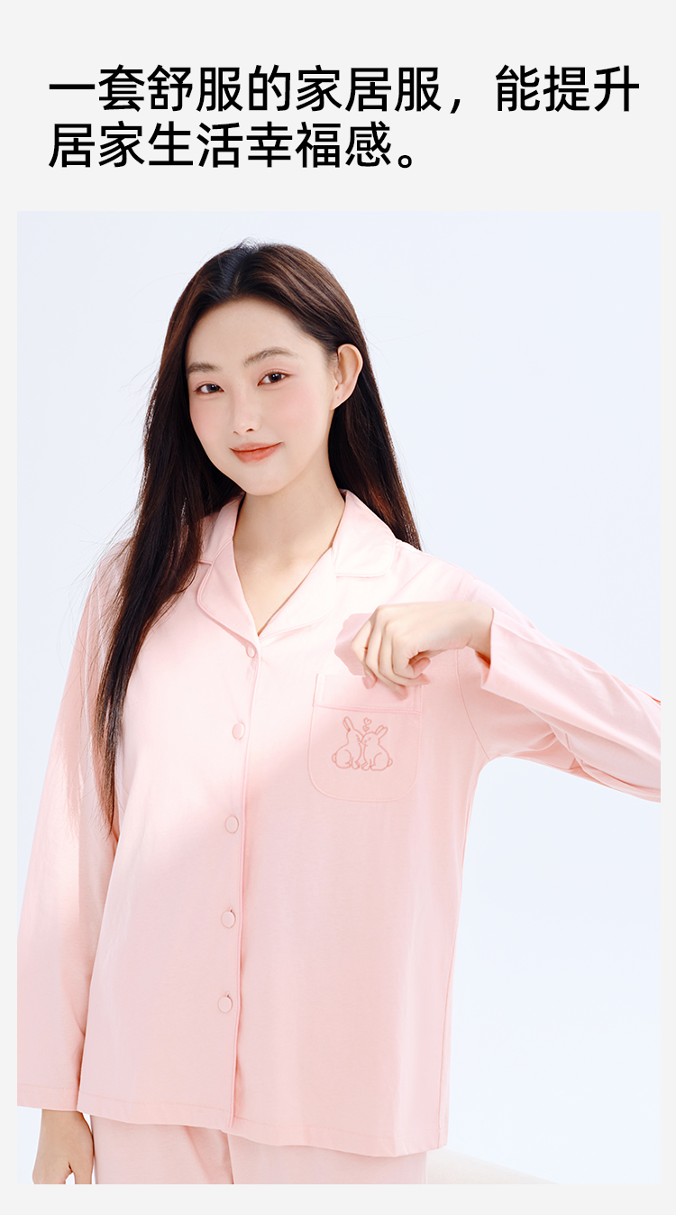 【带胸垫】熳洁儿 纯棉家居服女士开衫长袖长裤套装免穿文胸24753203