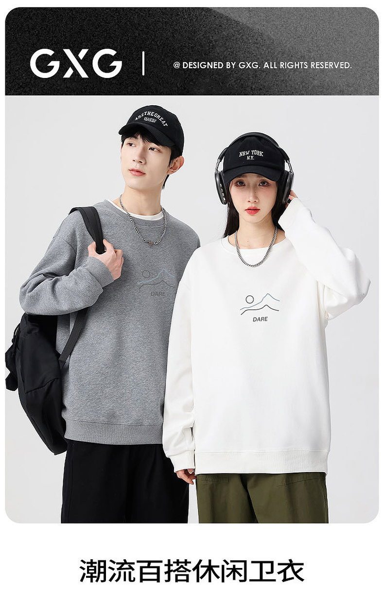 GXG男装春季简约时尚图案户外休闲百搭情侣款圆领卫衣K&C