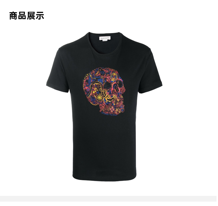 ALEXANDER MCQUEEN 麦昆 男士短T恤 黑色 彩色骷髅头印花 649873 QQZ53 0901
