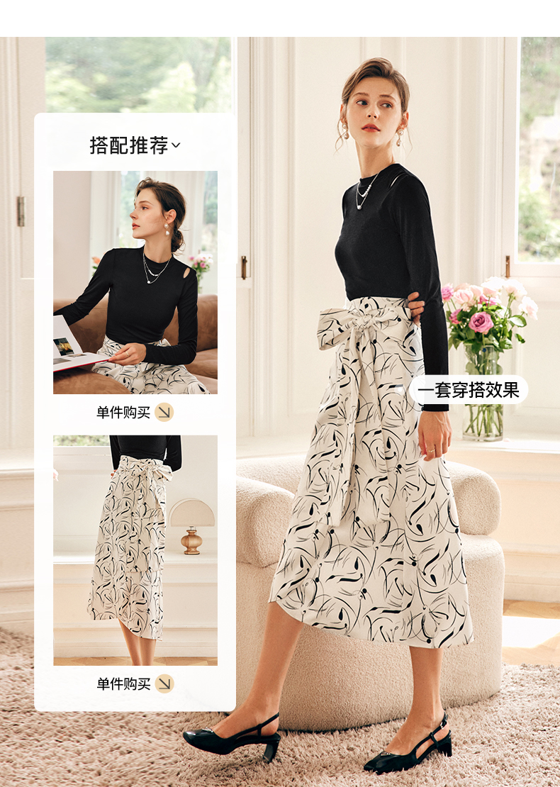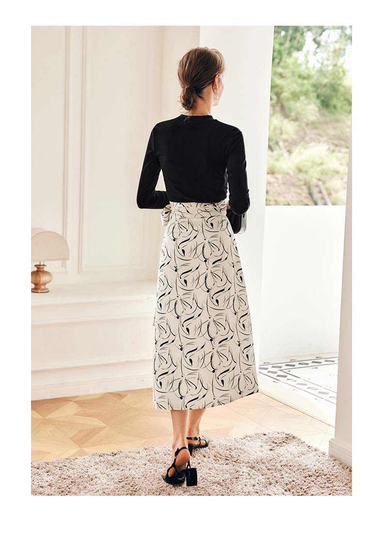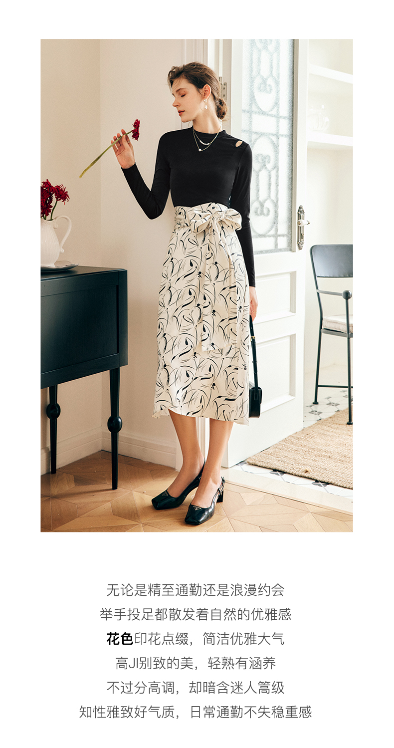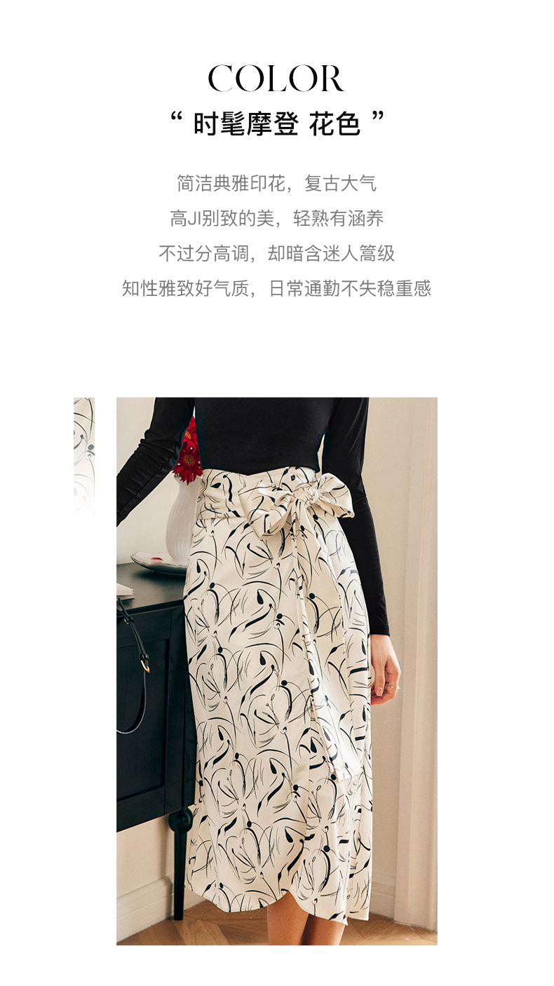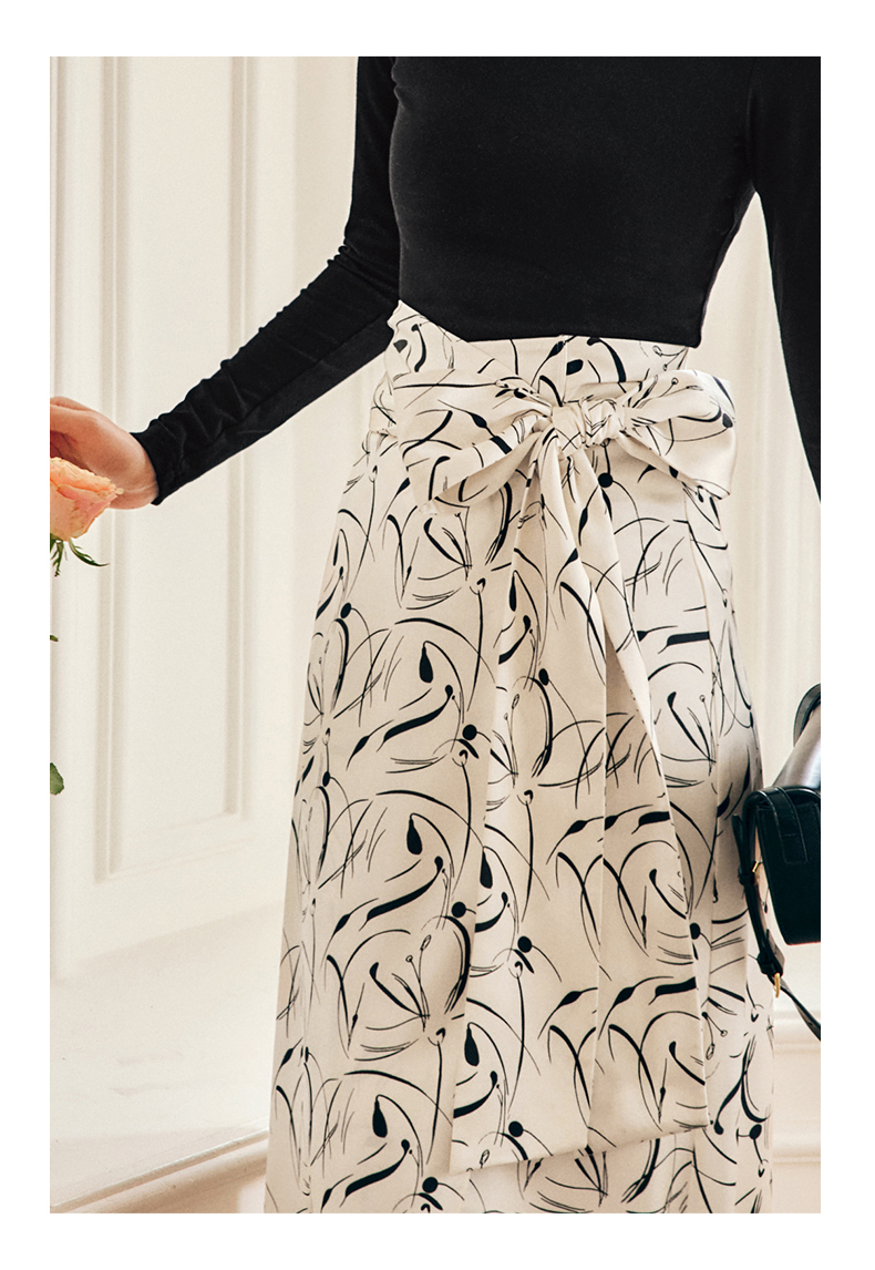 OLrain欧芮儿法式碎花半身裙女秋季2022新款高腰开叉缎面A字伞裙