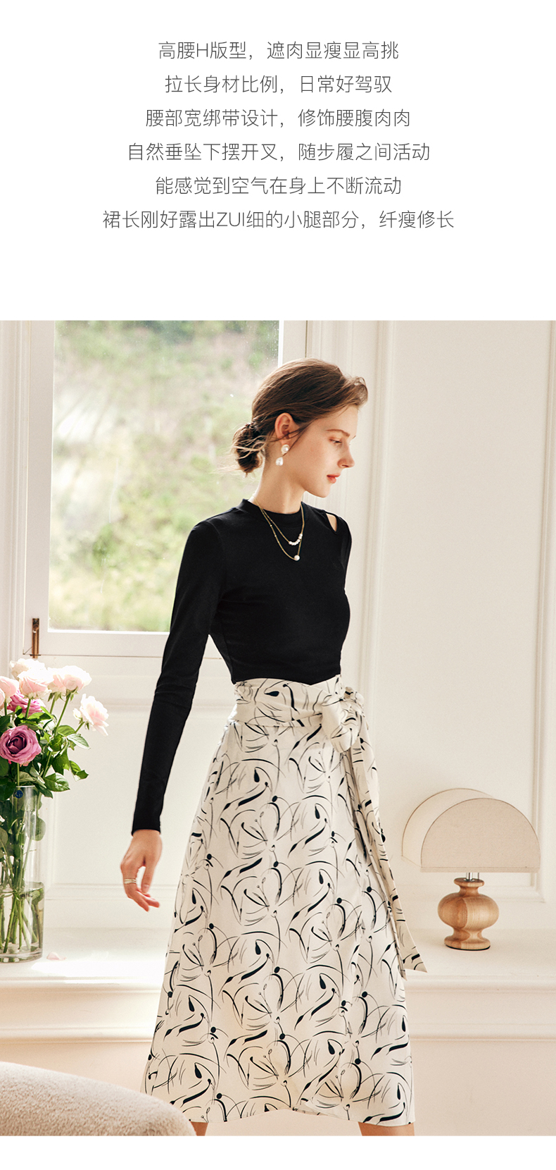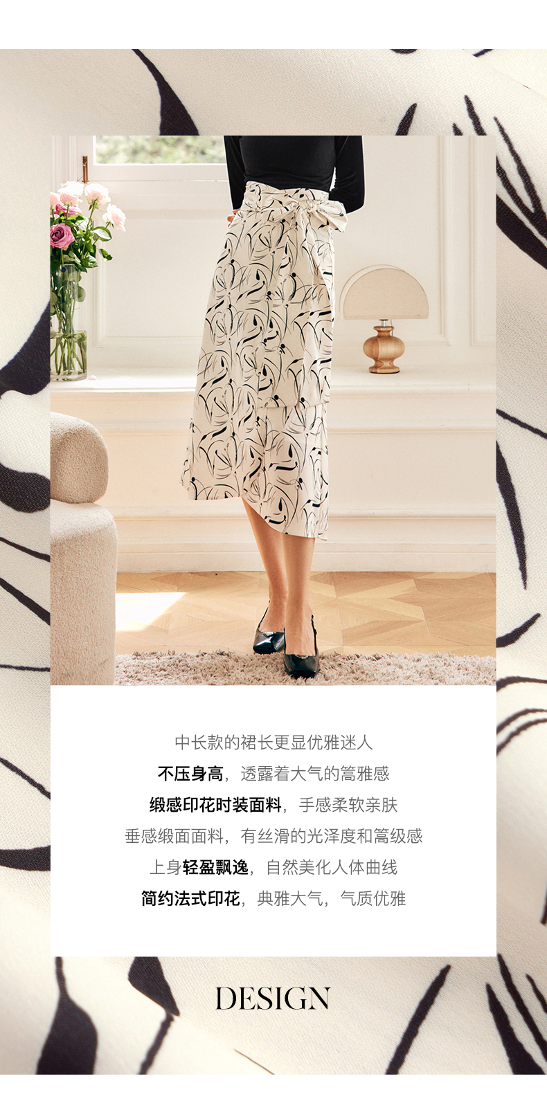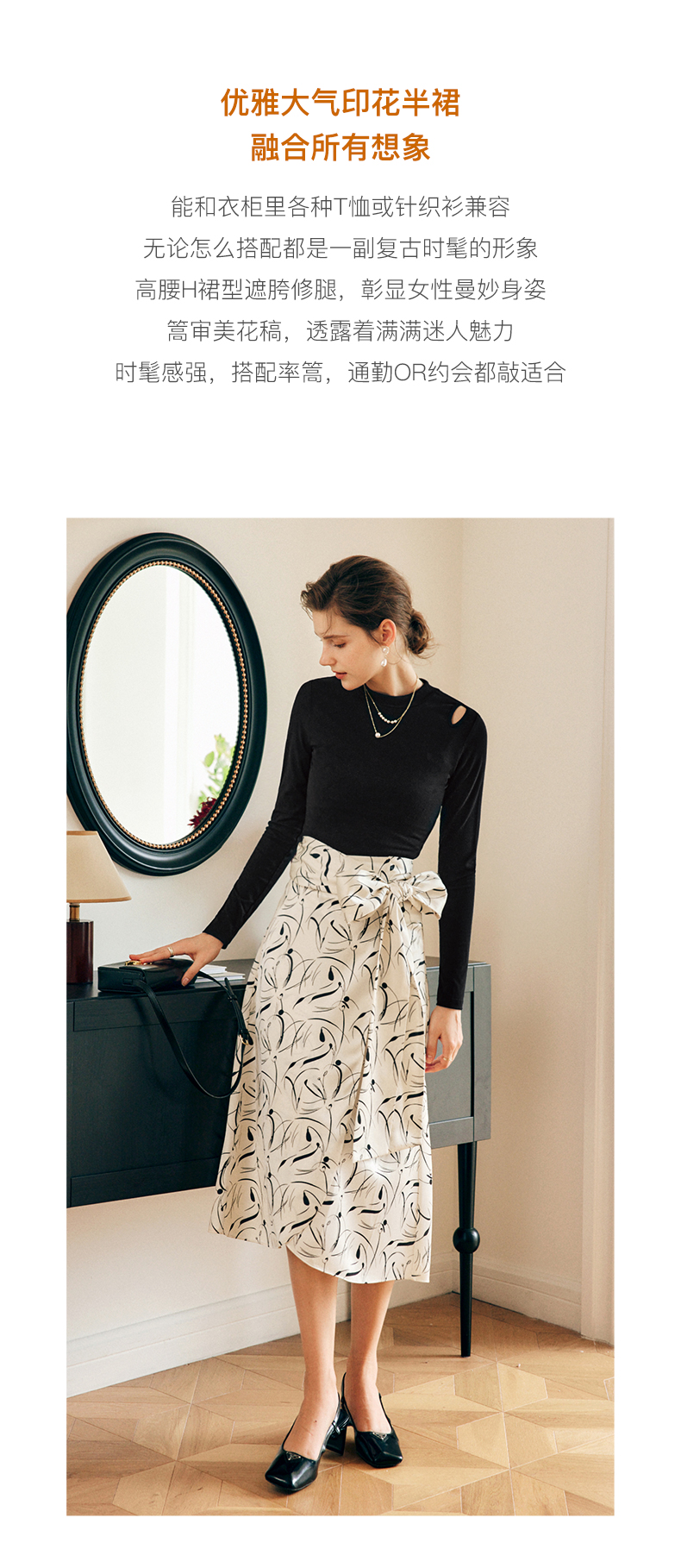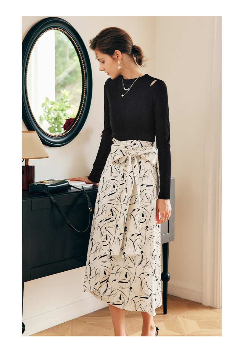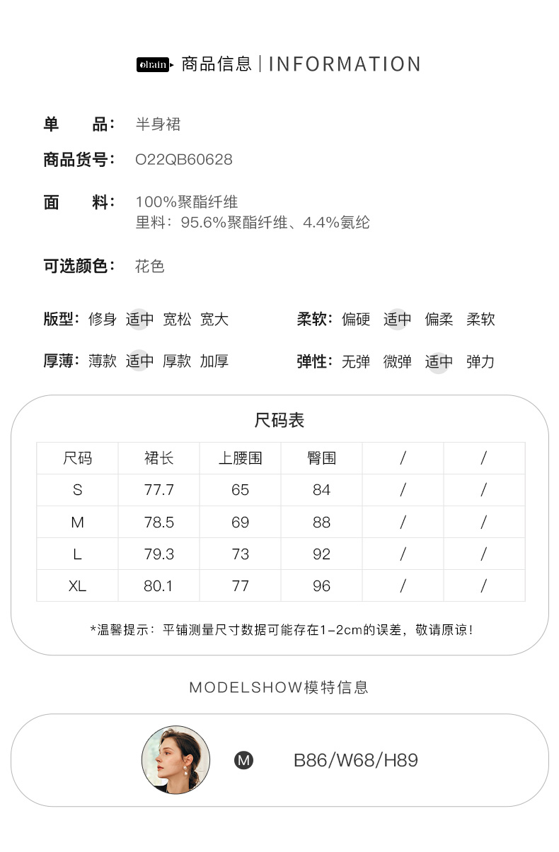 OLrain欧芮儿法式碎花半身裙女秋季2022新款高腰开叉缎面A字伞裙