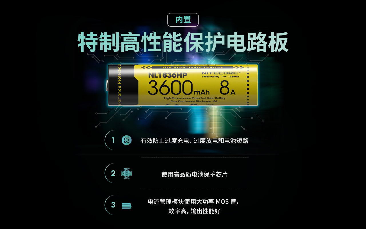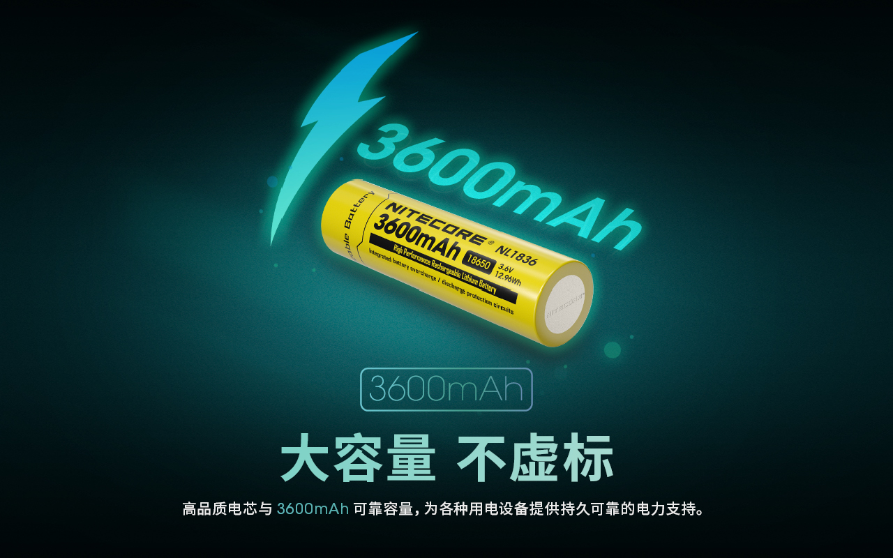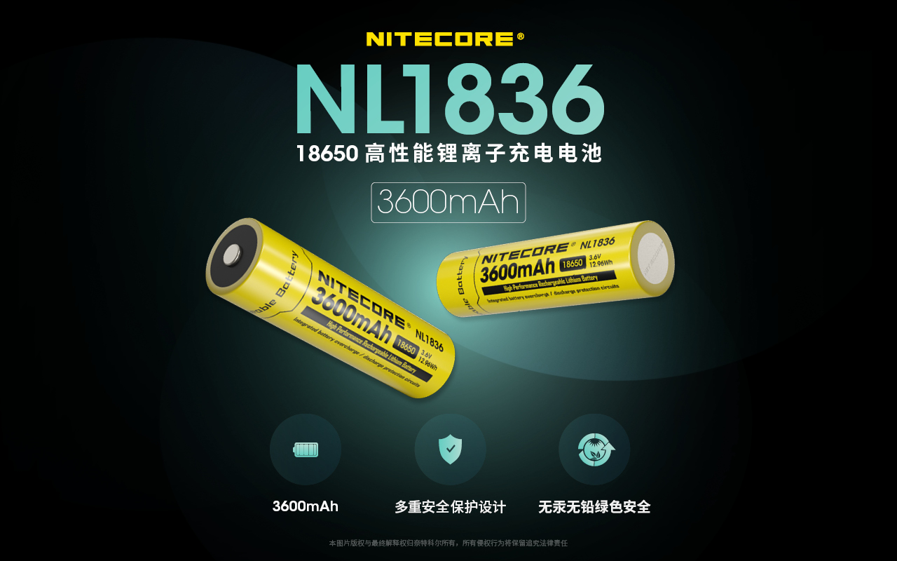 NITECORE奈特科尔NL1836 NL1836HP NL1836R大容量3600毫安可充电18650锂电池