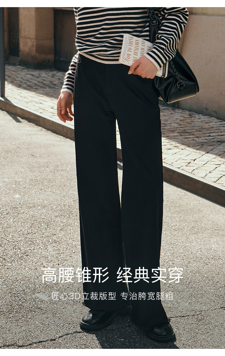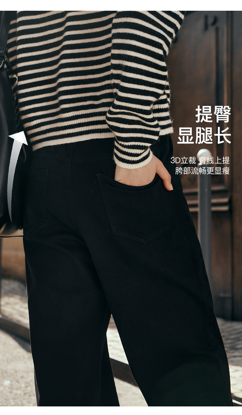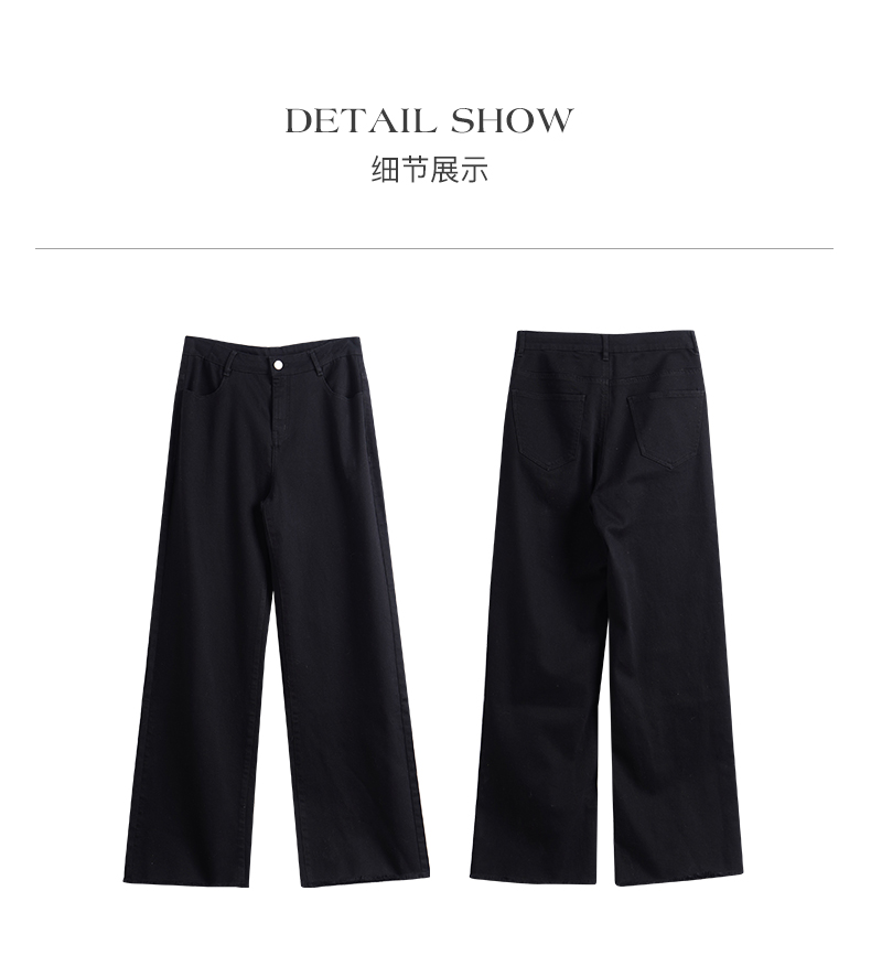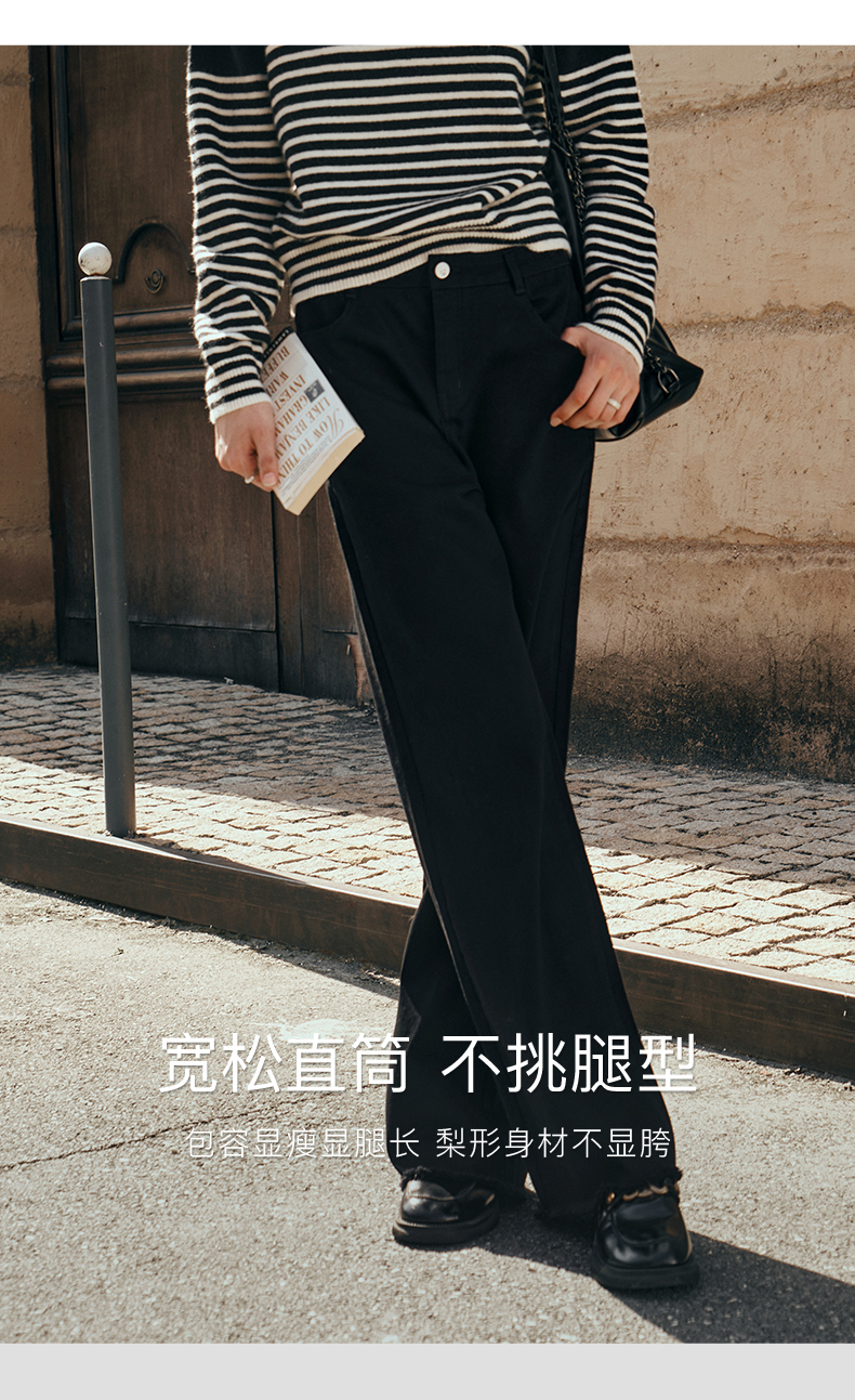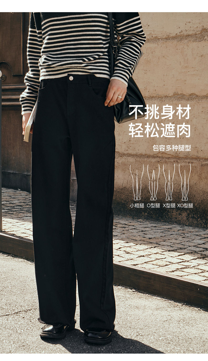 OLrain欧芮儿黑色牛仔裤女初秋2023新款高腰气质显瘦直筒阔腿长裤
