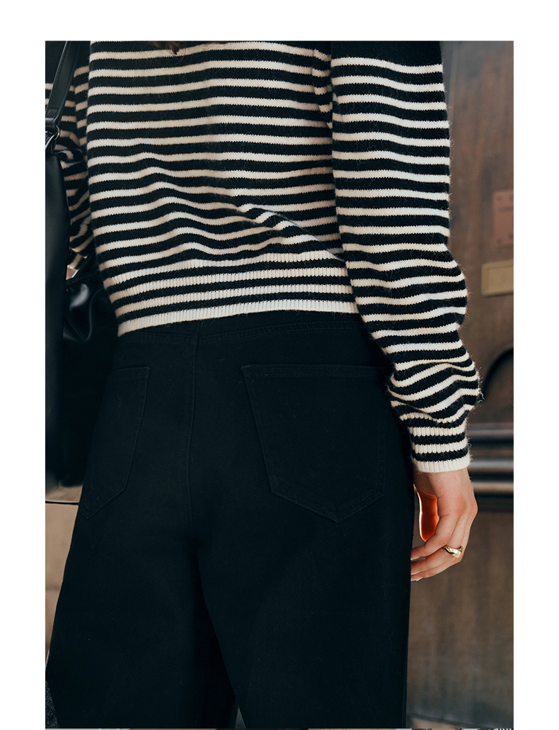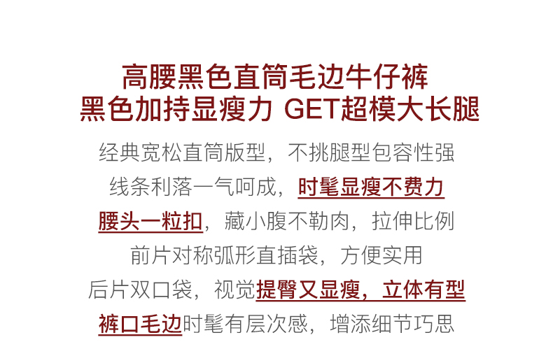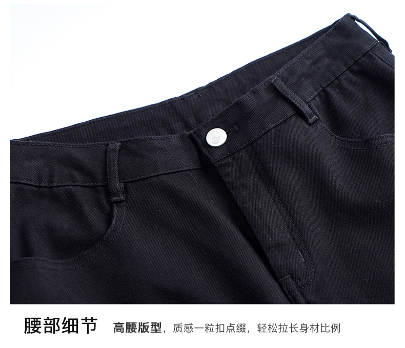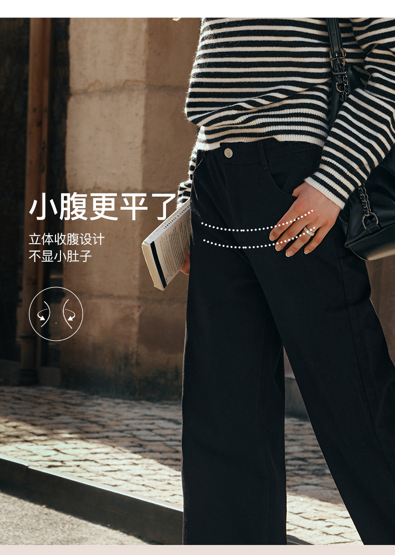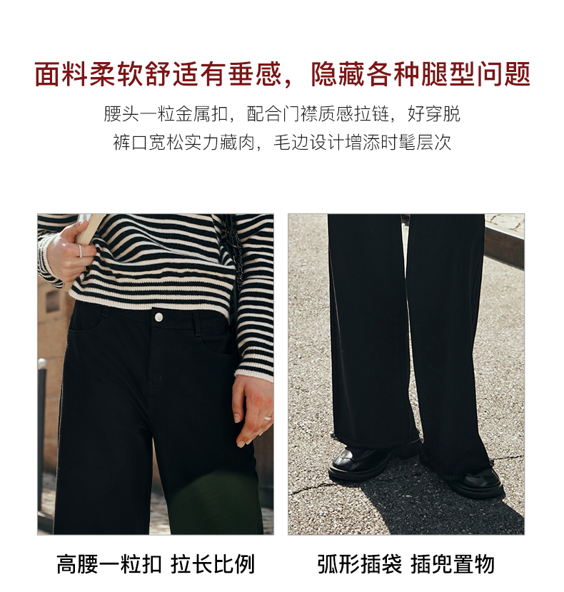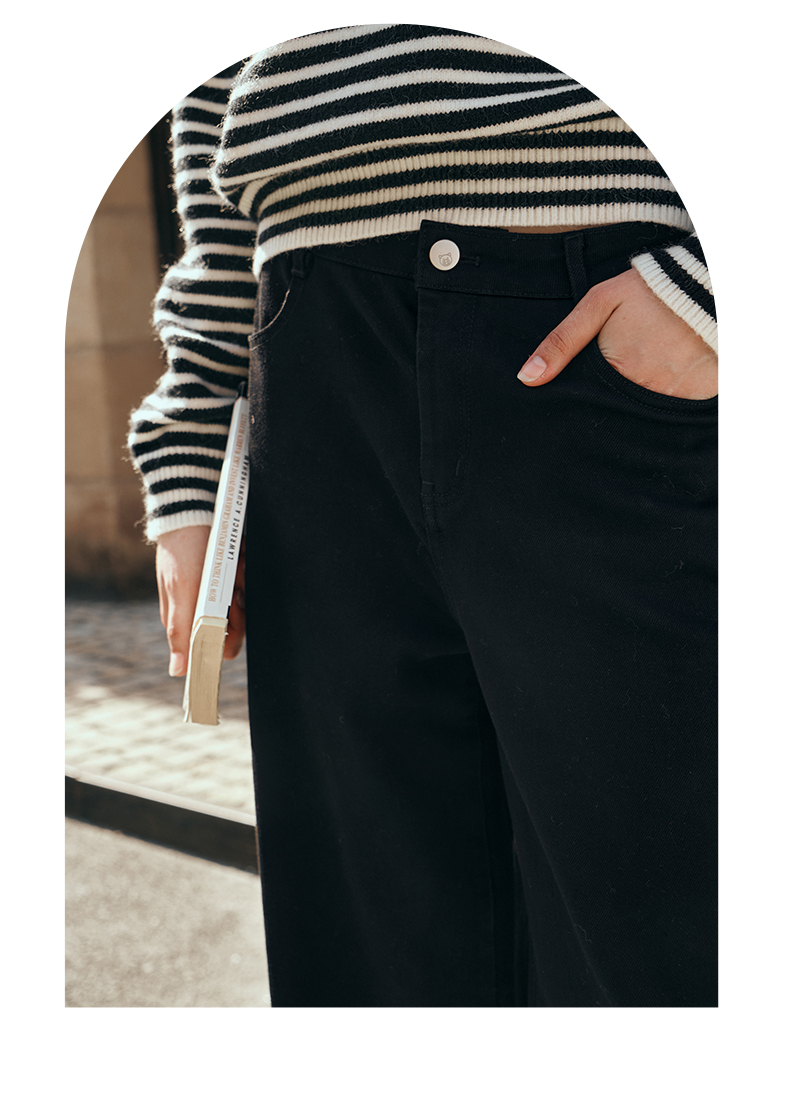 OLrain欧芮儿黑色牛仔裤女初秋2023新款高腰气质显瘦直筒阔腿长裤