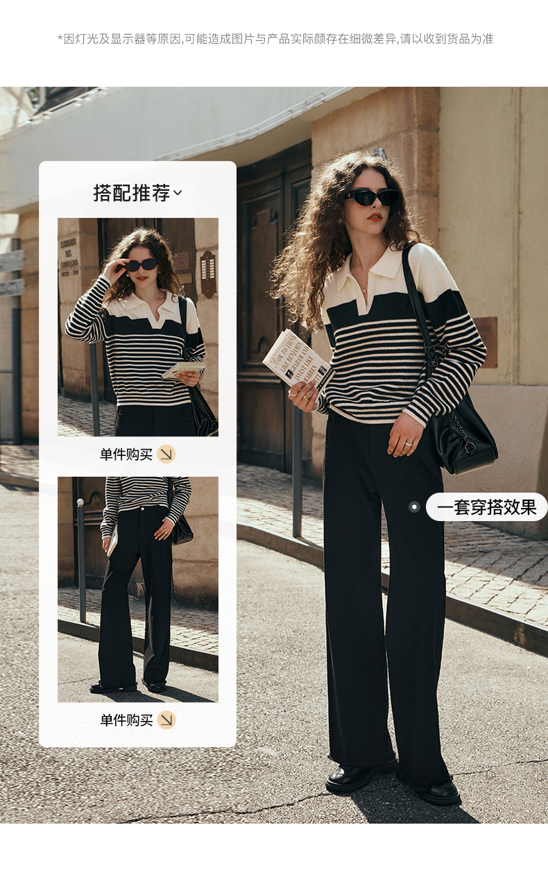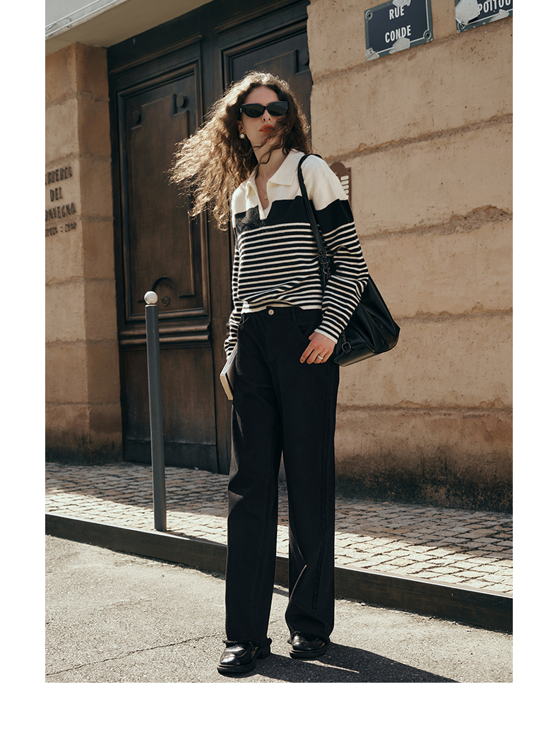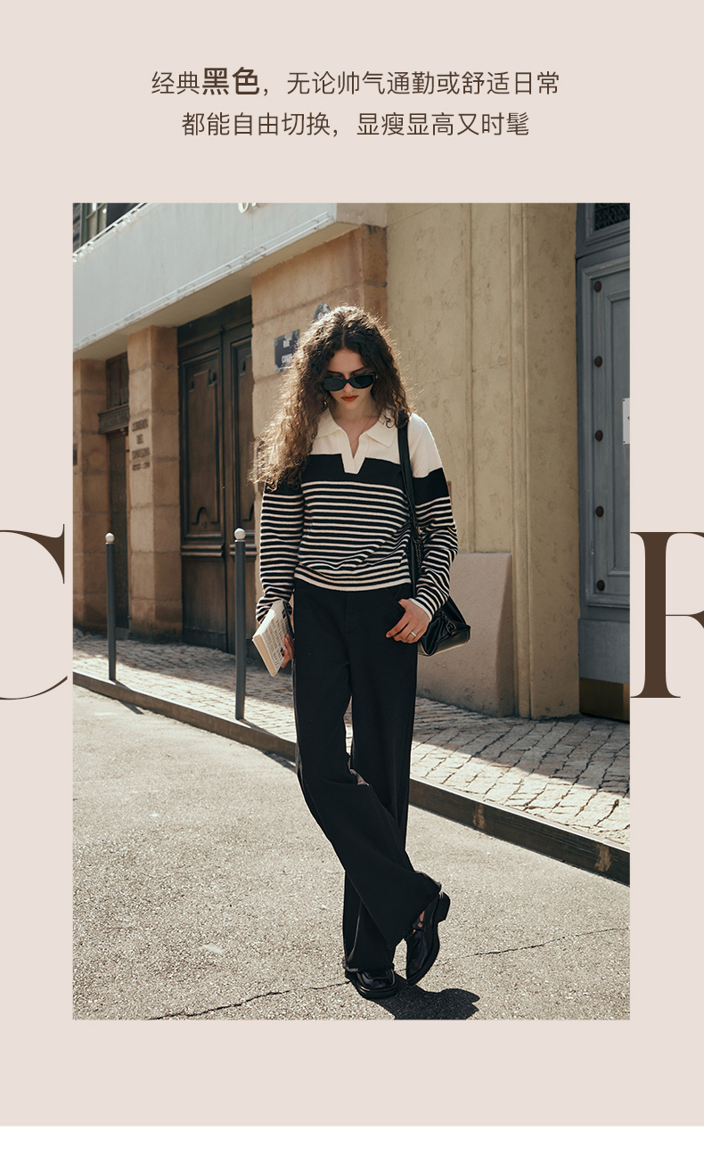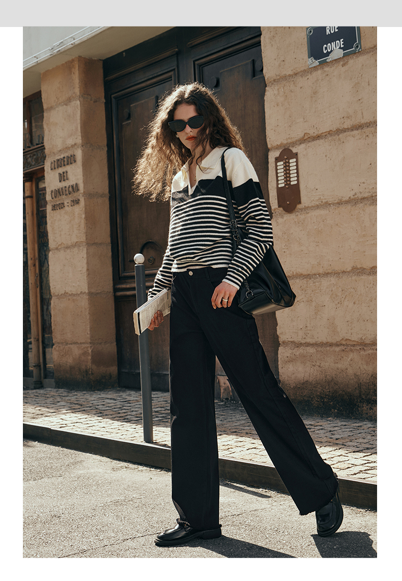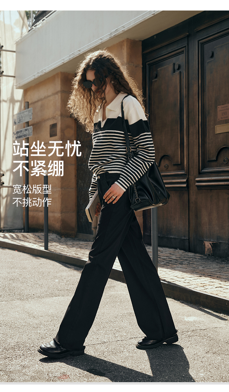 OLrain欧芮儿黑色牛仔裤女初秋2023新款高腰气质显瘦直筒阔腿长裤