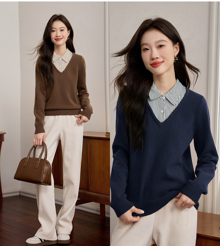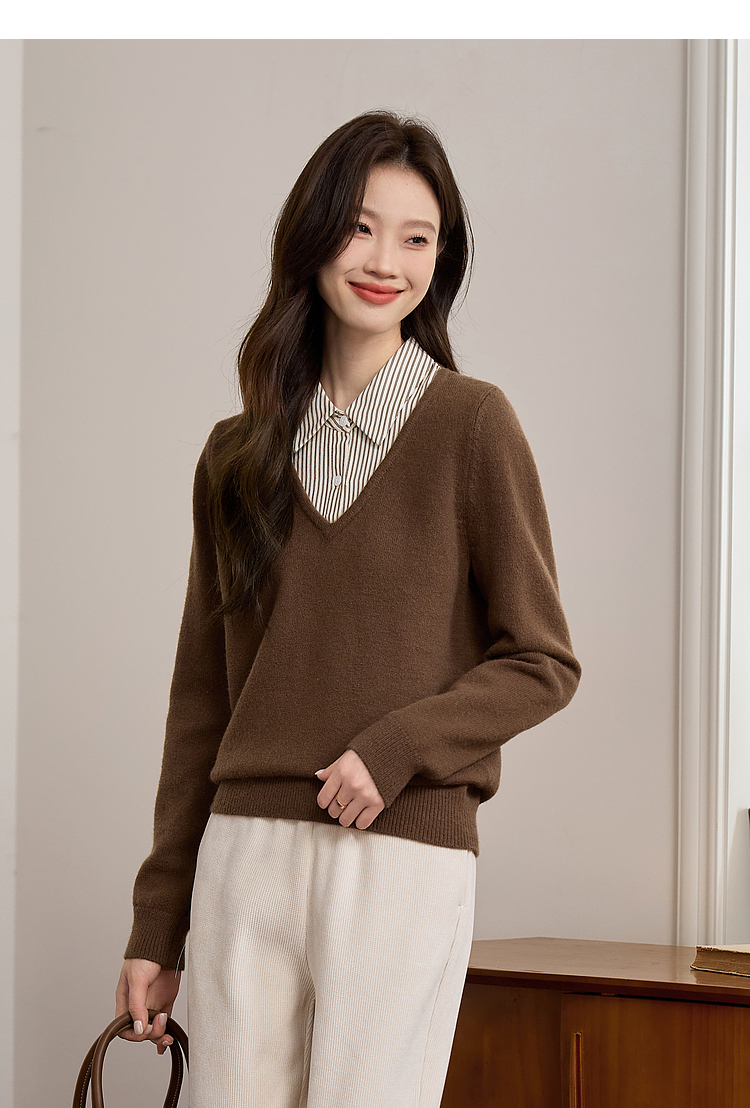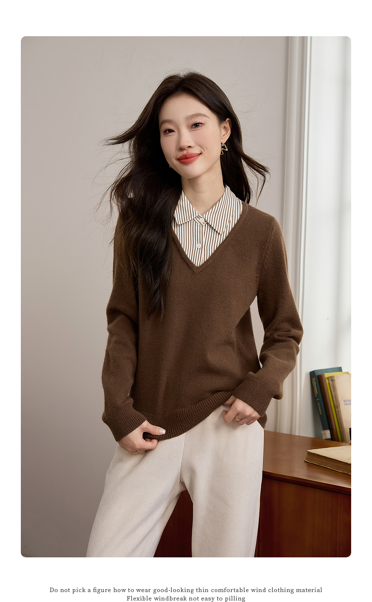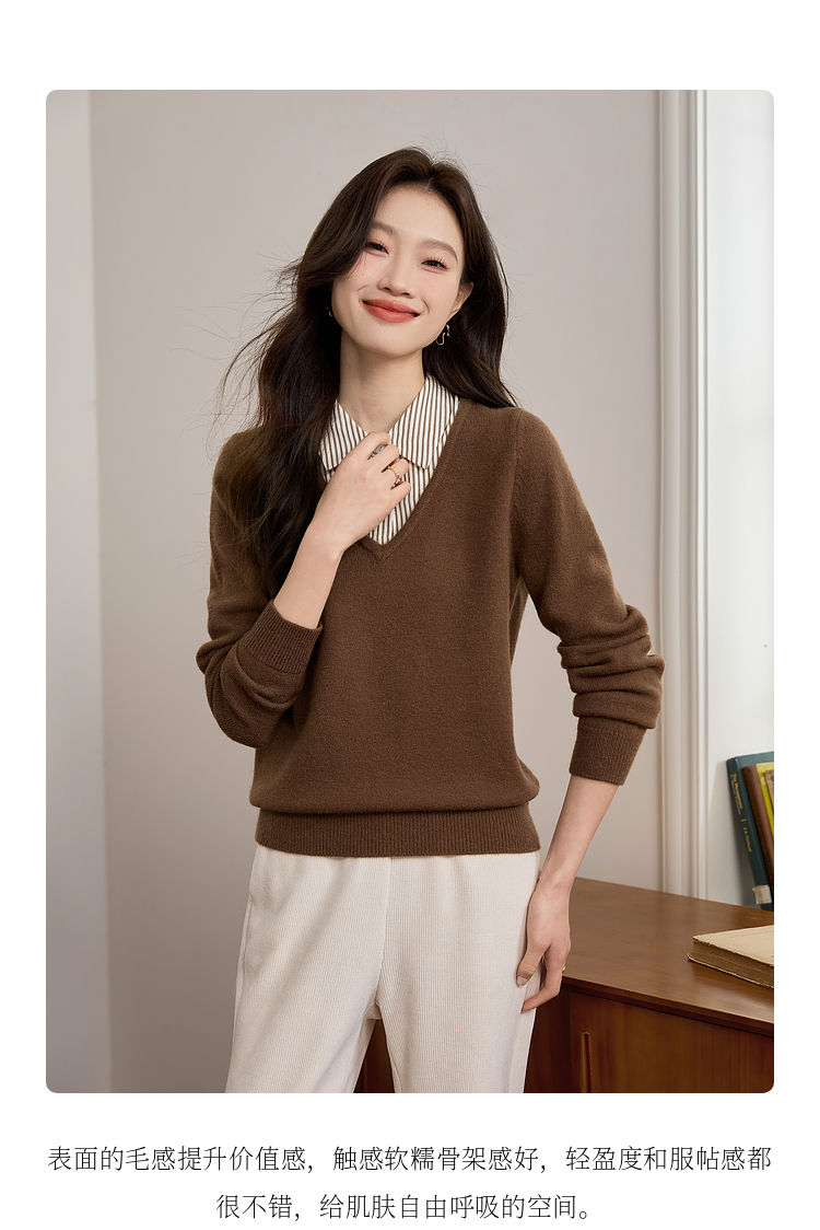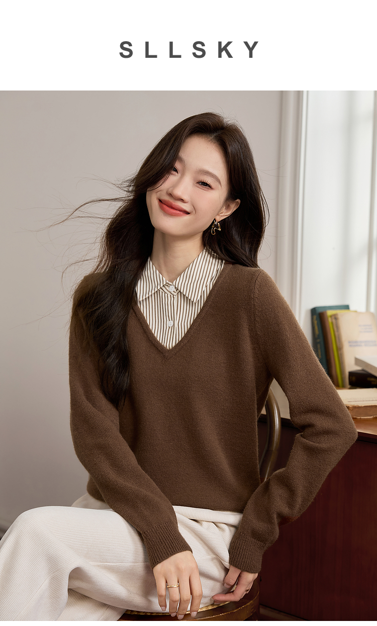 【专属特价】熙世界设计感条纹衬衫领拼接针织衫假两件打底毛衣女2025秋冬新款