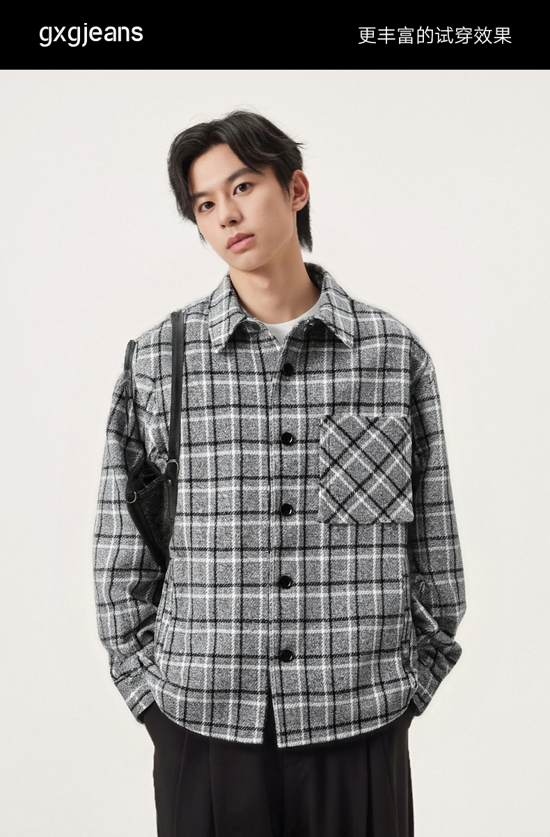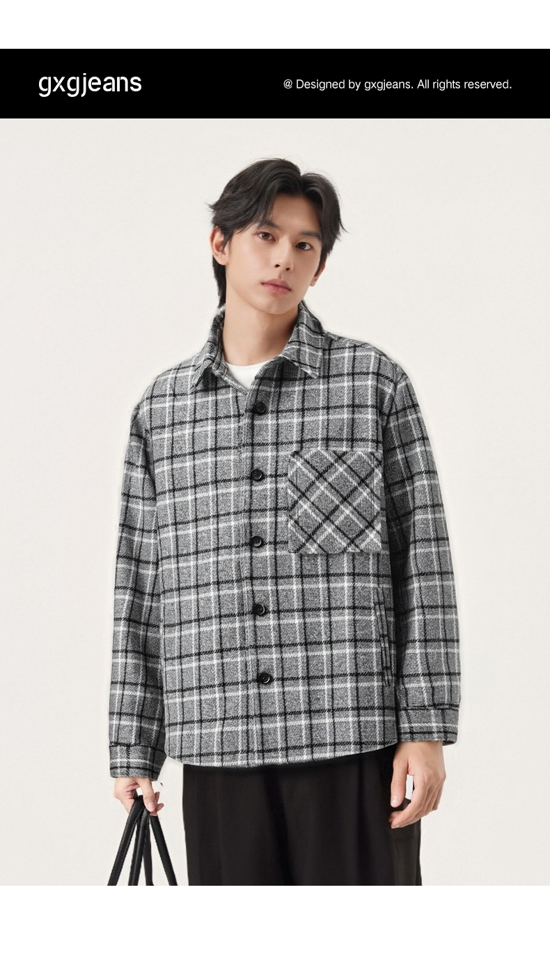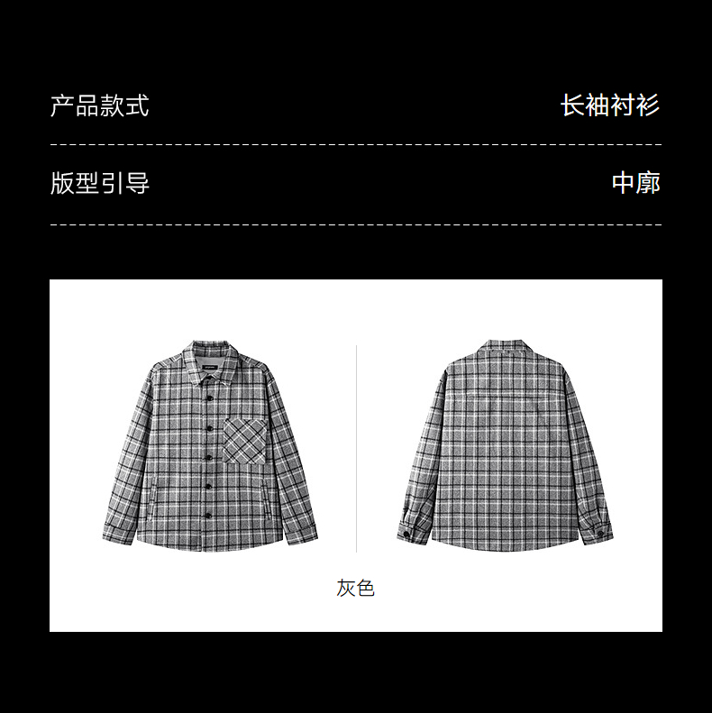 gxg.jeans男装 灰色复古格纹宽松翻领长袖衬衫外套 25年冬热卖款