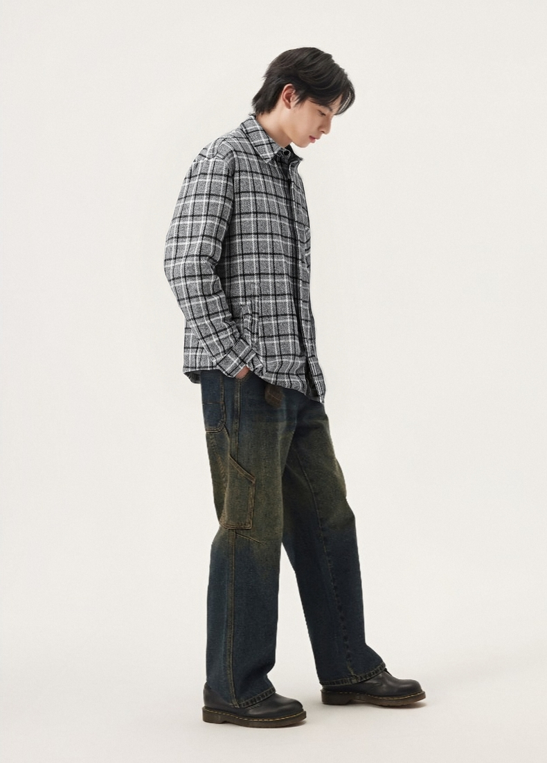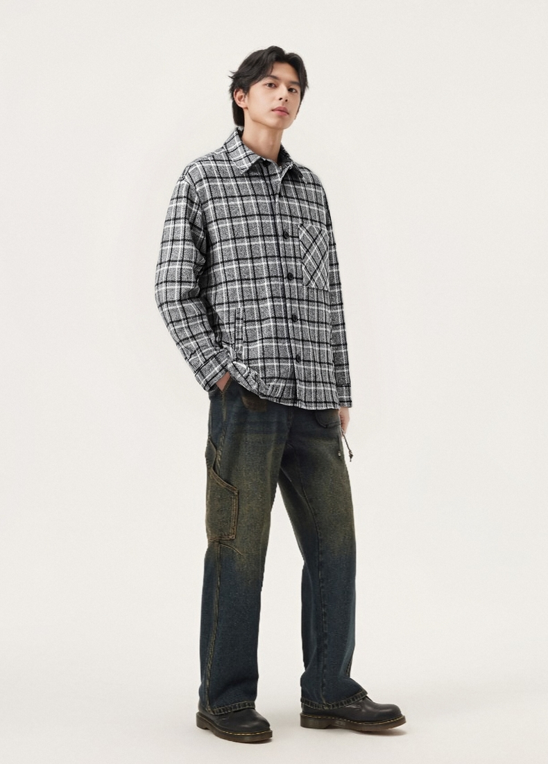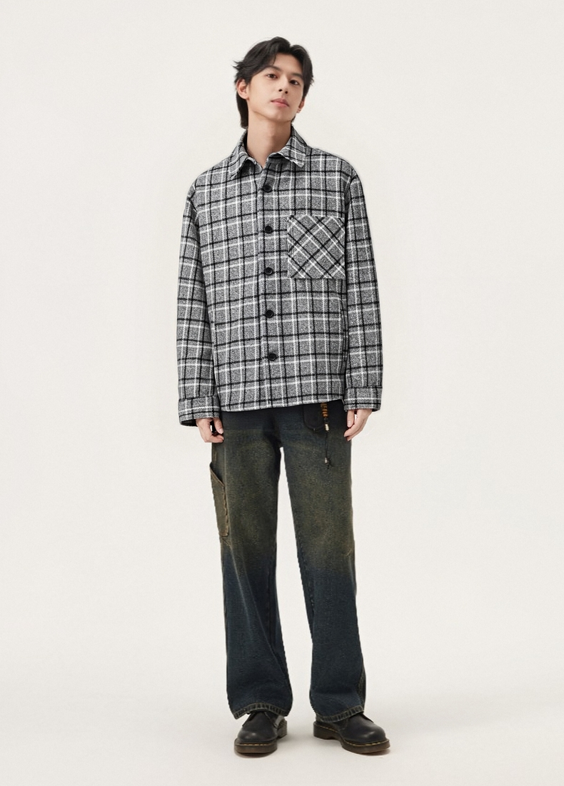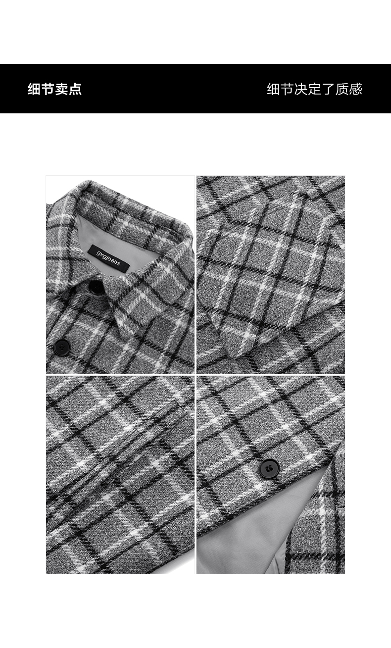 gxg.jeans男装 灰色复古格纹宽松翻领长袖衬衫外套 25年冬热卖款