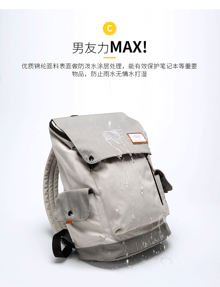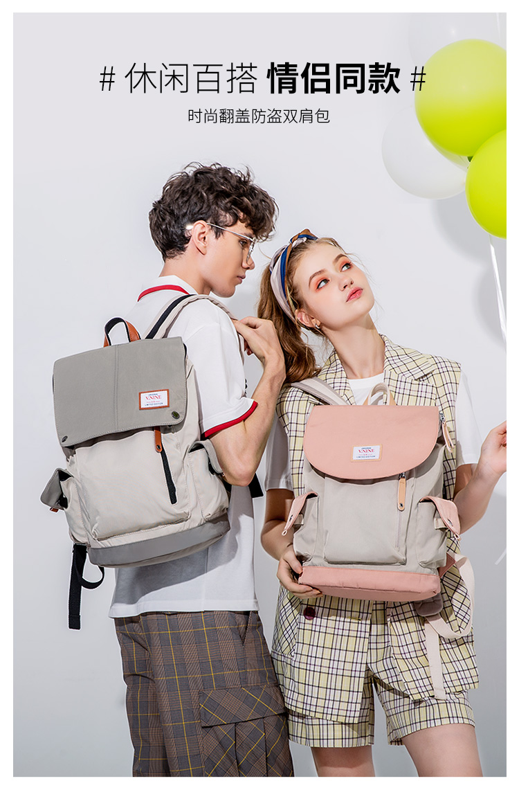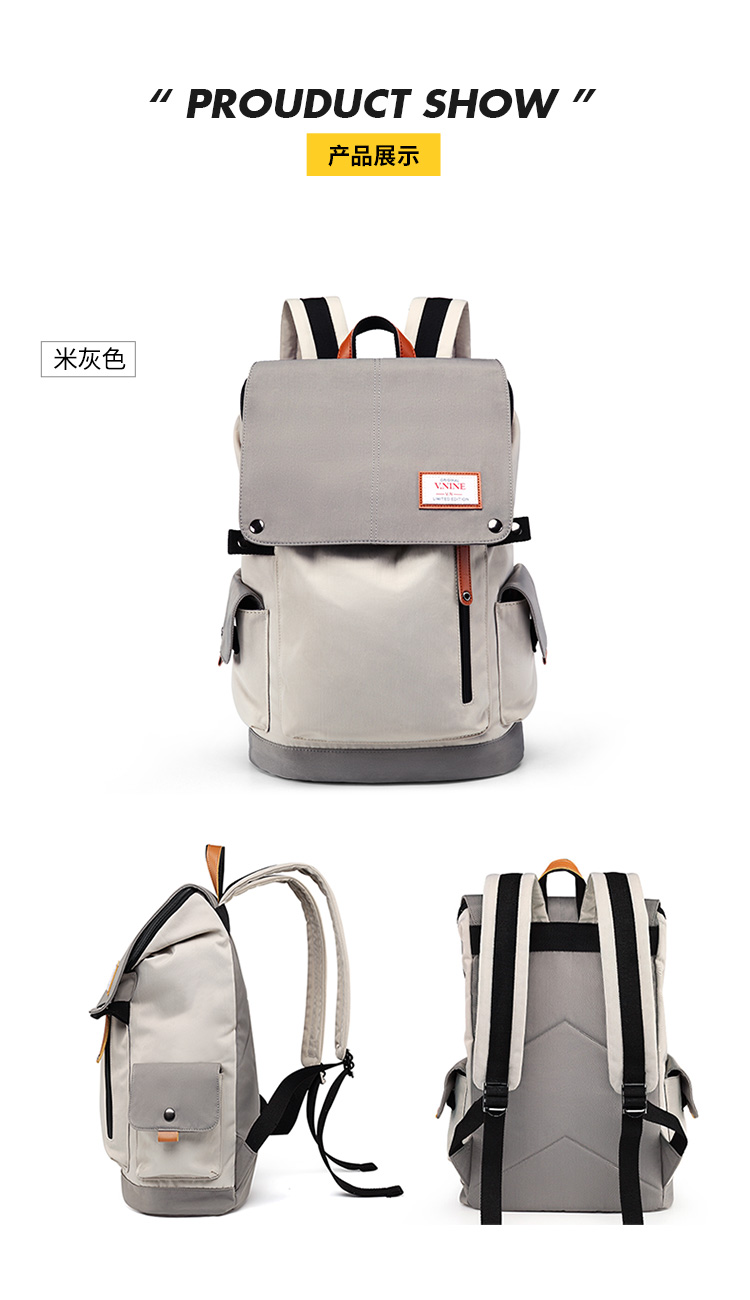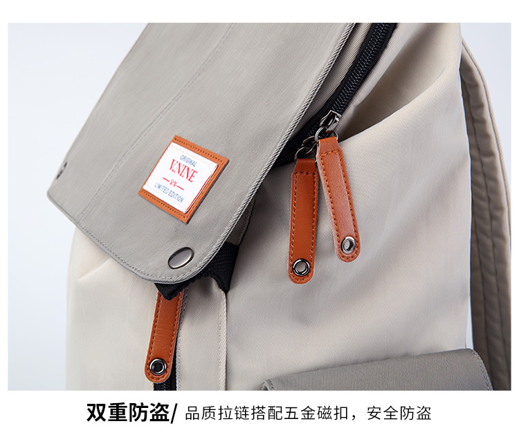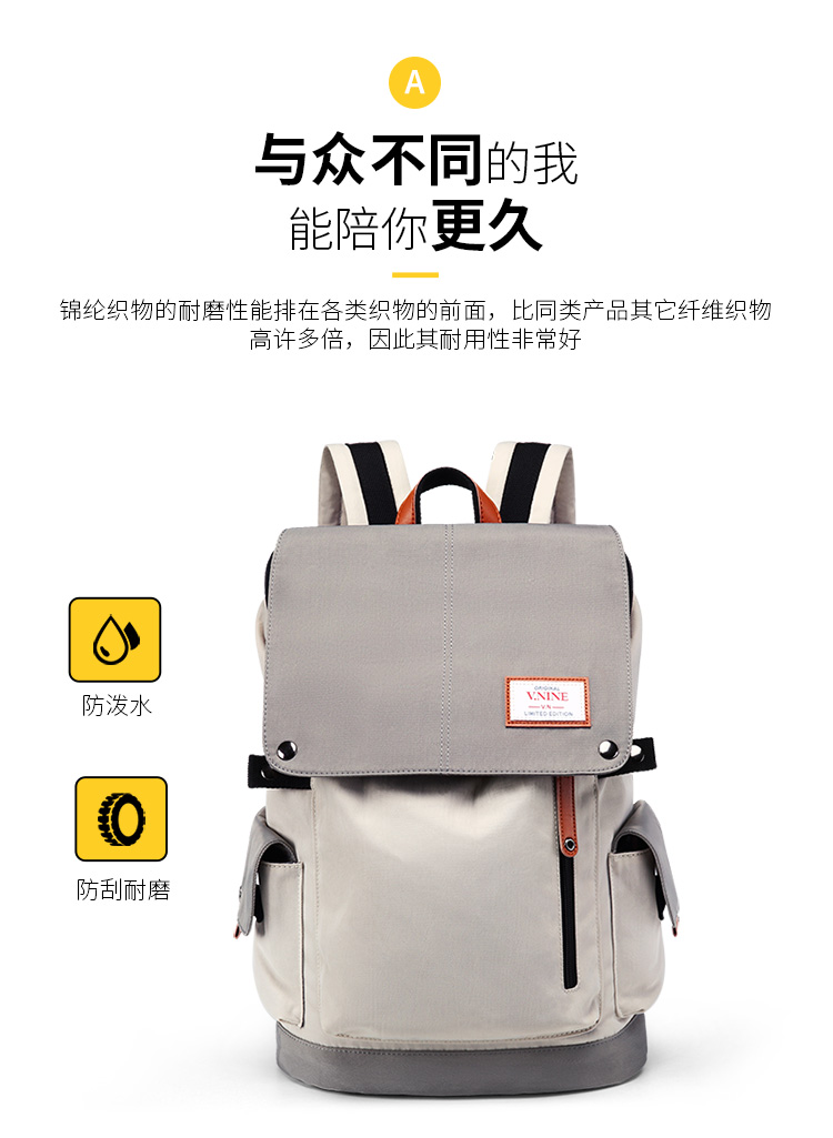 第九城V.NINE 双肩包男士大容量15.6英寸电脑包防泼水旅行背包情侣高中大学生上课书包女 VD7BV33886J 米灰