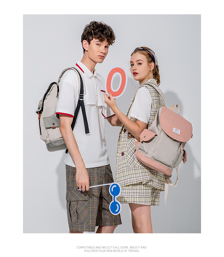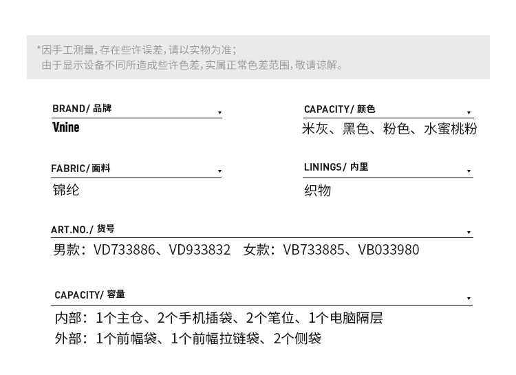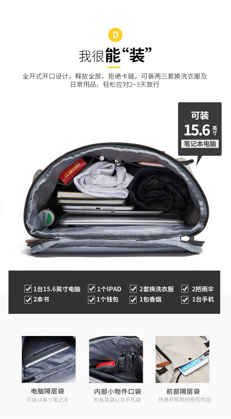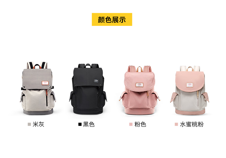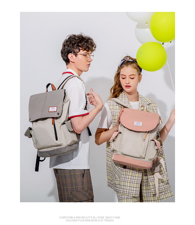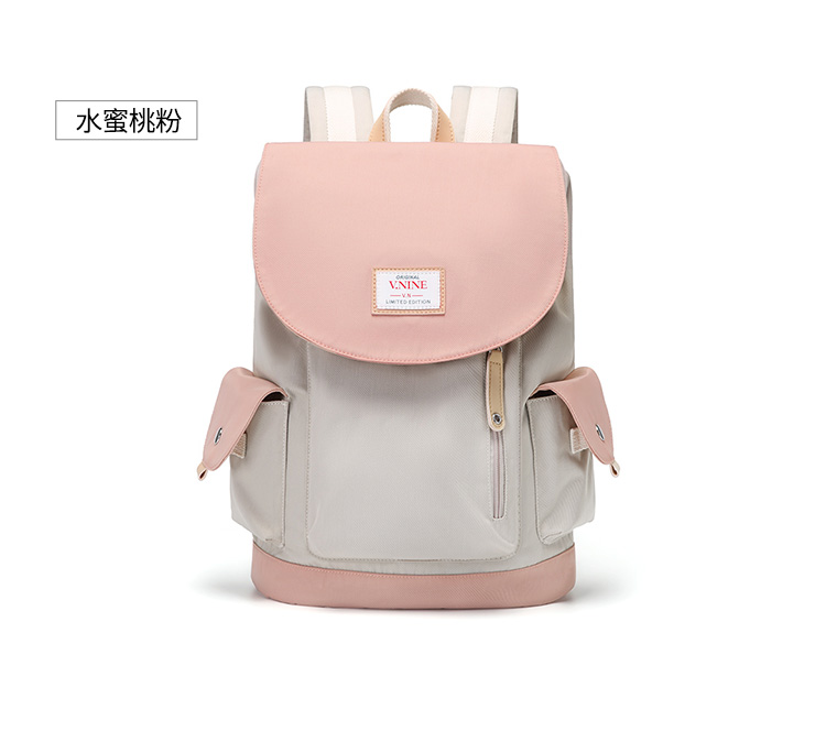 第九城V.NINE 双肩包男士大容量15.6英寸电脑包防泼水旅行背包情侣高中大学生上课书包女 VD7BV33886J 米灰