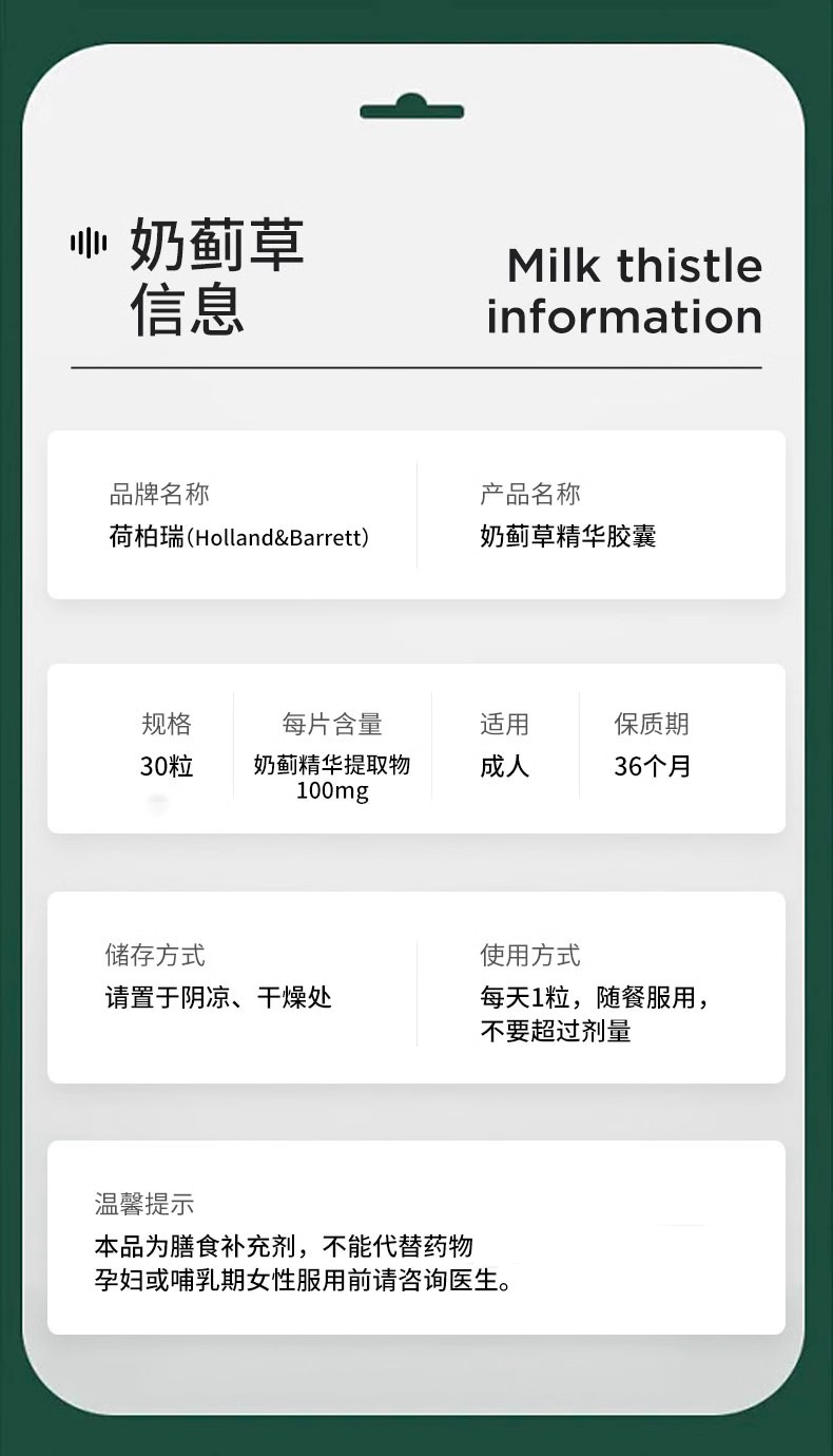 荷柏瑞 英国HB奶蓟片 30粒
