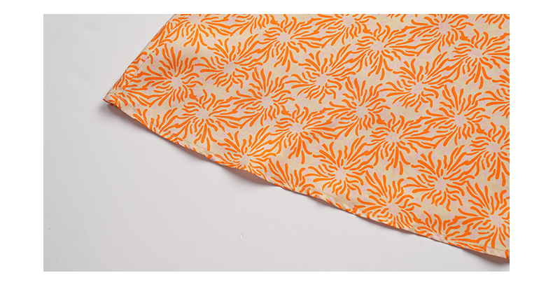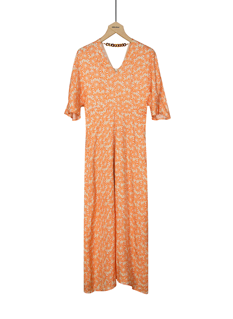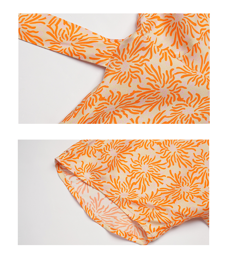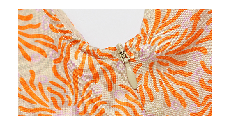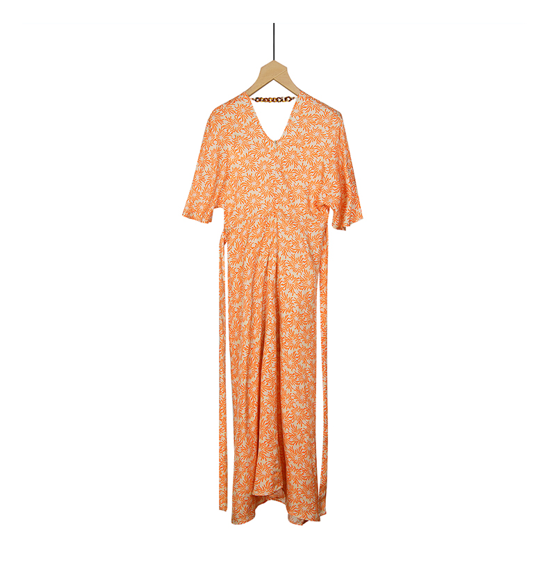 oldcolour夏款橘色时尚气质高腰V领碎花长款短袖连衣裙O22101271