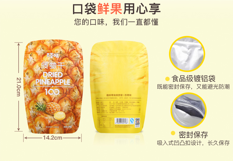 菠萝干100gx2袋 均匀切块,口口香甜