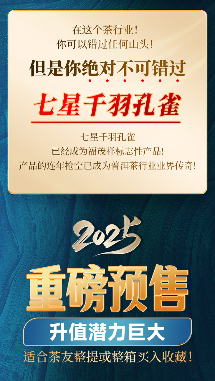 【2025年春茶】【七星千羽孔雀】 【七星系列】全球限量 一饼一码 2025年春茶勐海布朗山普洱茶生茶古树配方茶饼357g