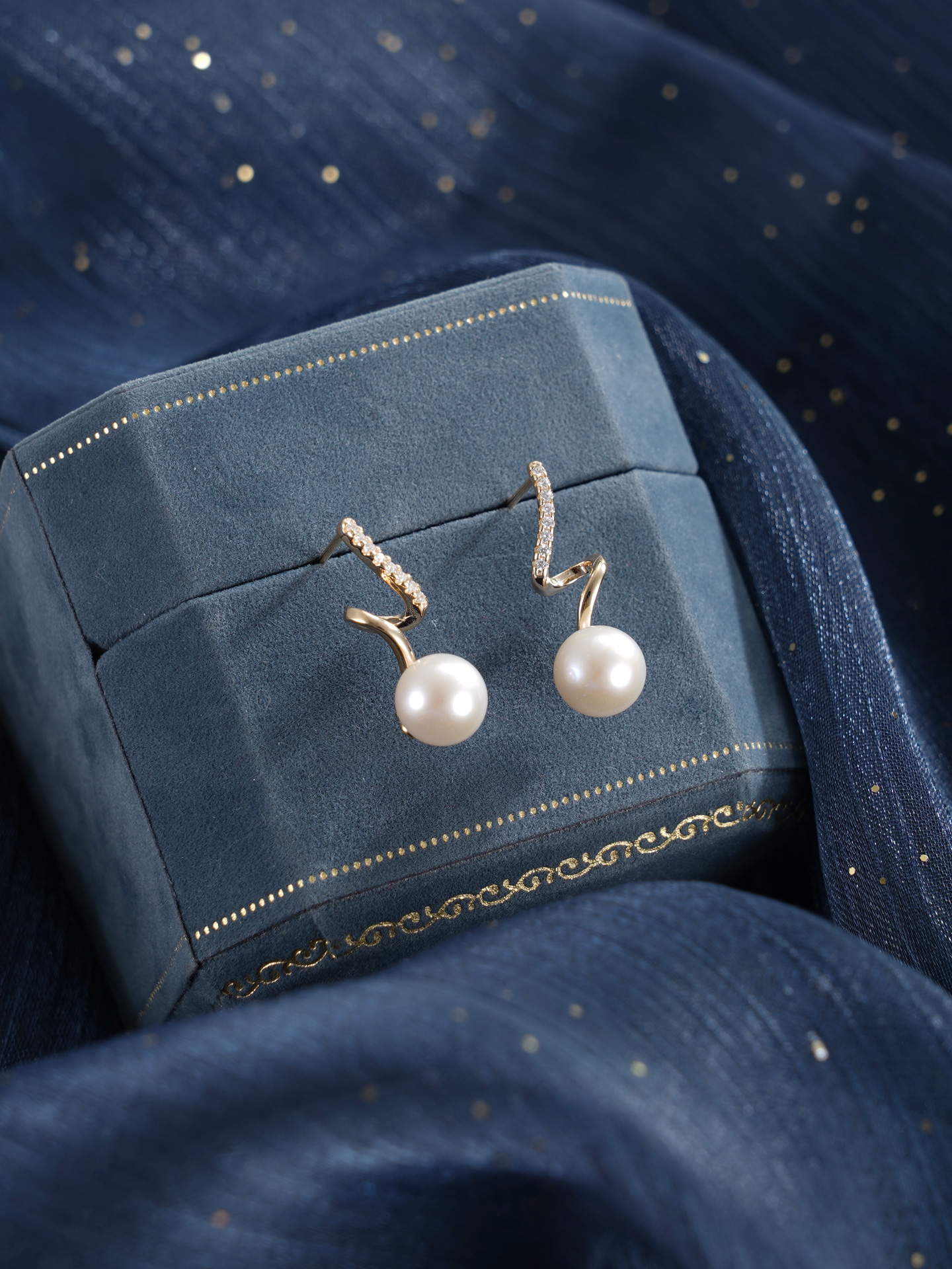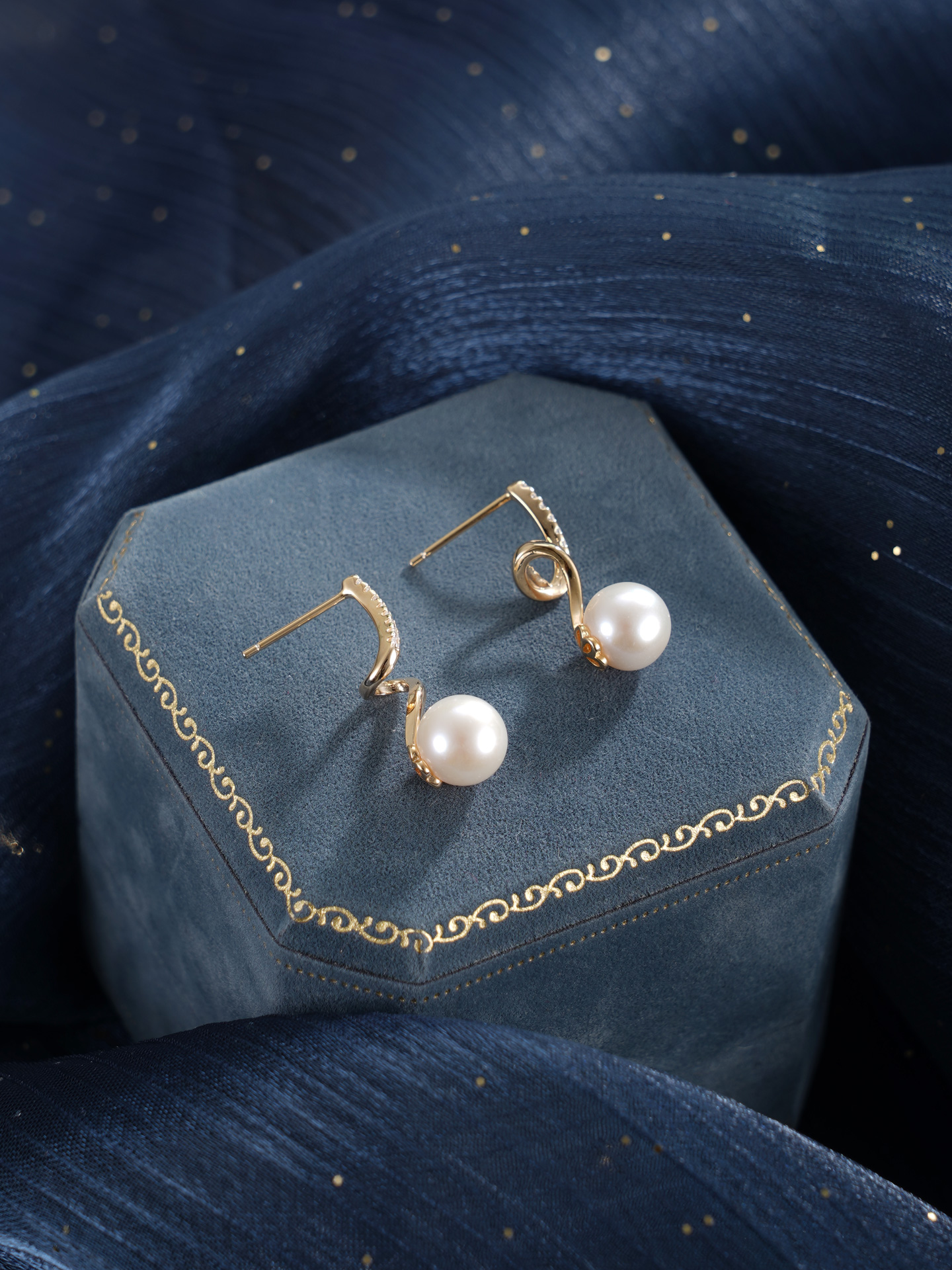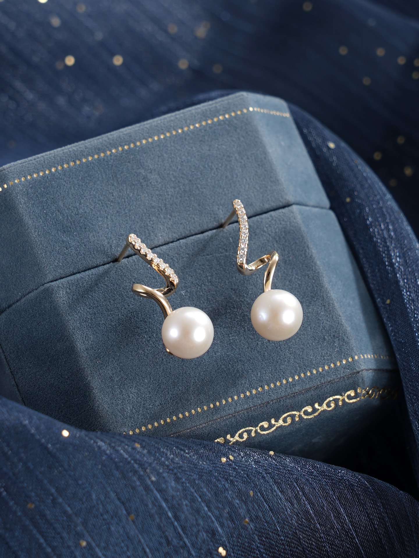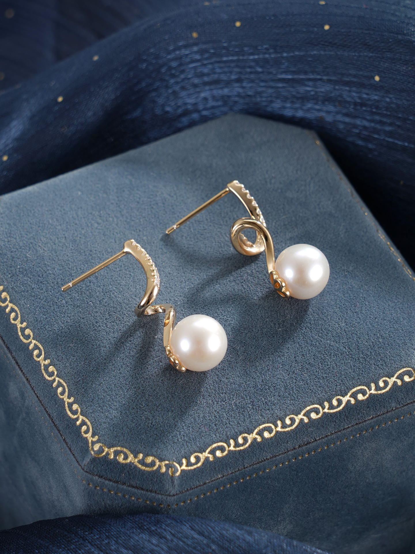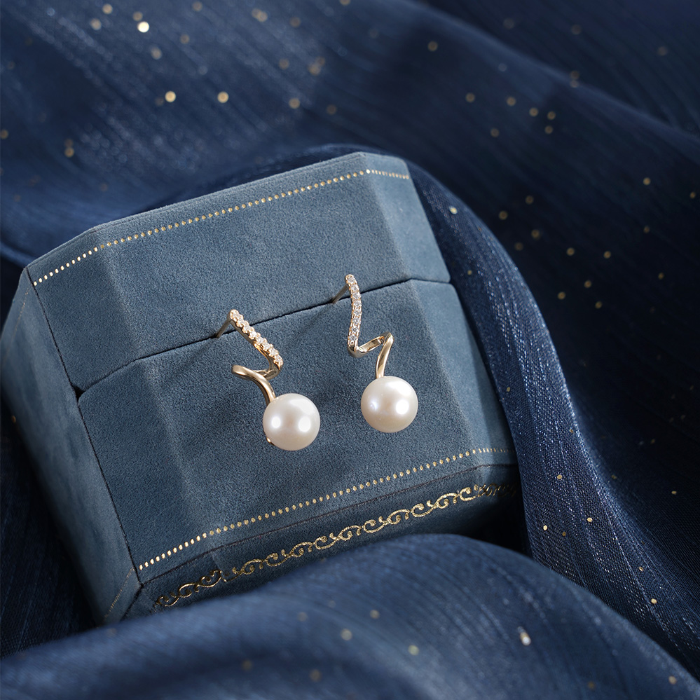 子佩集【瑶光之迹】银S925珍珠惜王妃耳钉【MLEH004】7.8mm珠镀金S波浪2601