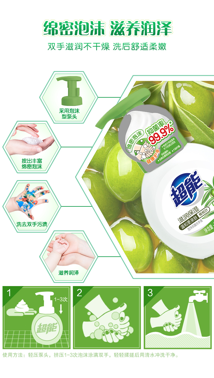 超能泡沫抑菌洗手液(滋润保湿)258ML*2瓶