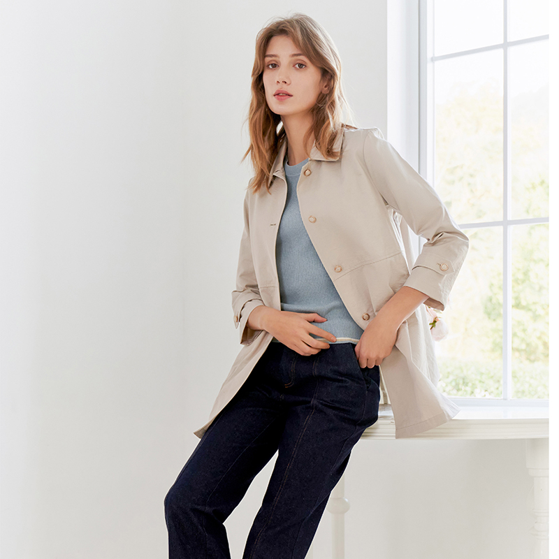 【单排扣中长款外套】23年春夏新品女士时尚通勤防风西装外套