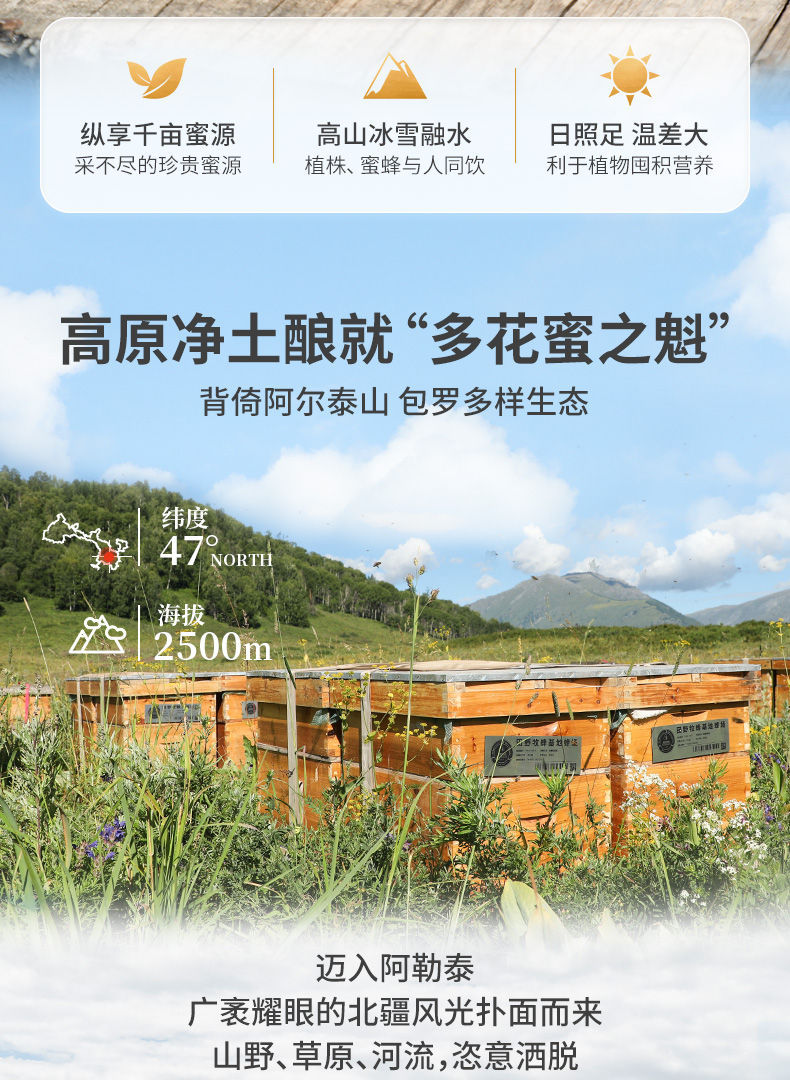 新疆阿勒泰山花蜂蜜活性酶含量高自然成熟蜜营养丰富