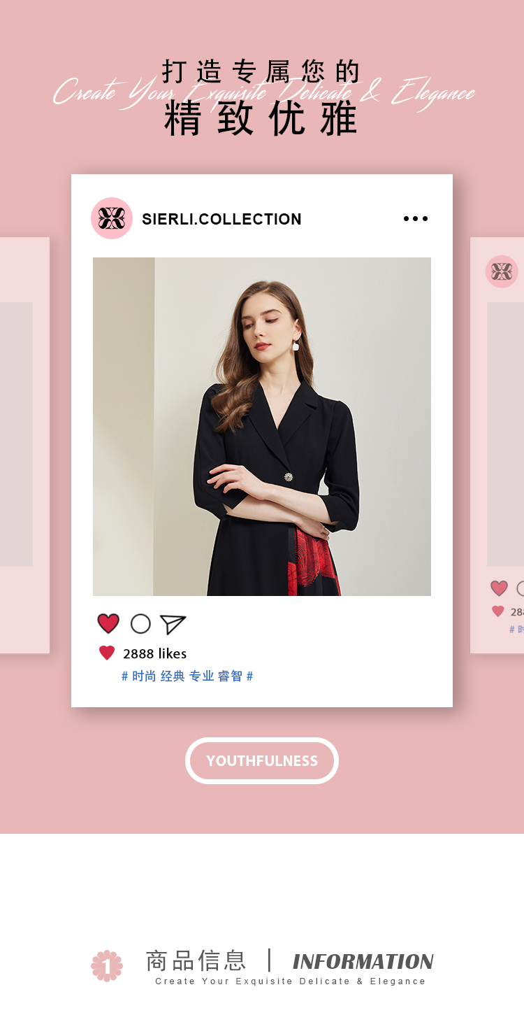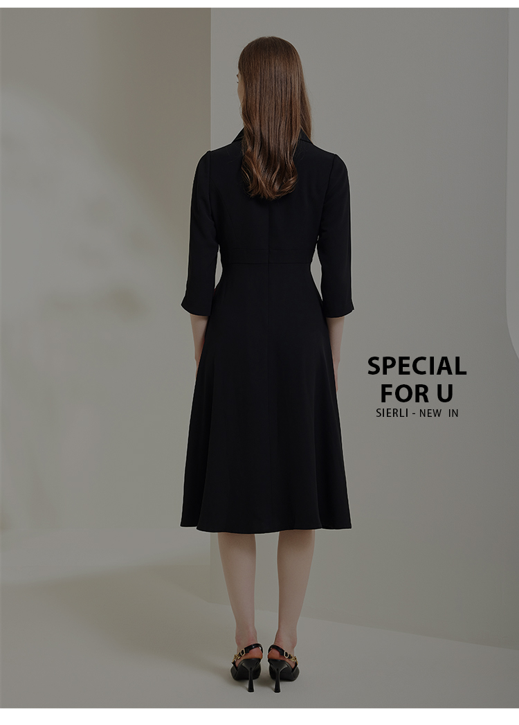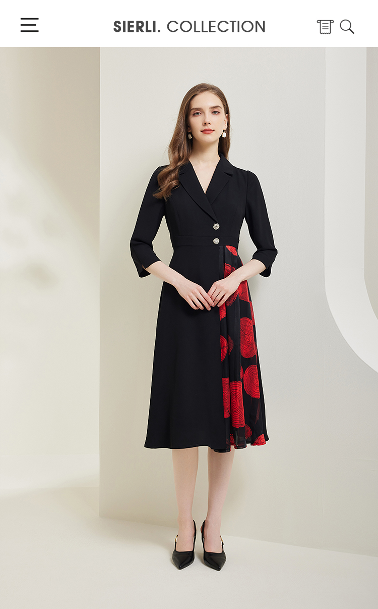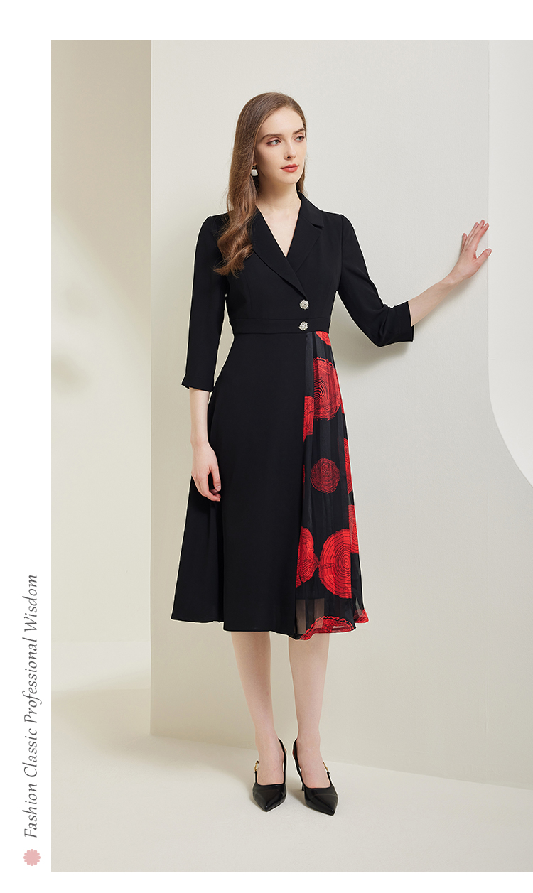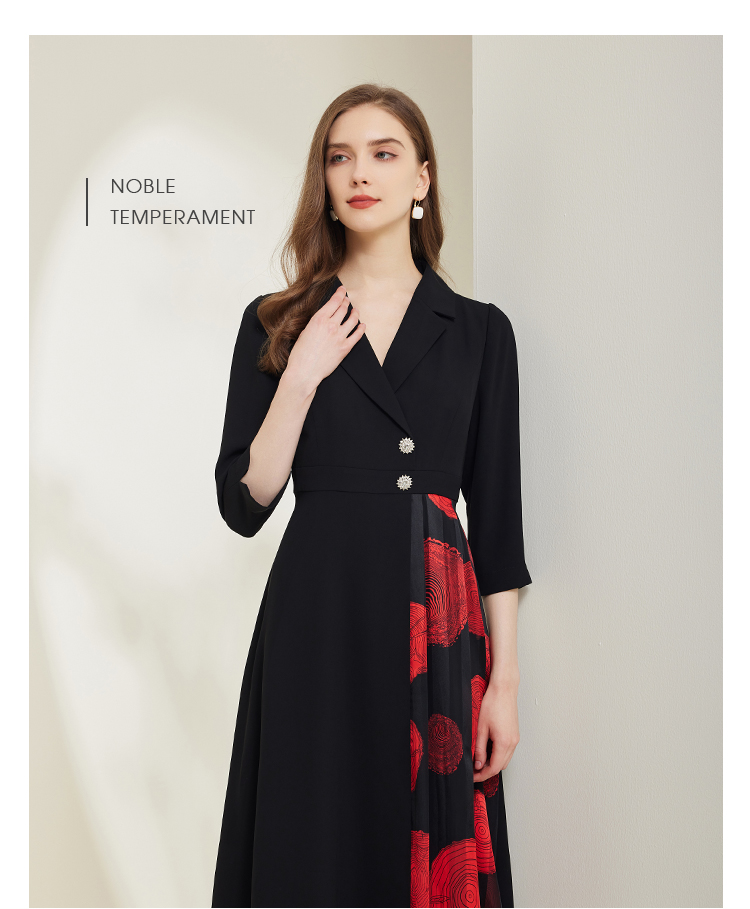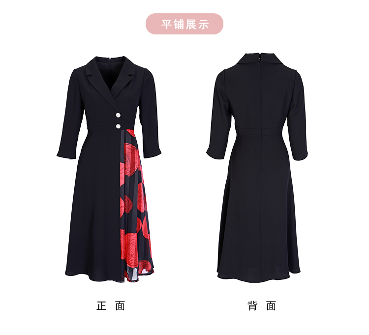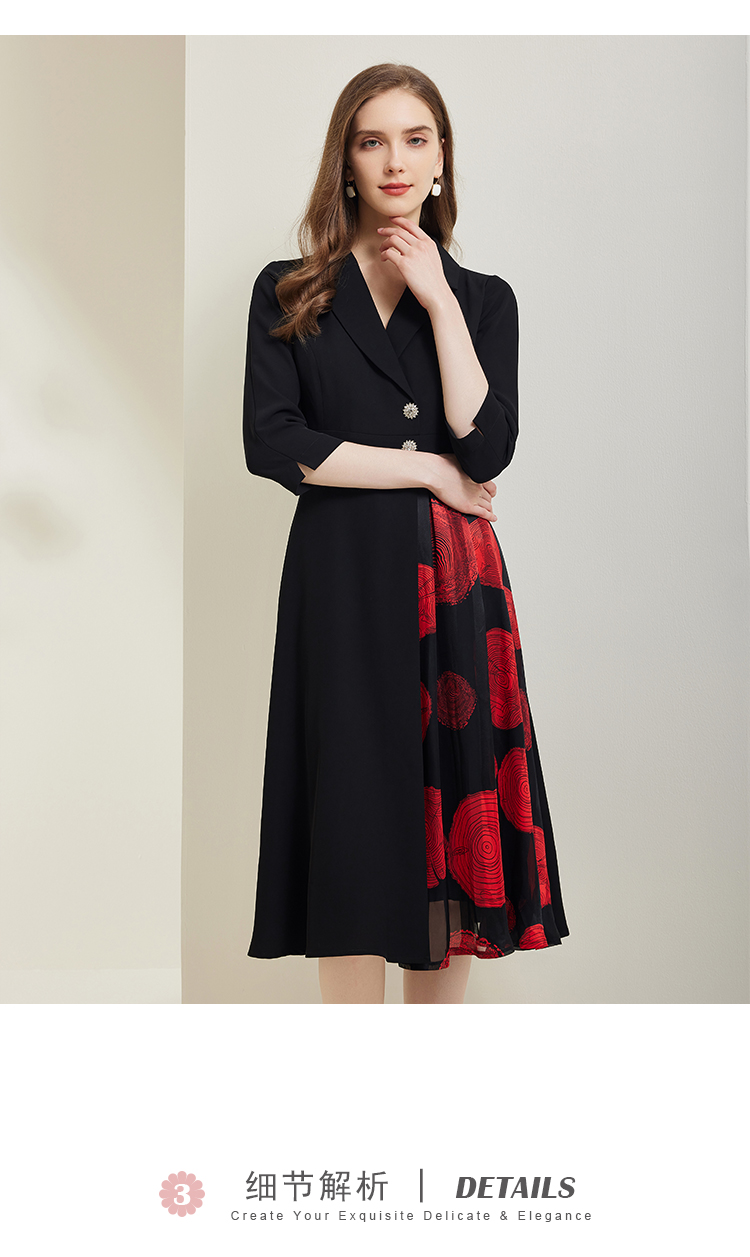 NG827斯尔丽瑟俪2023秋季不对称拼接印花白领收腰显瘦连衣裙