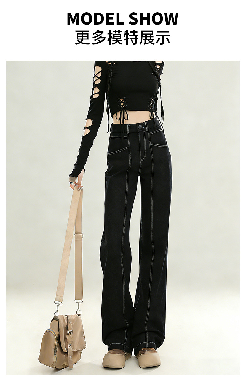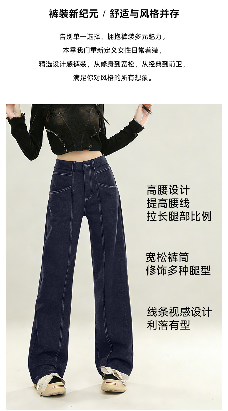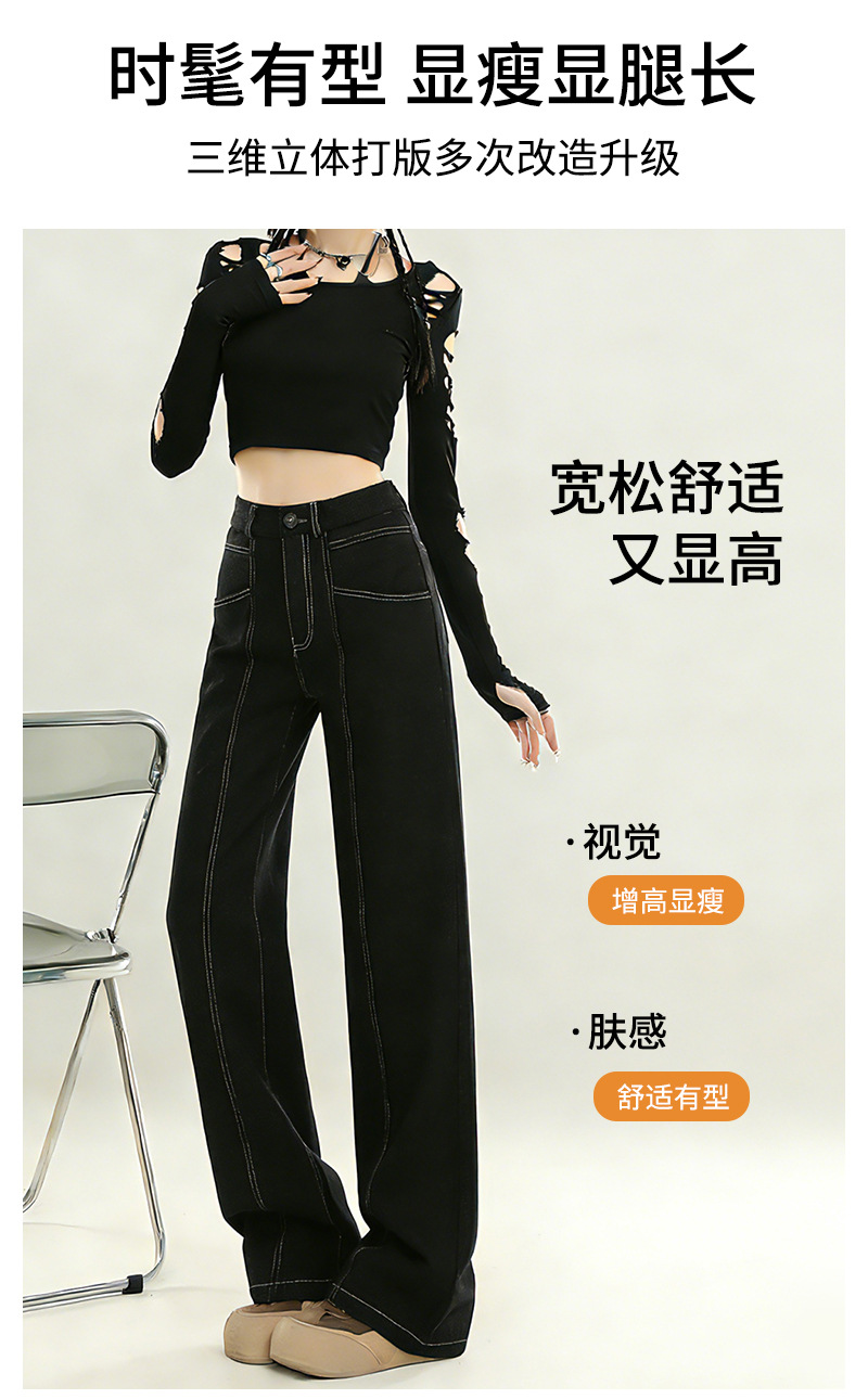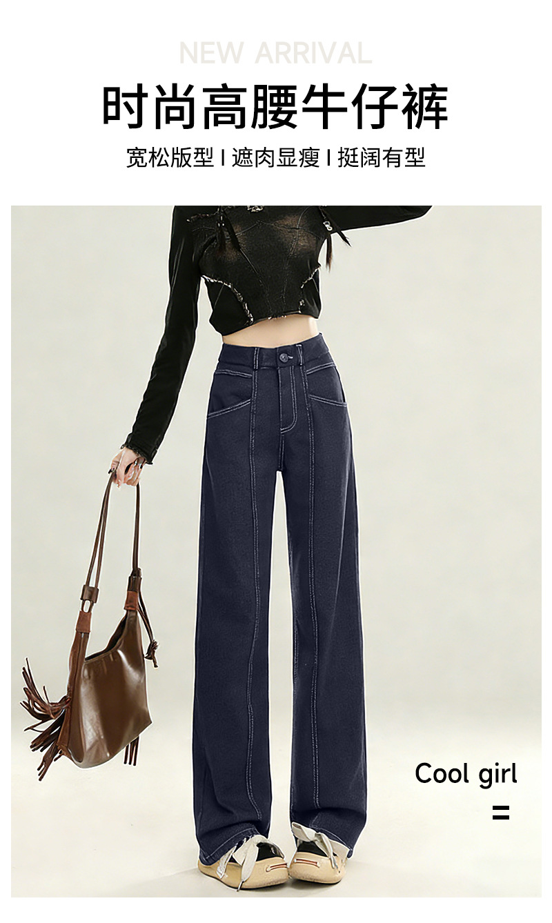 【小个子也能穿出大长腿❗️高腰明线阔腿牛仔裤】腰线提升至肚脐上方,收紧赘肉,拉长下半身,轻松打造三七分身材,不贴腿不紧绷,完美修饰O型腿/X 型腿/小腿粗等问题,美式复古宽松高腰显瘦直筒长裤L★美物社