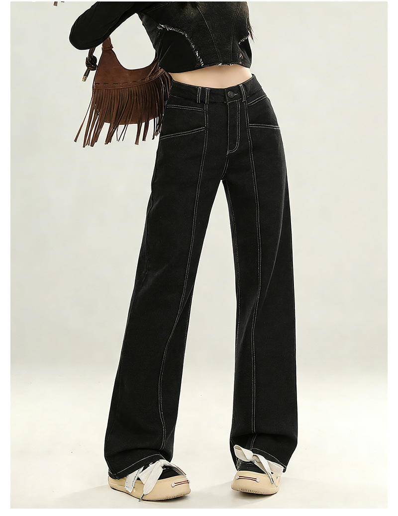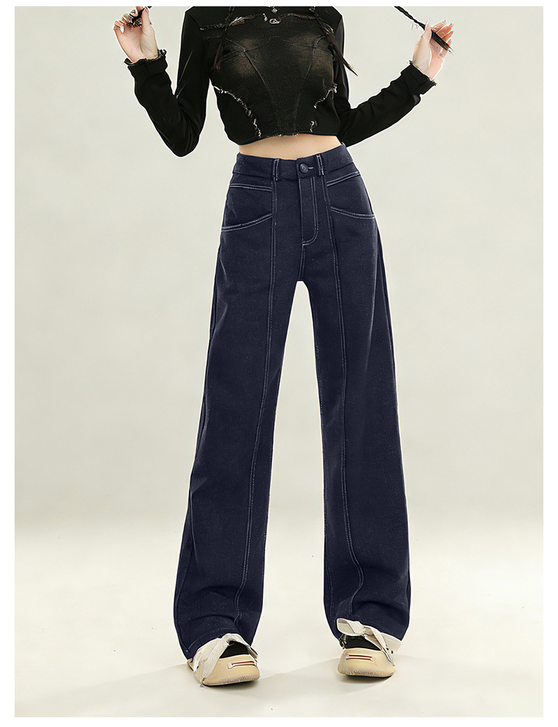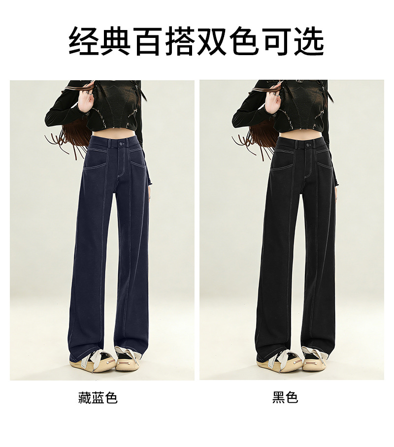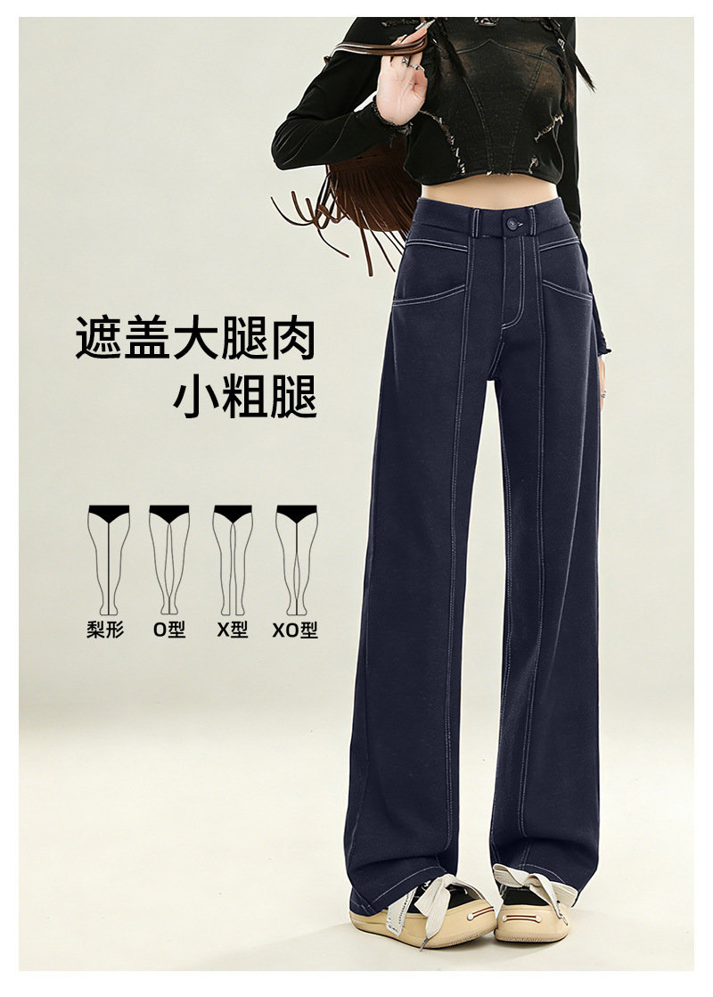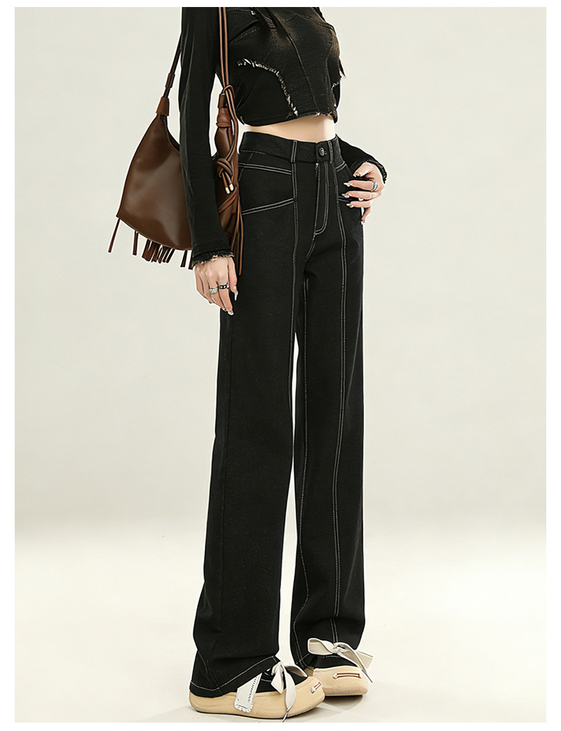 【小个子也能穿出大长腿❗️高腰明线阔腿牛仔裤】腰线提升至肚脐上方,收紧赘肉,拉长下半身,轻松打造三七分身材,不贴腿不紧绷,完美修饰O型腿/X 型腿/小腿粗等问题,美式复古宽松高腰显瘦直筒长裤L★美物社