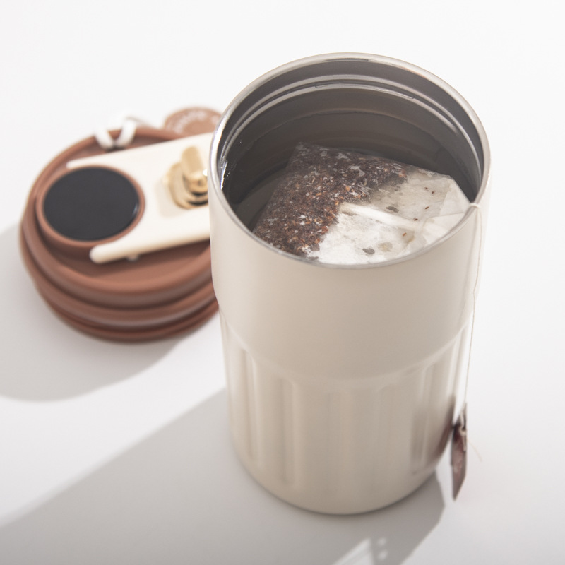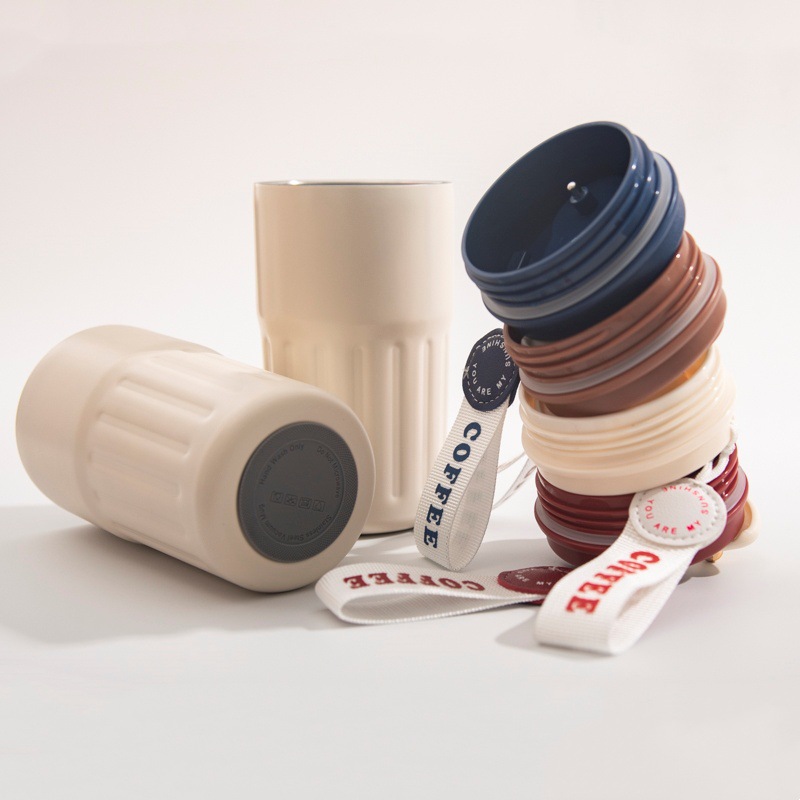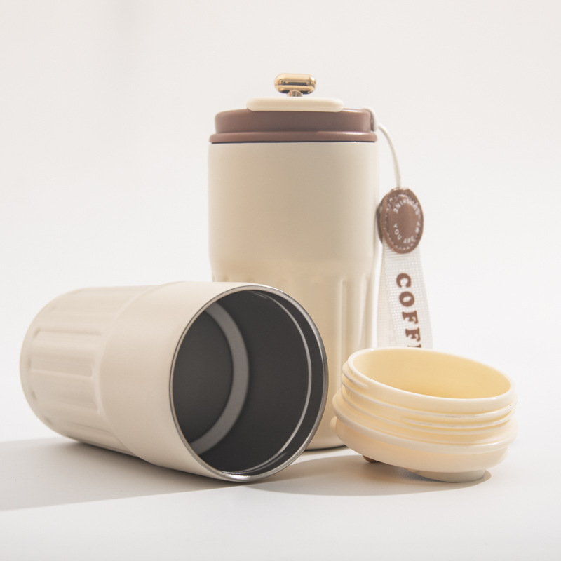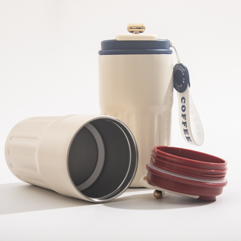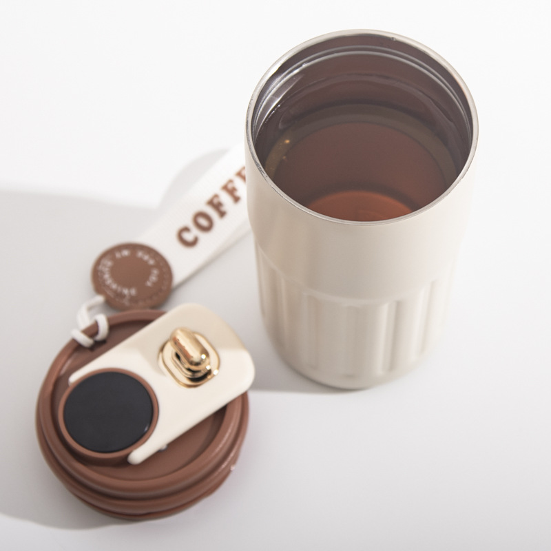 【智能温显咖啡杯】不锈钢智能温显咖啡杯户外便携带提绳保温杯随手杯