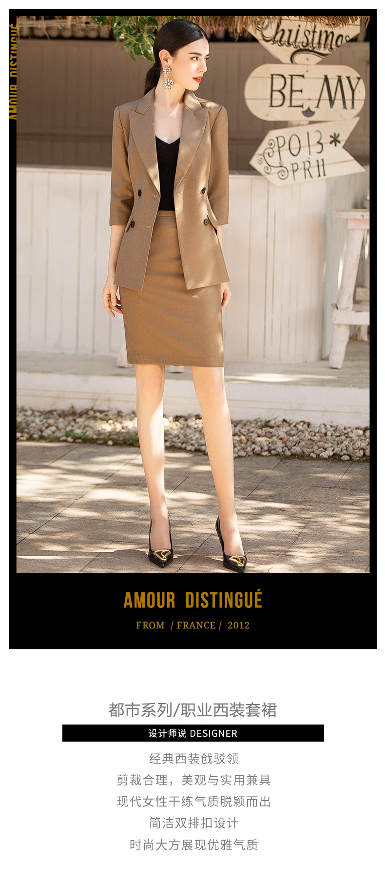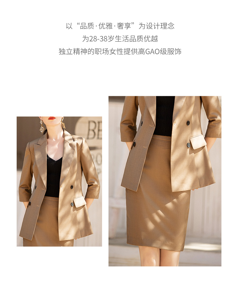 IWY/卡其色酒店经理工作服女夏双排扣气质高端英伦风职业装西装套装裙