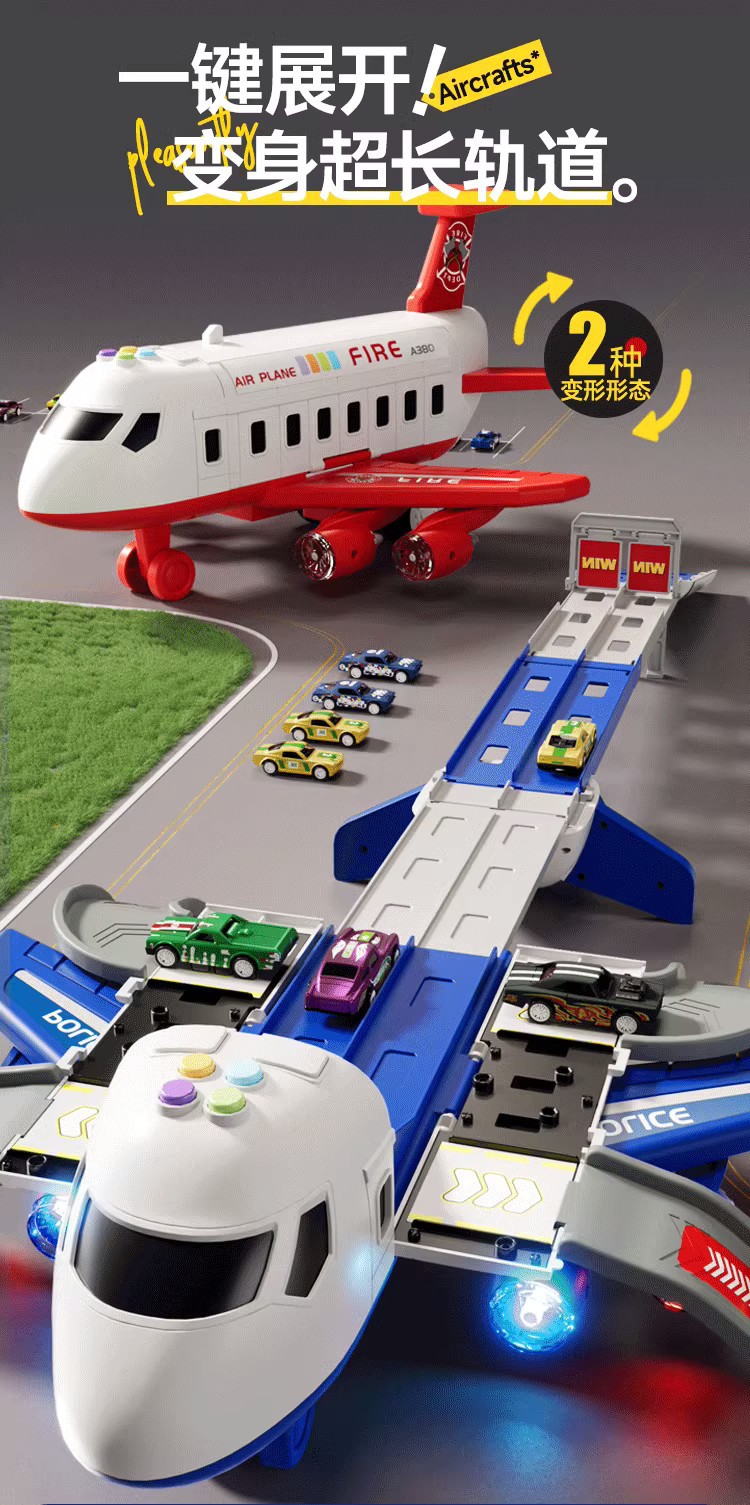 【变形飞机弹射轨道车玩具】赛车跑道 儿童合金小汽车停车场 男孩子益智组装玩具