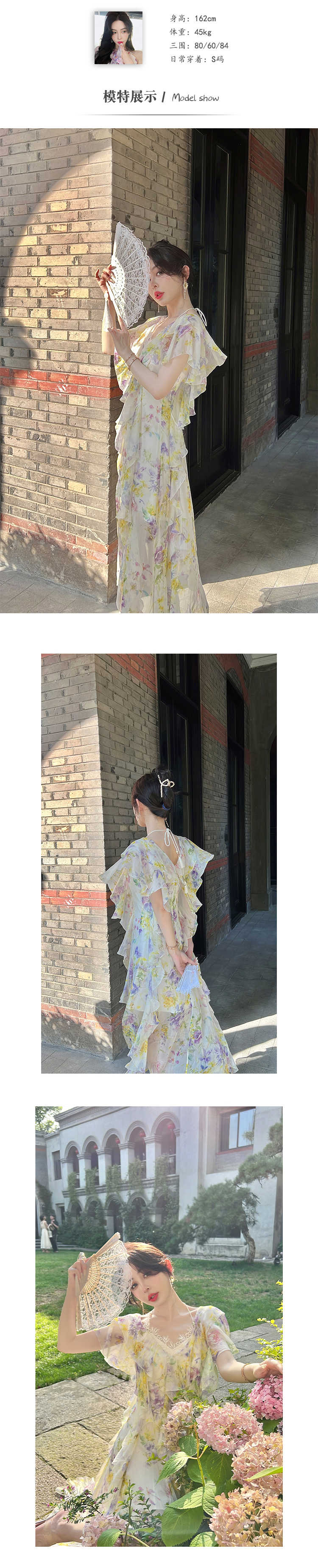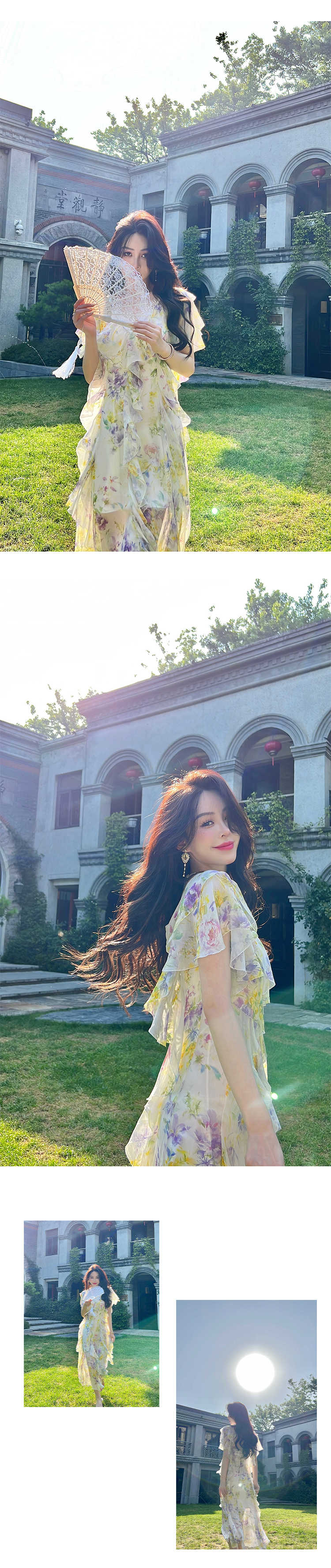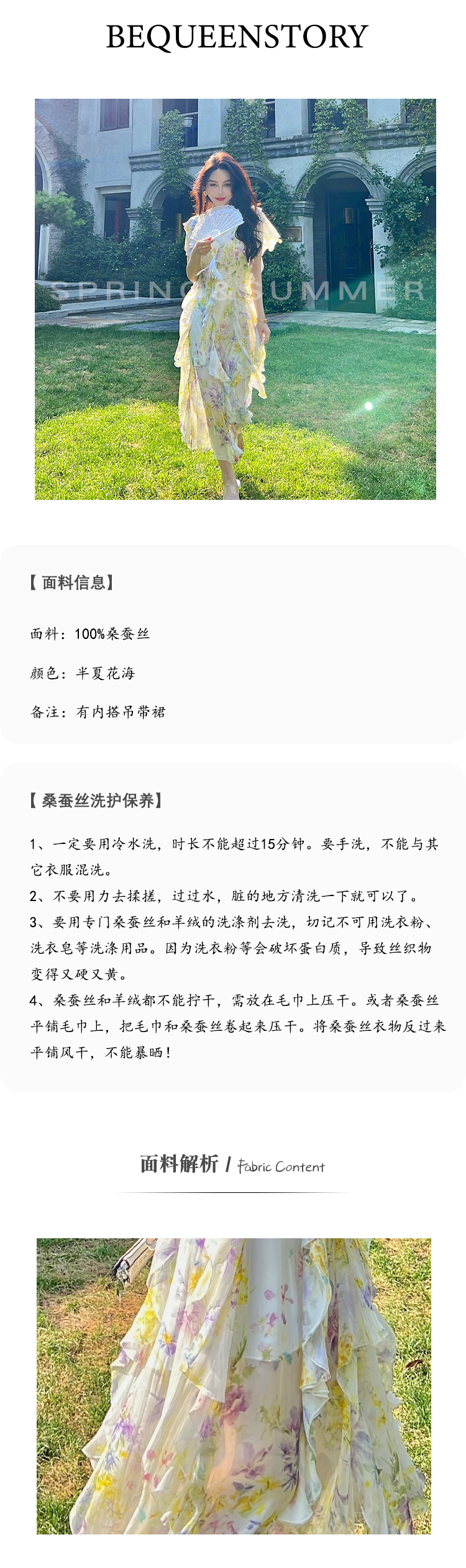 【年终福利,不退不换】 【半夏花海】桑蚕丝印花荷叶边浪漫仙女风连衣裙