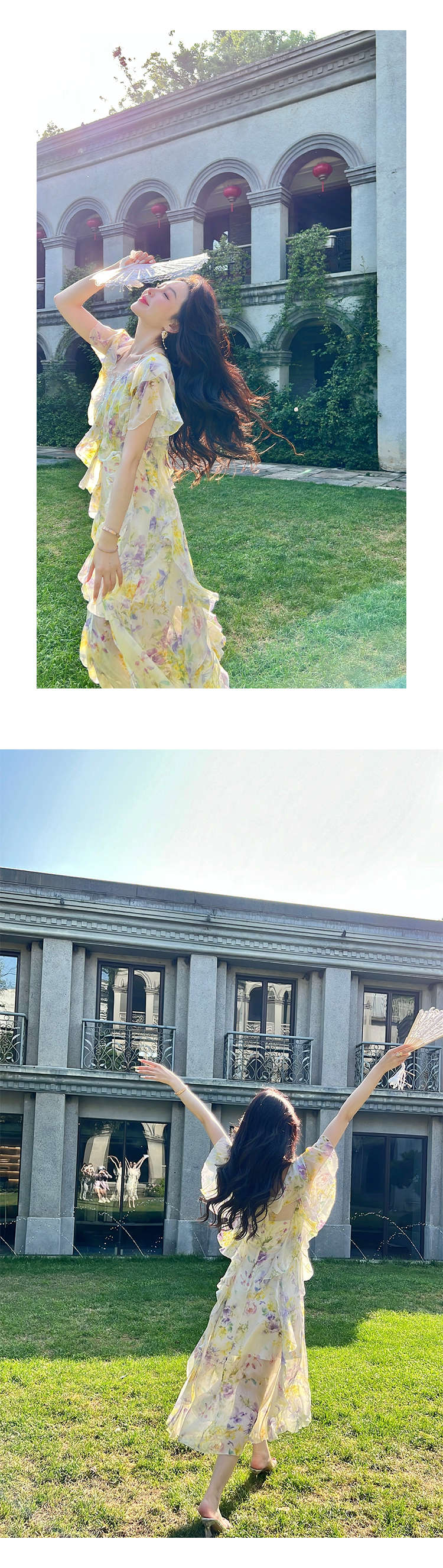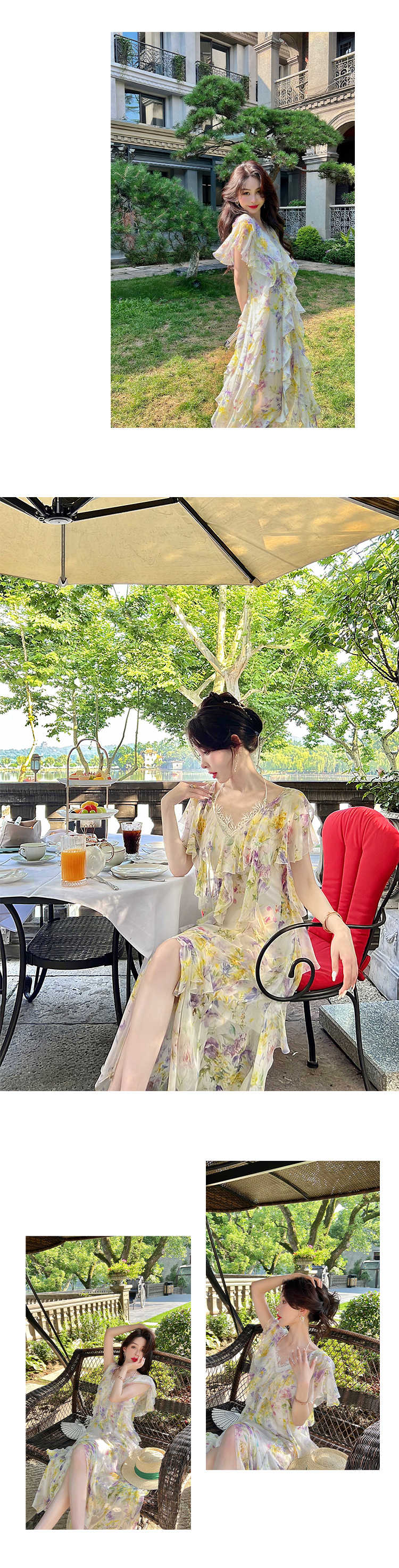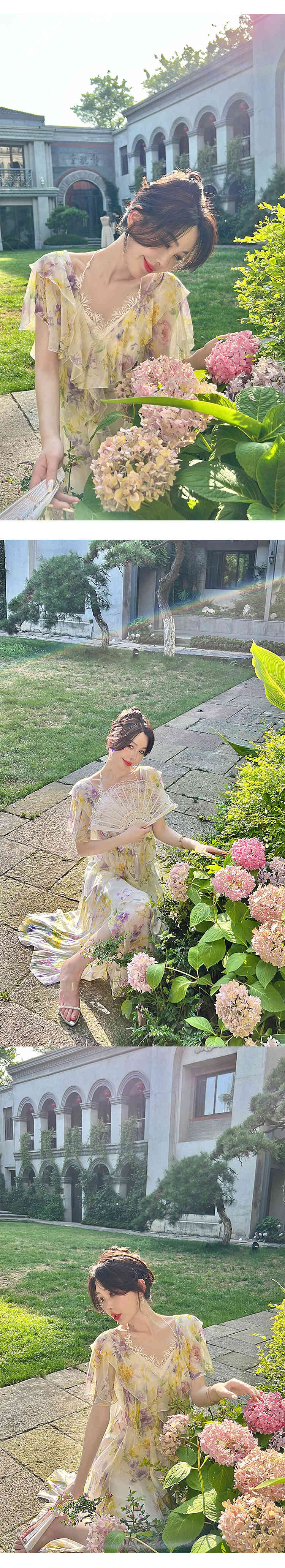 【年终福利,不退不换】 【半夏花海】桑蚕丝印花荷叶边浪漫仙女风连衣裙
