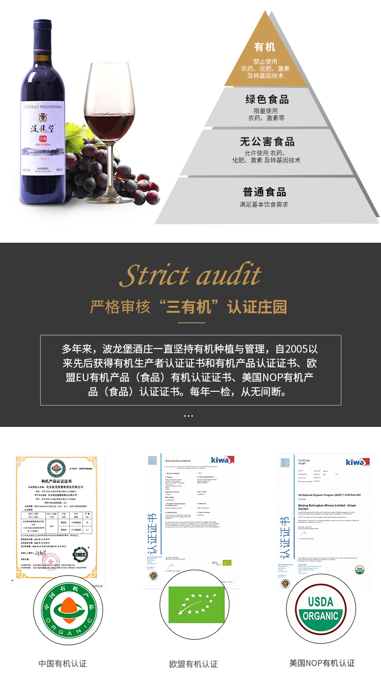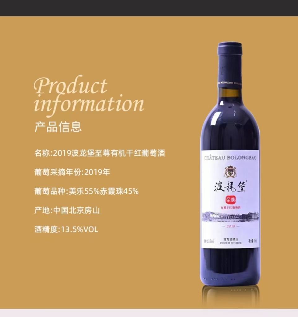 波龙堡有机干红750ml (北京房山)年份2019