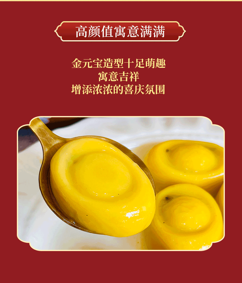 ③ 高颜值寓意满满,金元宝造型十足萌趣可爱,进宝招财,为团圆温馨时刻增添浓浓的喜庆氛围