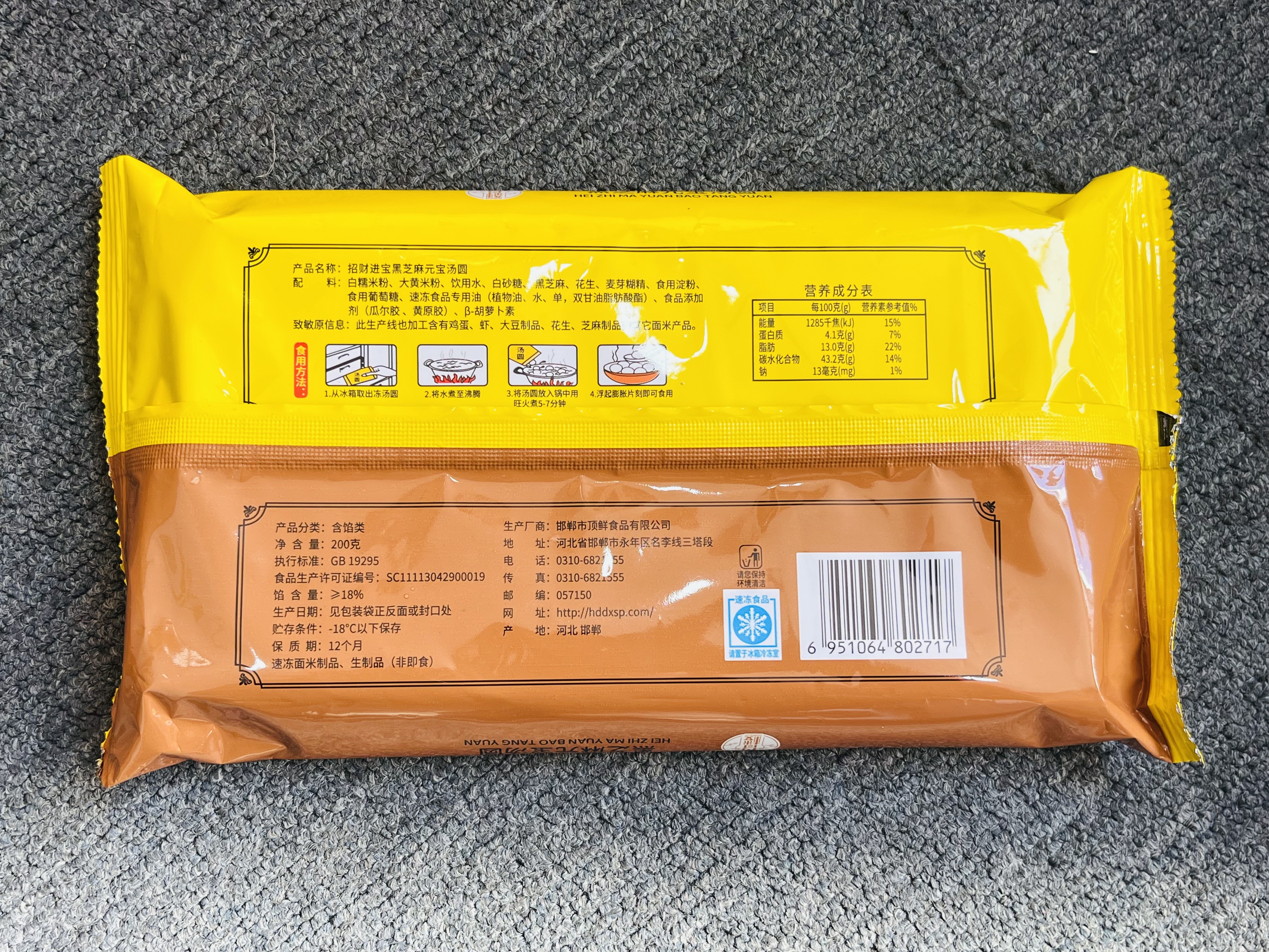 【产品名称】金元宝大黄米汤圆