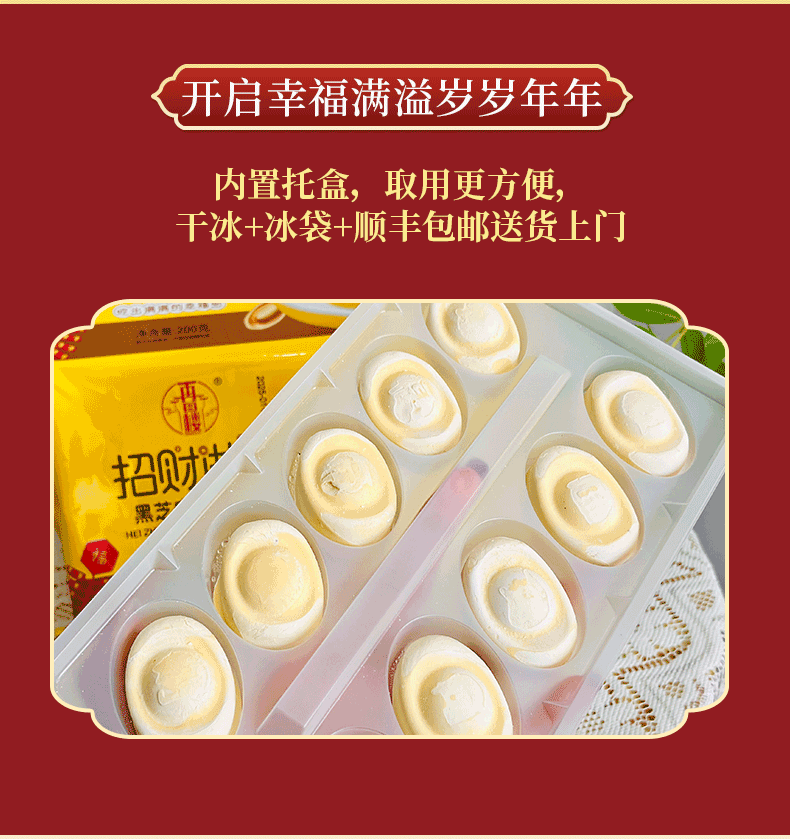 ④ 内置托盒,取用更方便,干冰+冰袋+顺丰包邮送货上门, “金元宝”开启幸福满溢岁岁年年