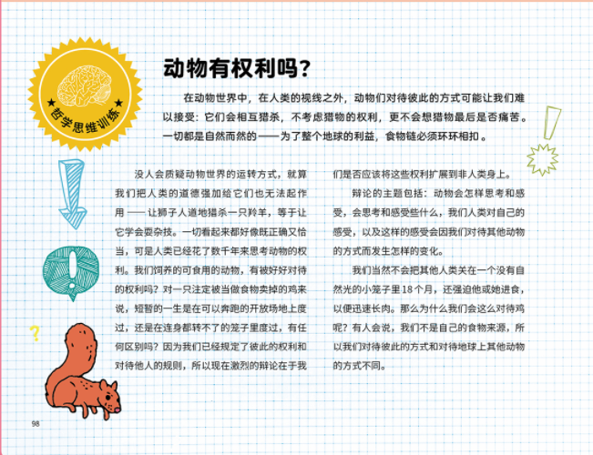 书中不仅系统介绍了东西方哲学的核心流派与代表人物,还巧妙融入了“哲学思维训练”模块,如著名的“电车难题”“盒子里的甲虫”“机器能否思考”等经典问题,激发读者主动思考。书中内容涵盖形而上学、伦理学、认识论等多个哲学分支,并涉及人工智能、动物权利、意识本质等当代议题。
