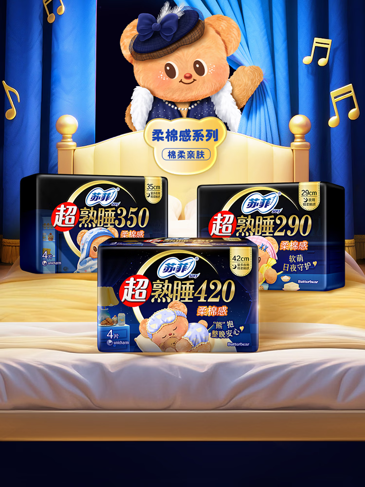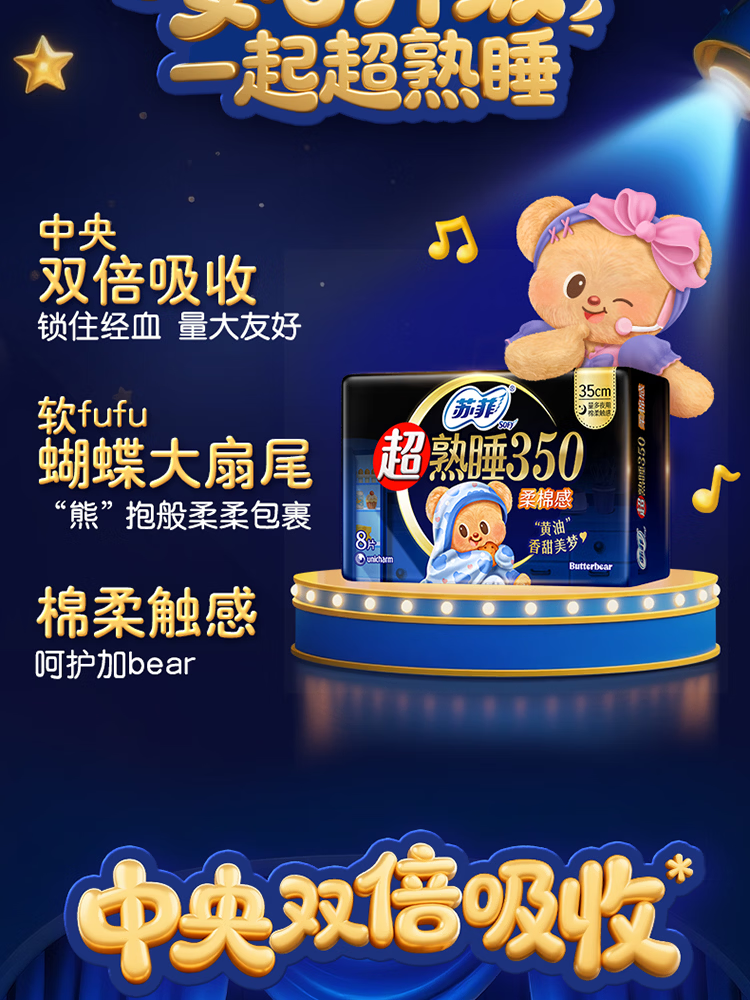 苏菲超熟睡350柔棉感纤巧夜用8片