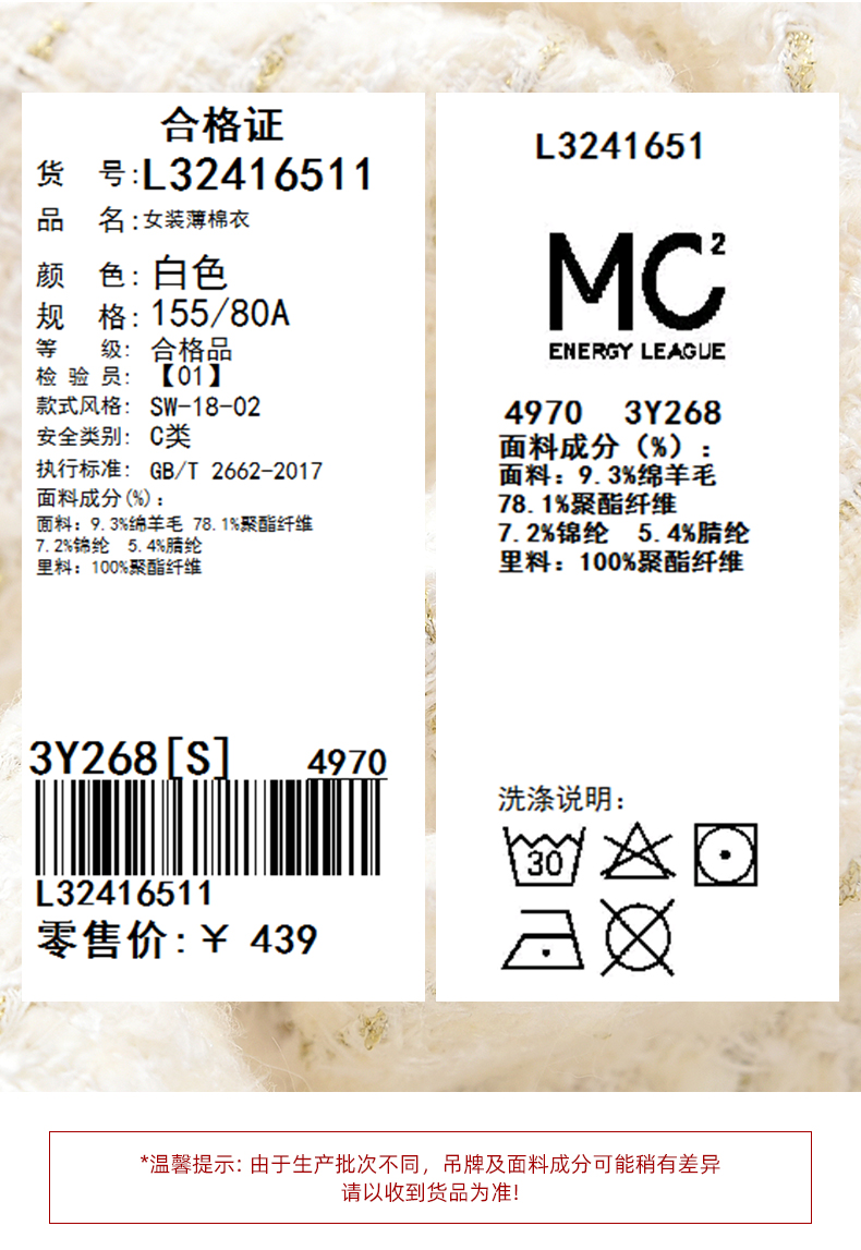 mc2法式千金风气质款加棉小香风外套女装冬装新款重工设计感