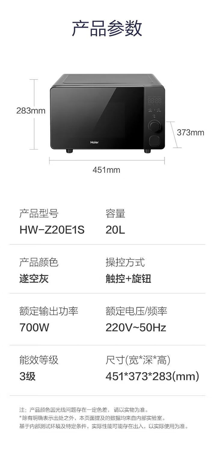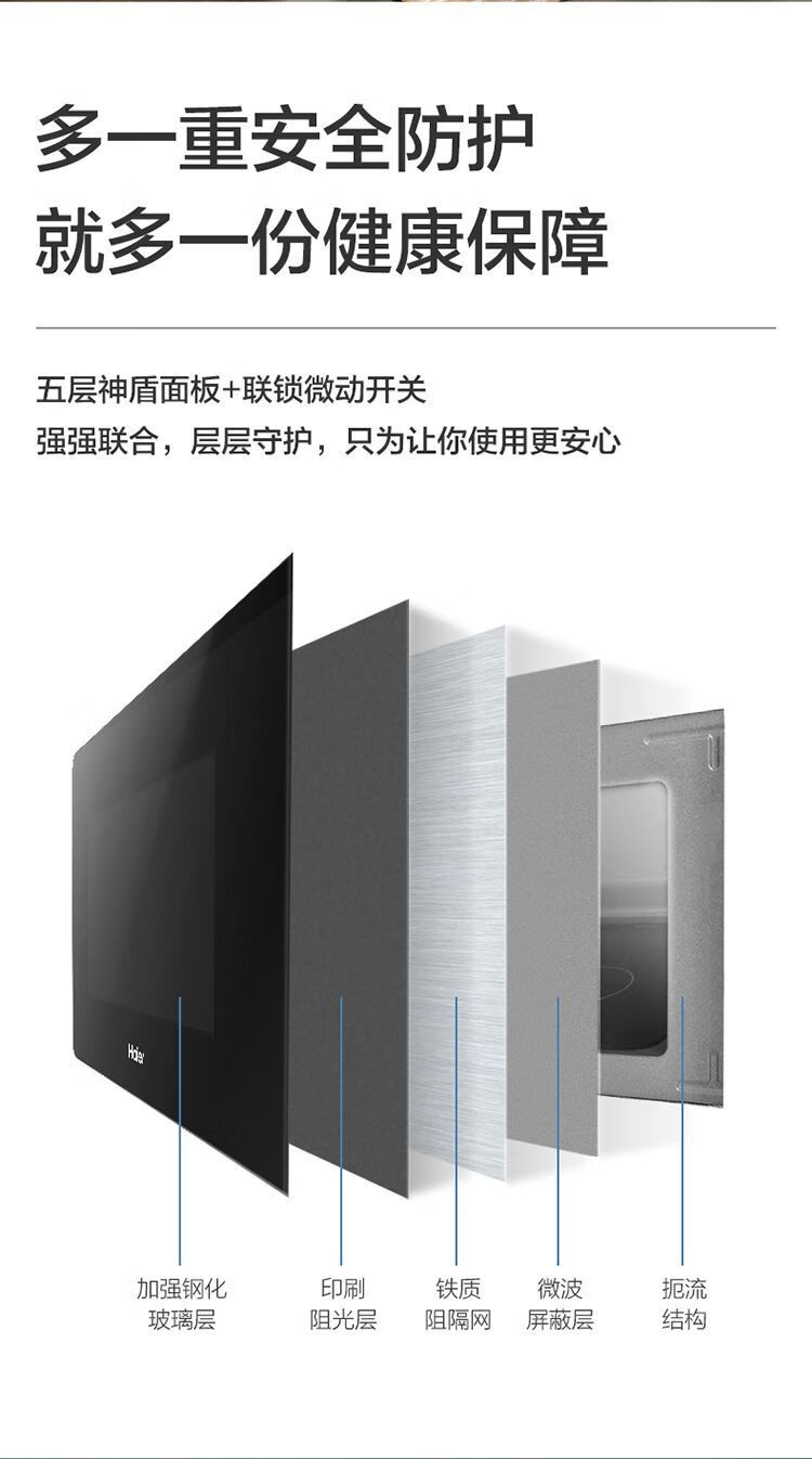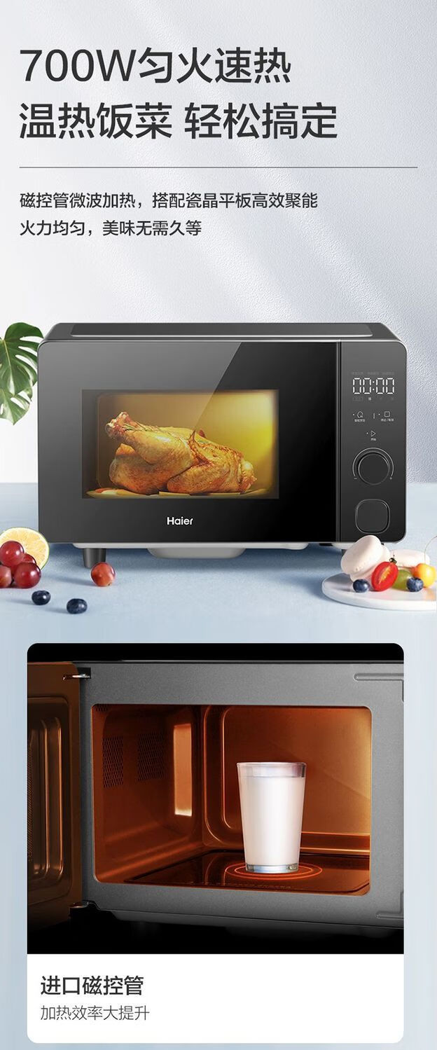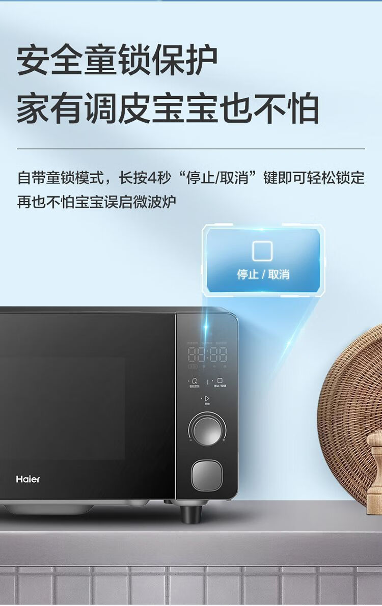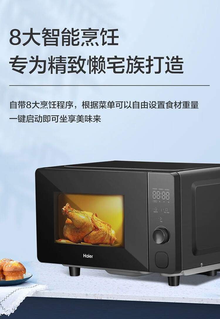 海尔(Haier)微波炉HW-Z20E1S家用智能平板式加热小型多功能20L大容量一体式 黑色