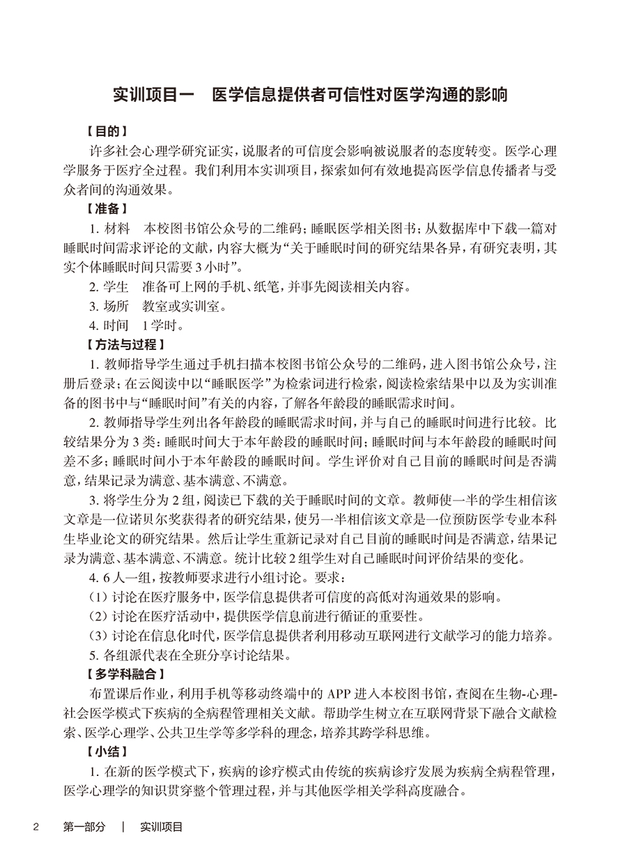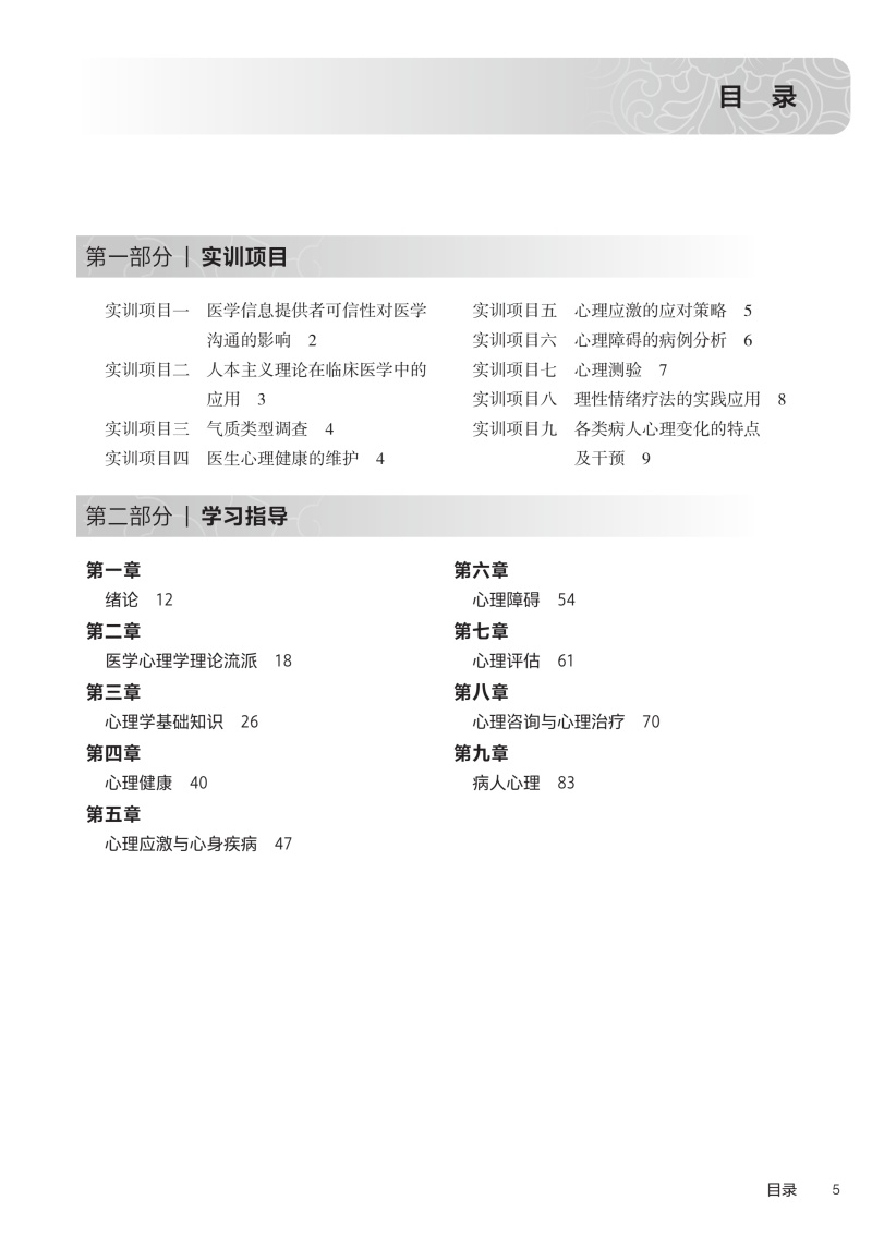 第一部分|实训项目 实训项目一医学信息提供者可信性对医学沟通的影响/2 实训项目二人本主义理论在临床医学中的应用/3 实训项目三气质类型调查/4 实训项目四医生心理健康的维护/4 实训项目五心理应激的应对策略/5 实训项目六心理障碍的病例分析/6 实训项目七心理测验/7 实训项目八理性情绪疗法的实践应用/8 实训项目九各类病人心理变化的特点及干预/9 第二部分|学习指导 第一章绪论/12 第二章医学心理学理论流派/18 第三章心理学基础知识/26 第四章心理健康/40 第五章心理应激与心身疾病/47 第六章心理障碍/54 第七章心理评估/61 第八章心理咨询与心理治疗/70 第九章病人心理/83