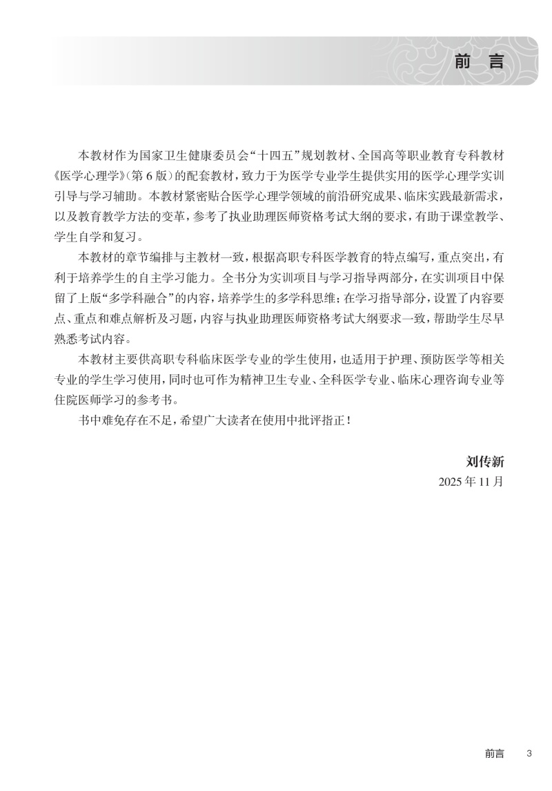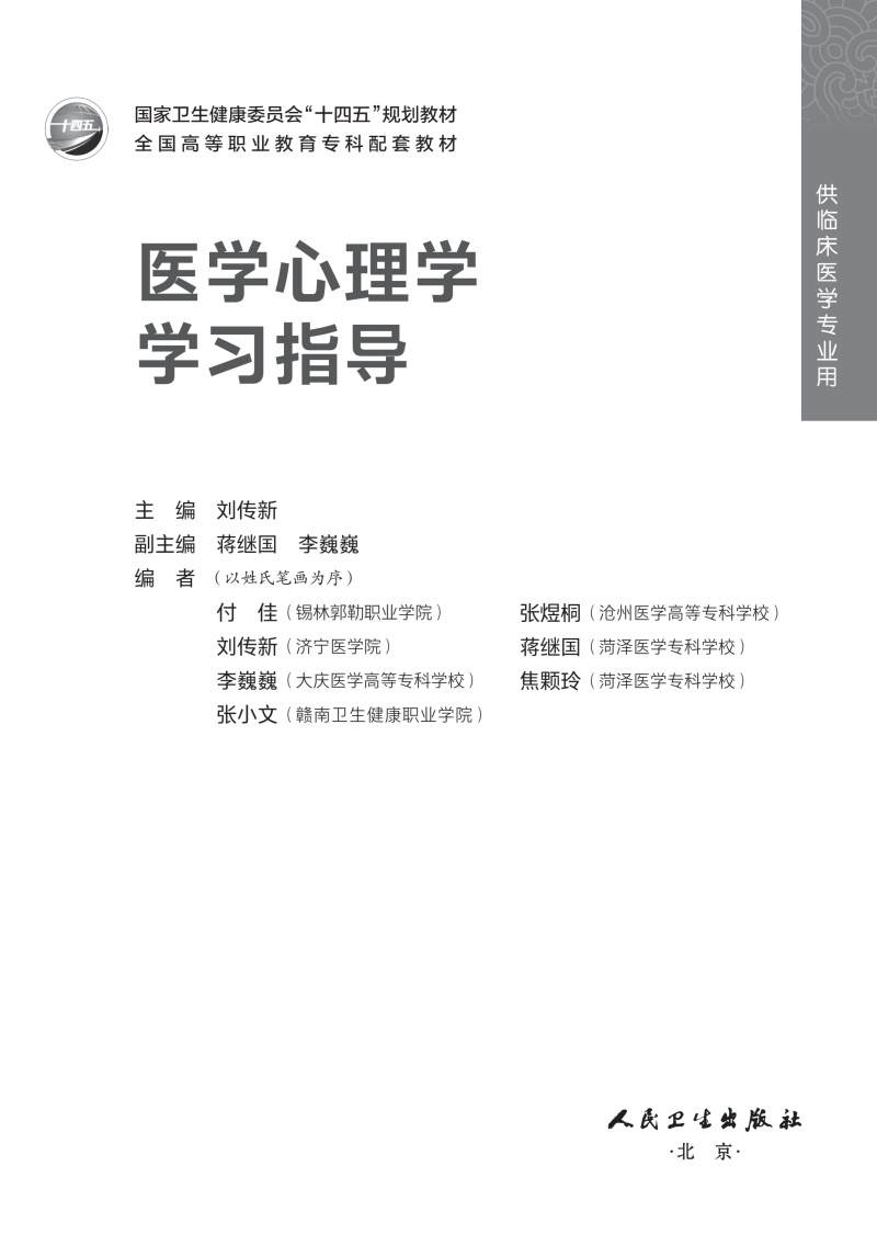 医学心理学学习指导 刘传新 十四五规划教材 全国高等职业教育专科配套教材 供临床医学专业用 9787117389846 人民卫生出版社