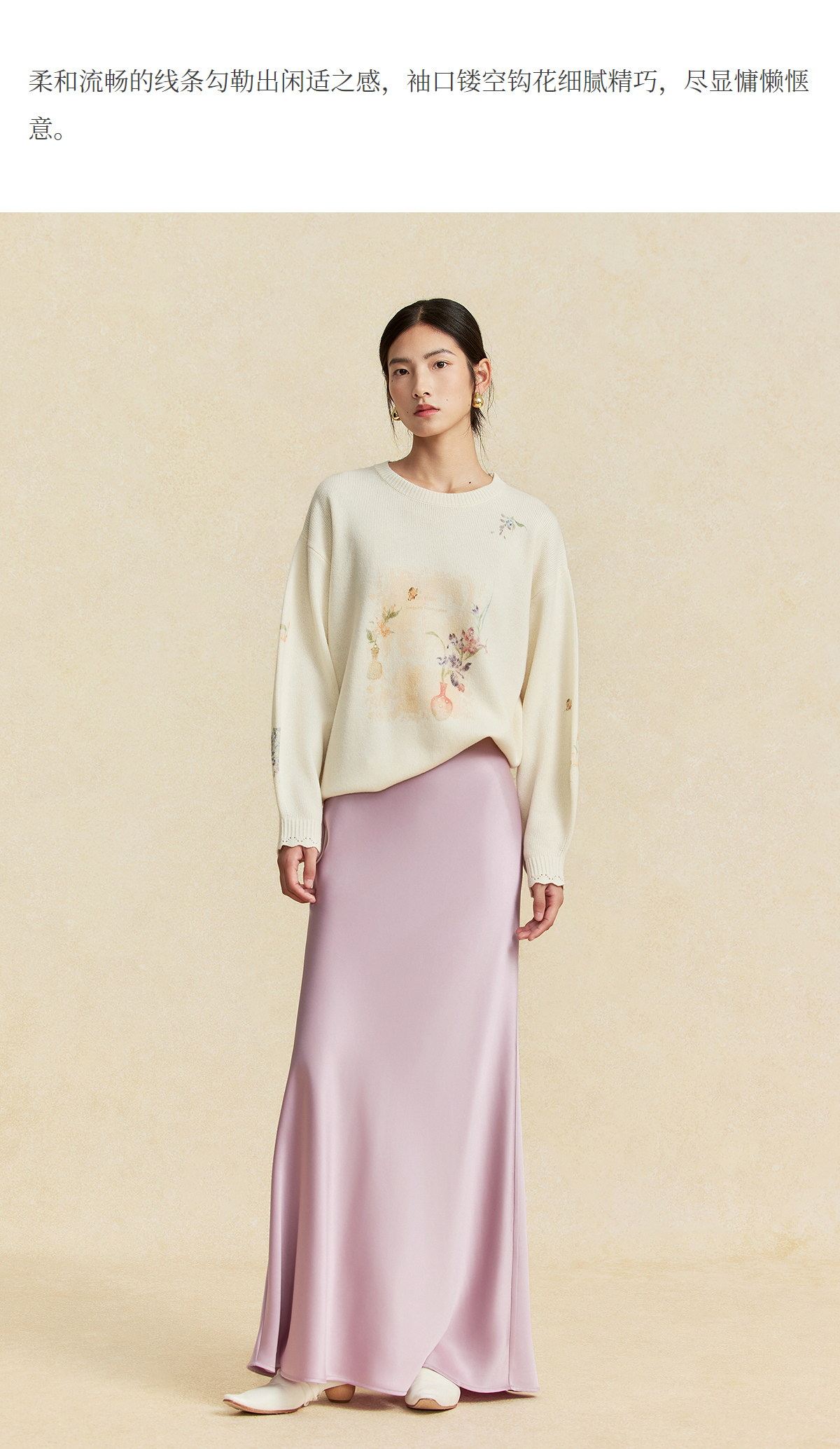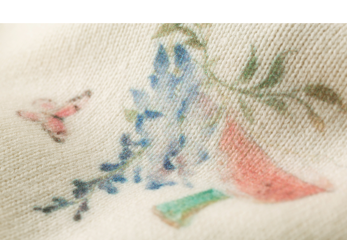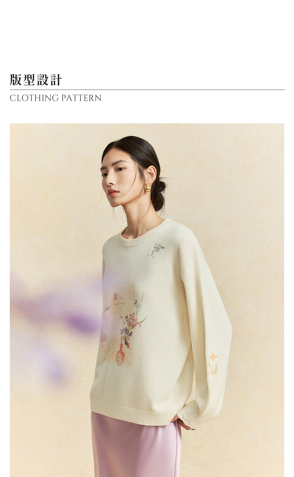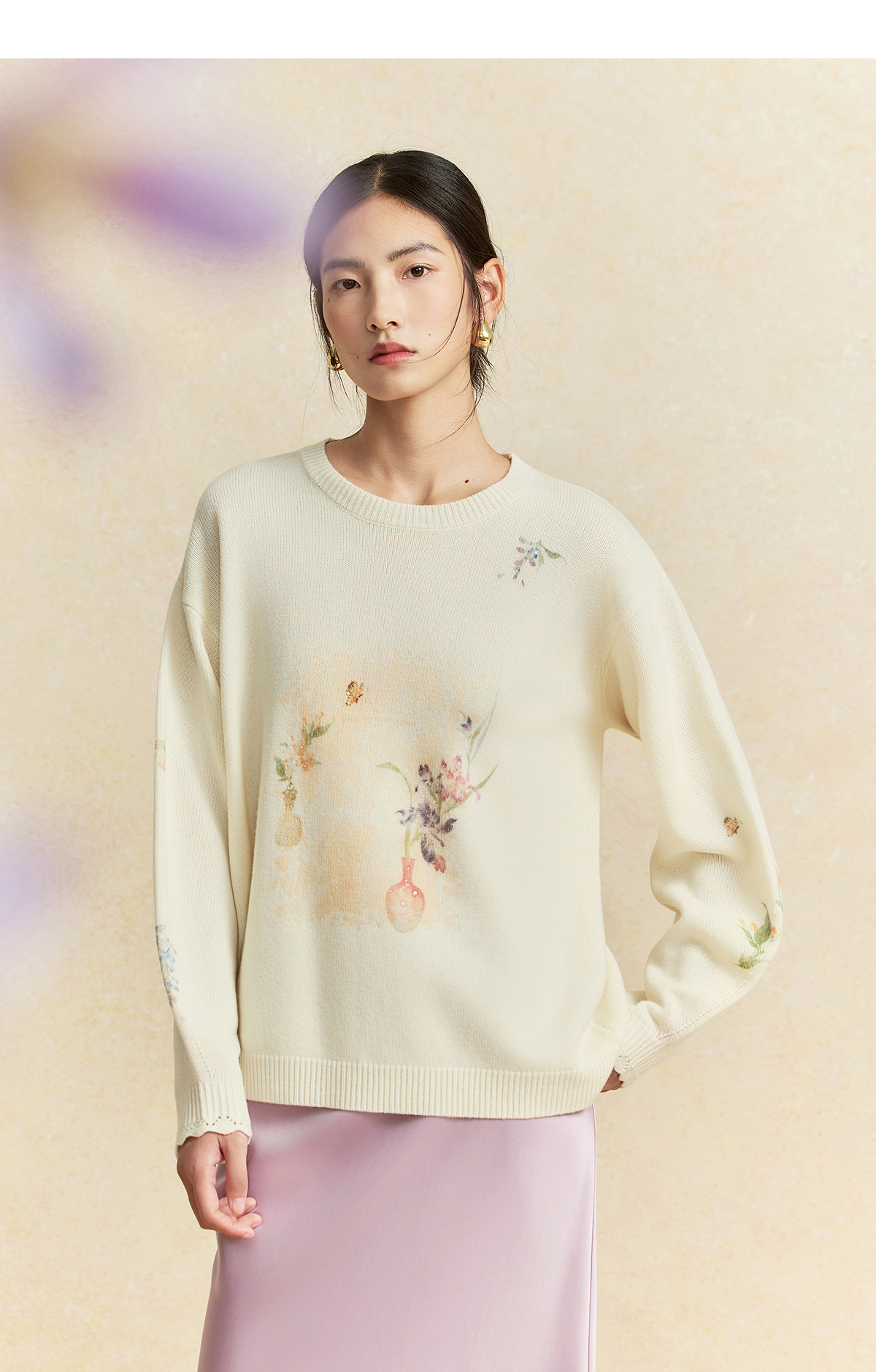 【林栖设计小店】宋瓷雅画|绵羊毛印花米白宽松新中式2026春新款毛织上衣1961049