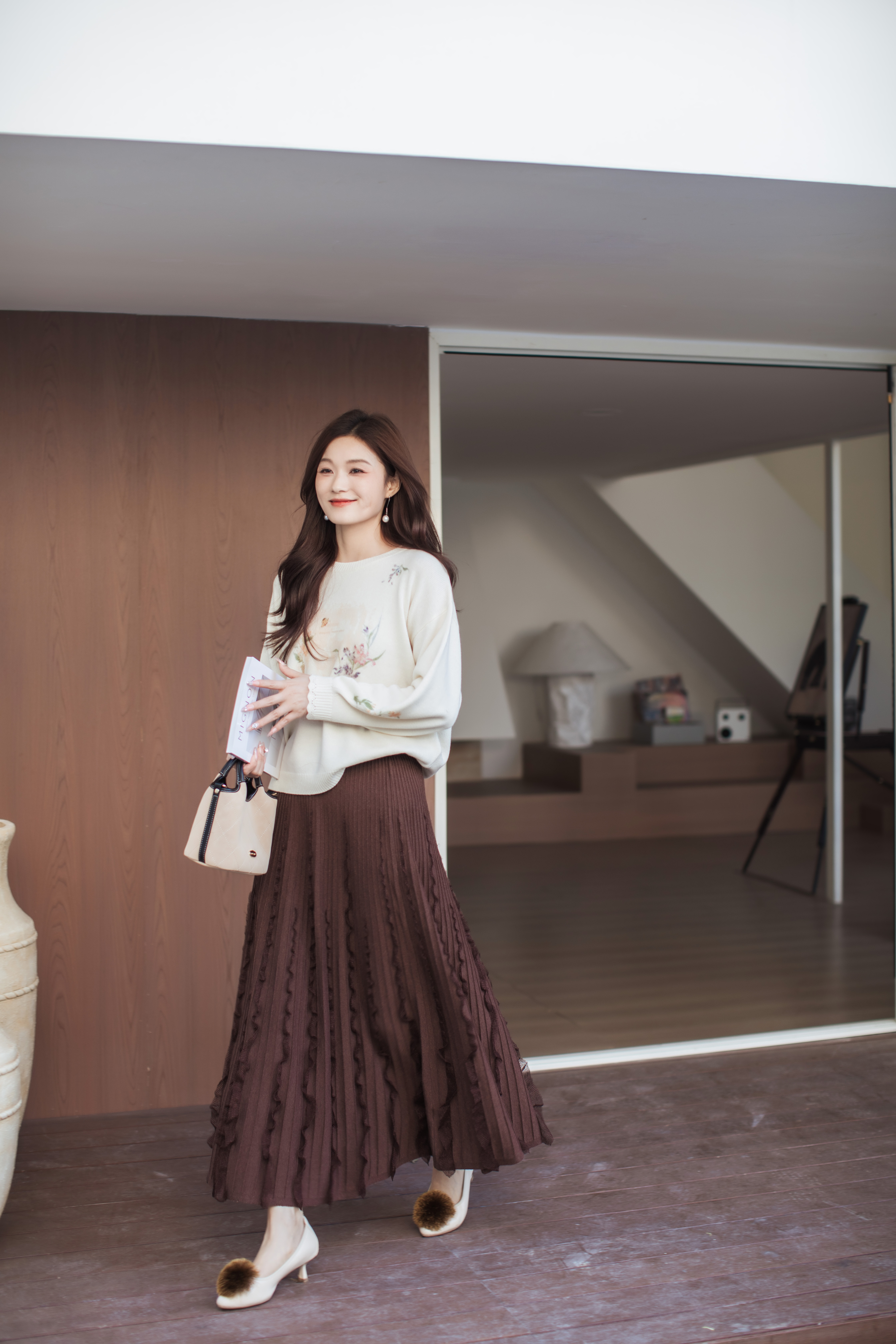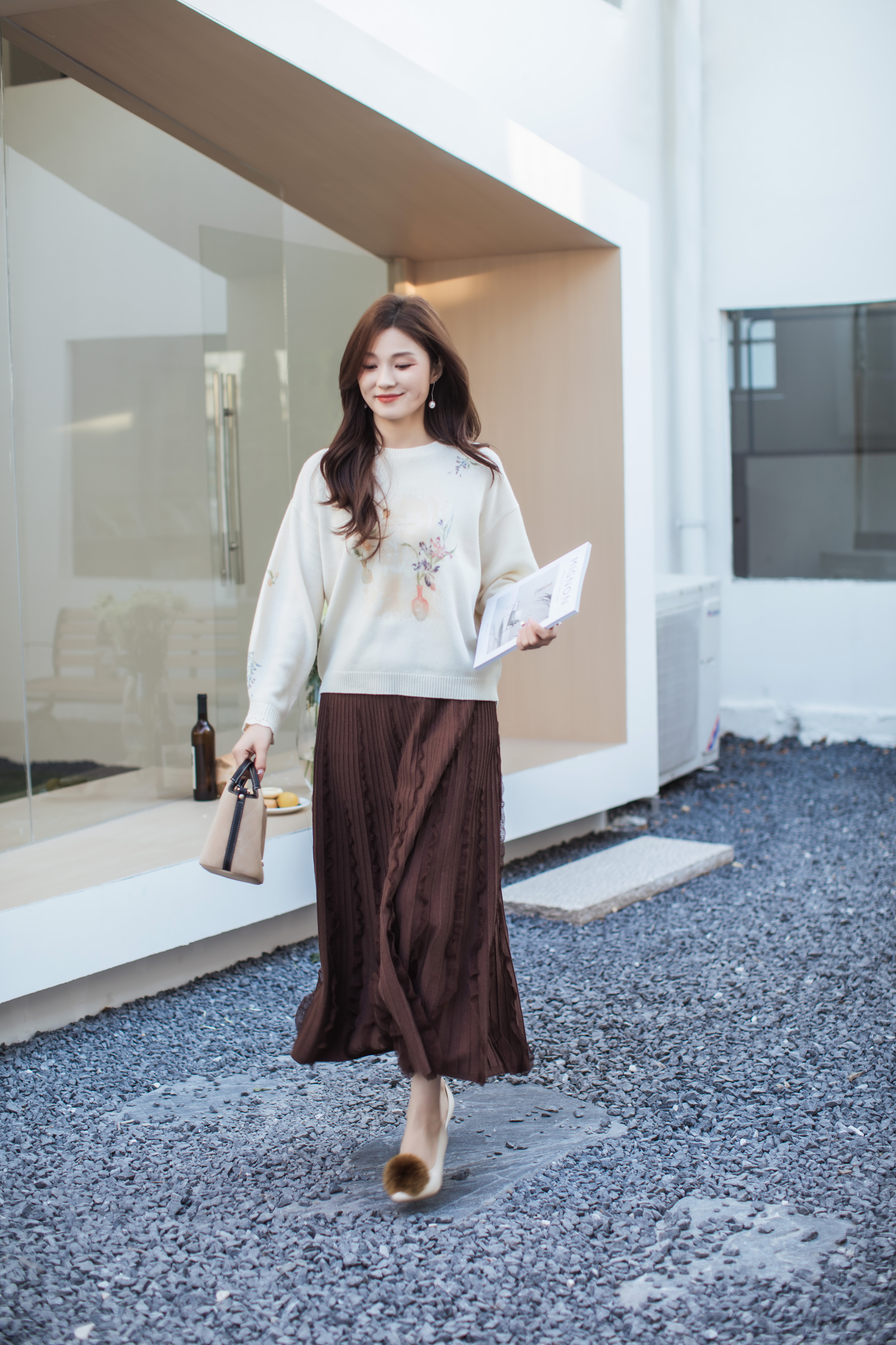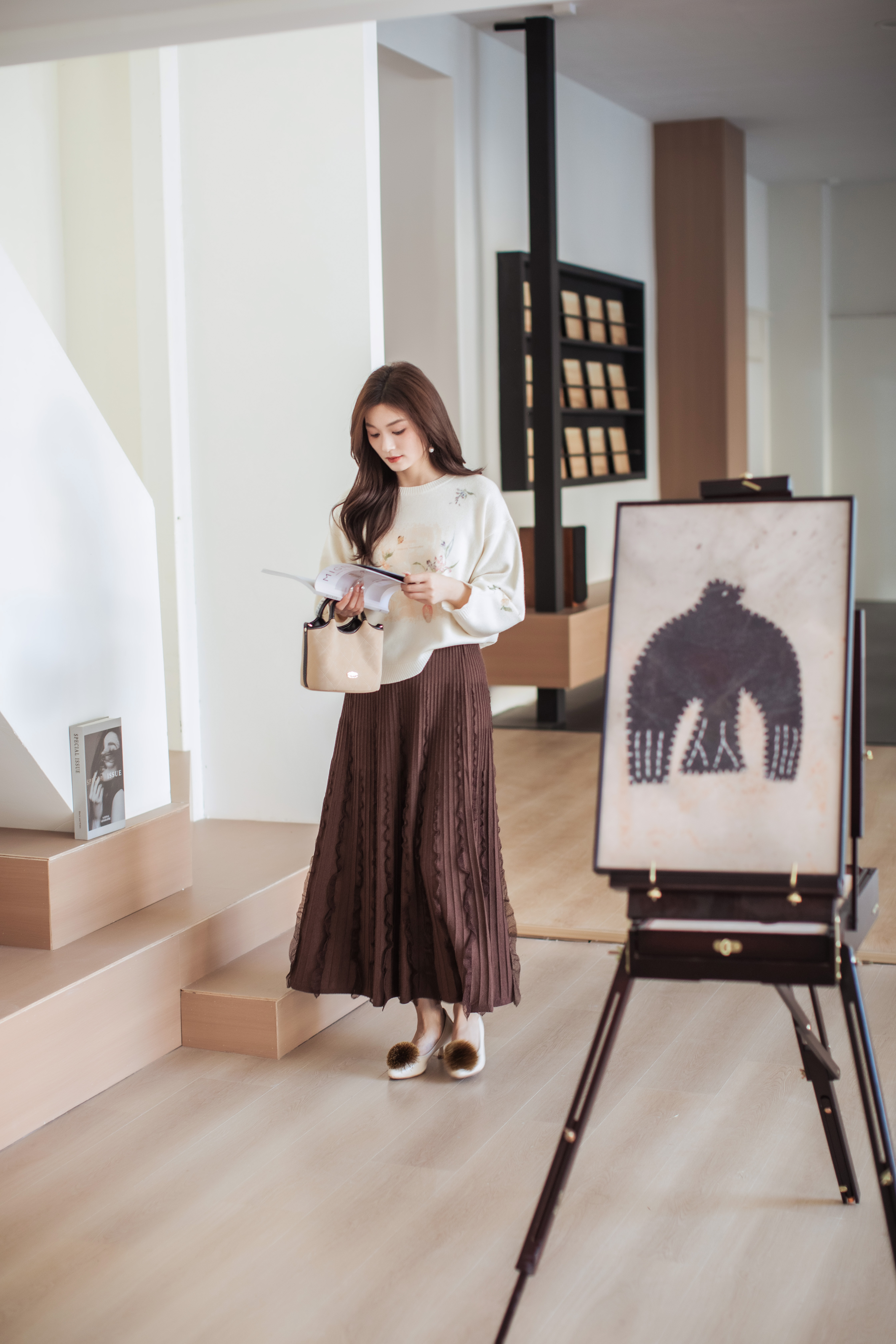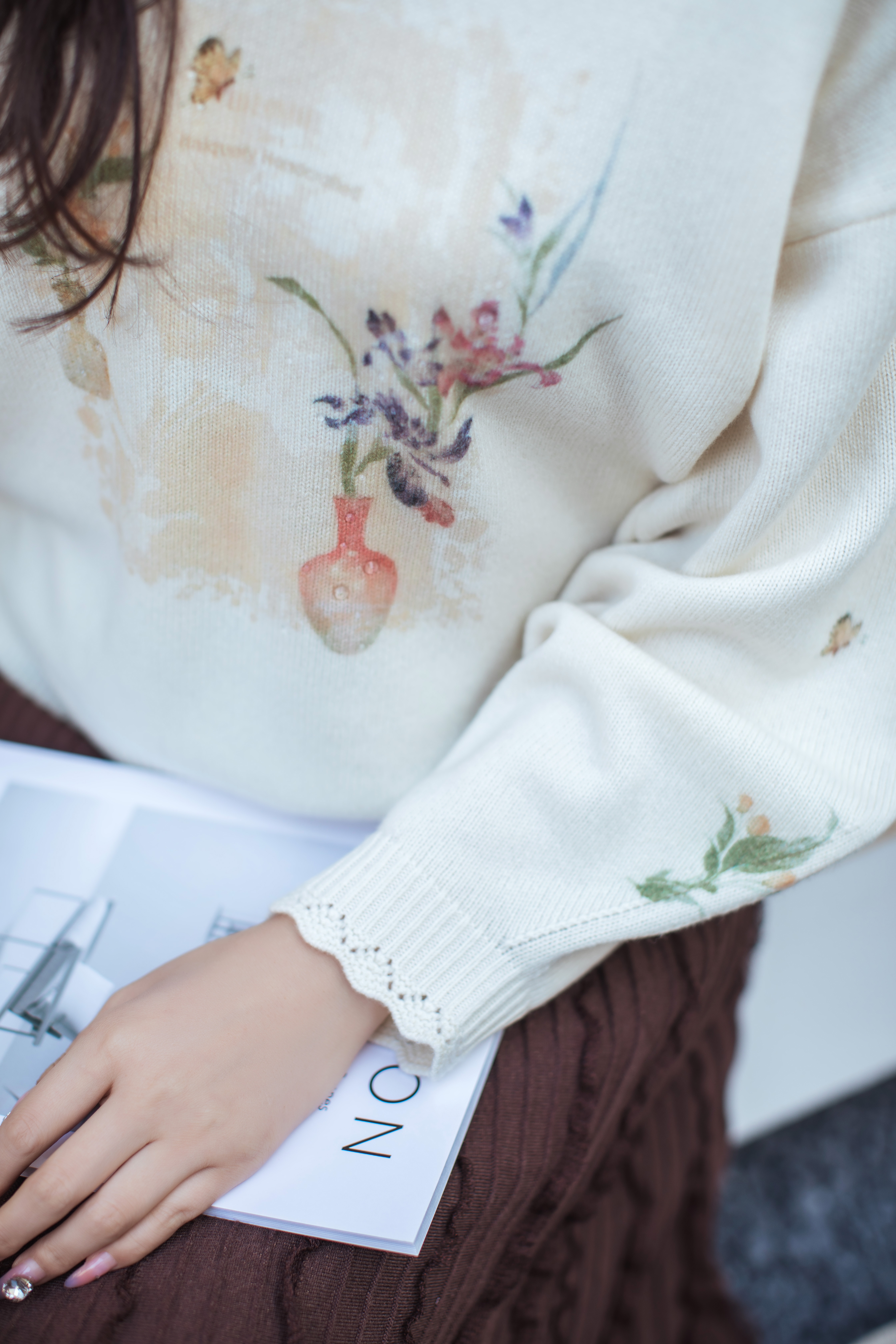【林栖设计小店】宋瓷雅画|绵羊毛印花米白宽松新中式2026春新款毛织上衣1961049