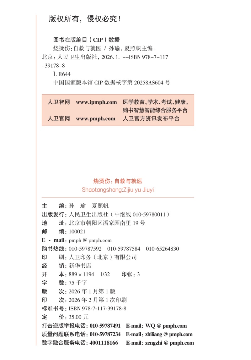 烧烫伤:自救与就医 孙瑜 夏照帆 主编 全面系统阐述和回答烧烫伤后处置的相关知识 科普 医学知识 9787117391788 人民卫生出版社