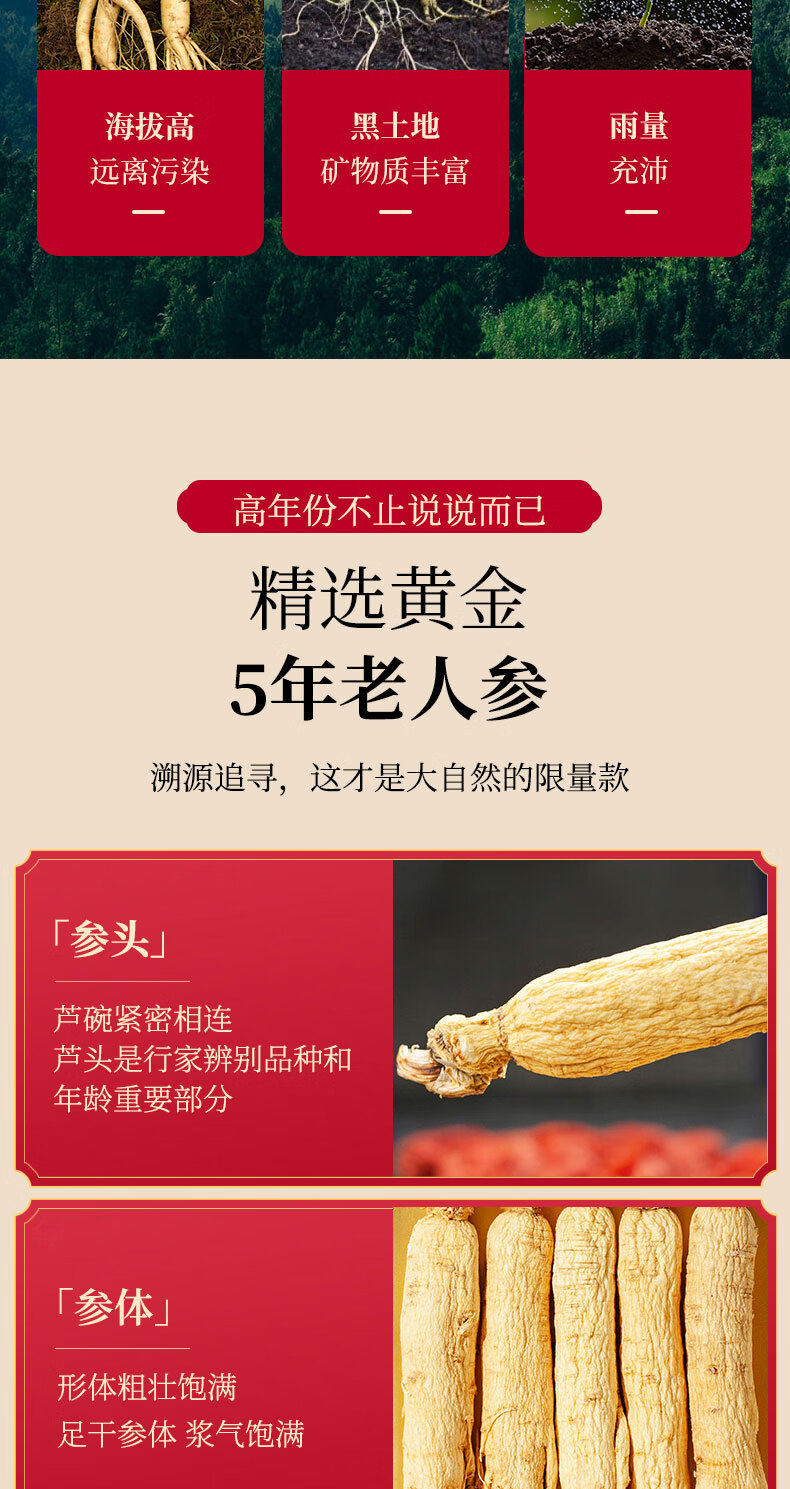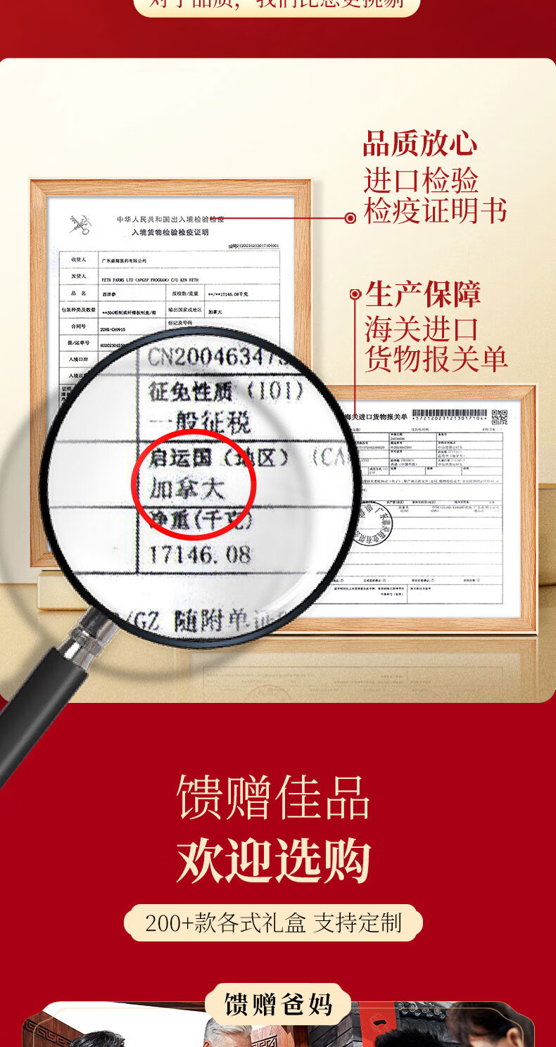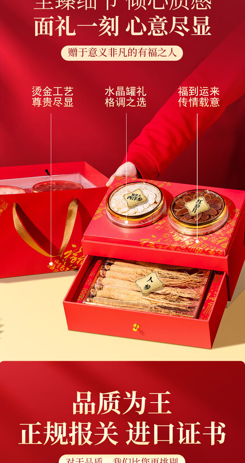 神农金康 人参西洋参红参三拼礼盒185g 营养品送礼父母长辈女神节礼物