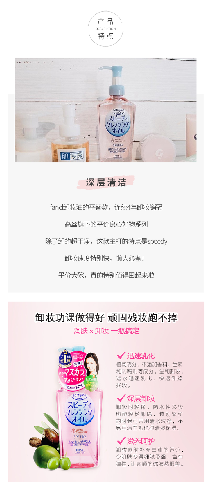 高丝卸妆油 日本kose 脸部温和 Softymo卸妆油 深层清洁