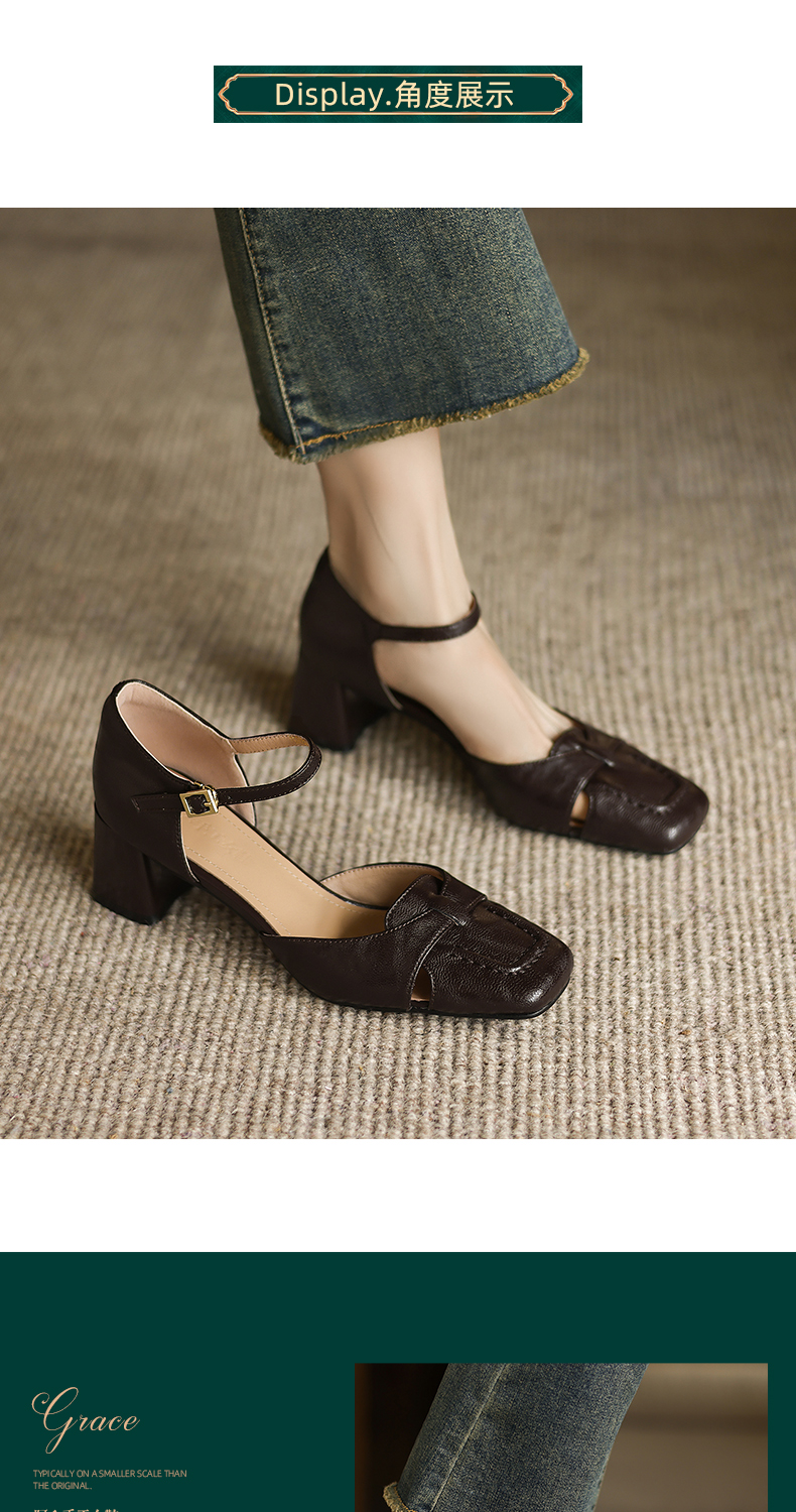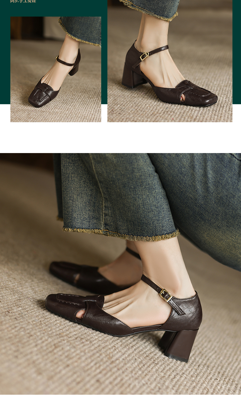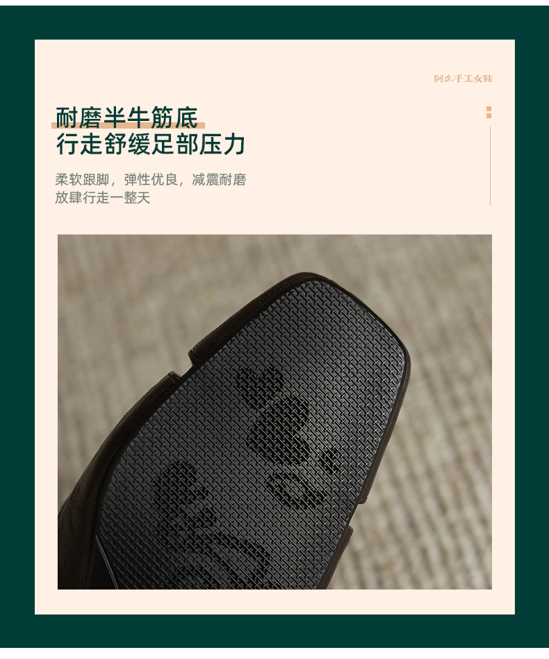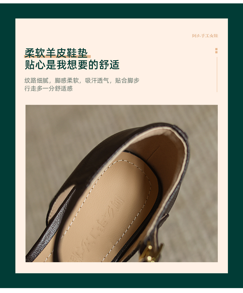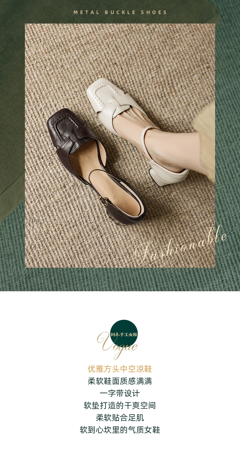 阿么手工女鞋夏季粗跟一字带凉鞋镂空仙女风2025新款不累脚5.5CM