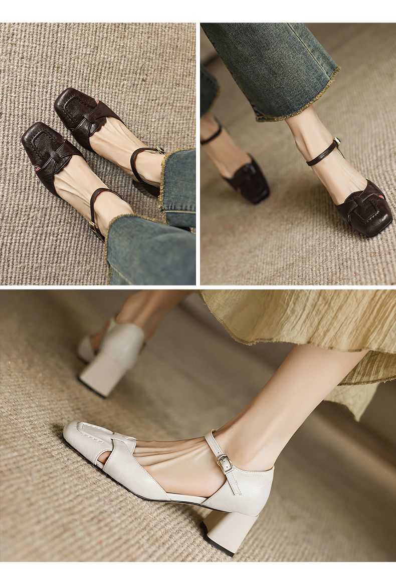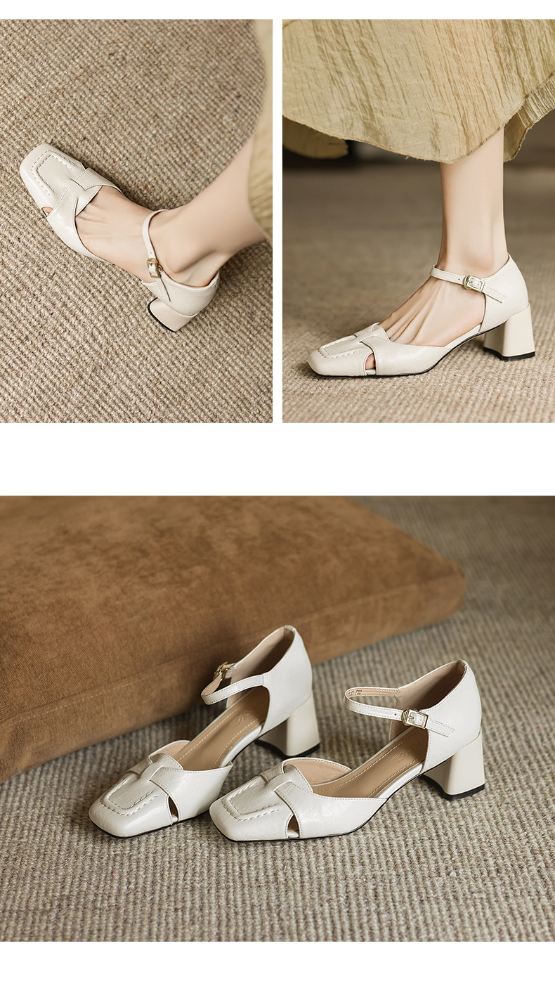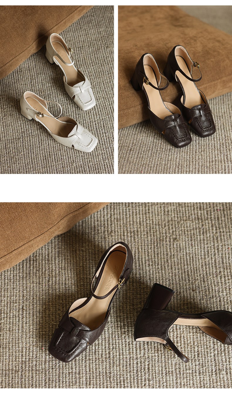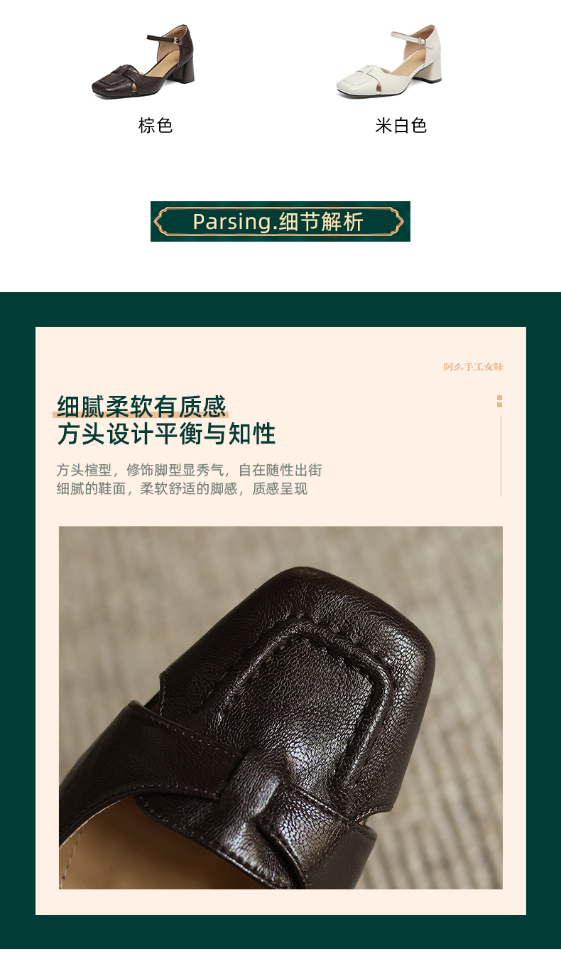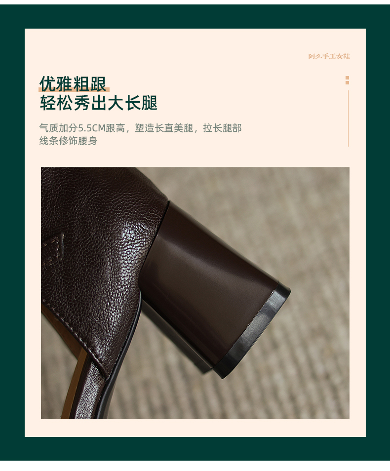 阿么手工女鞋夏季粗跟一字带凉鞋镂空仙女风2025新款不累脚5.5CM